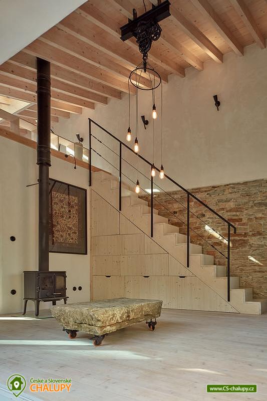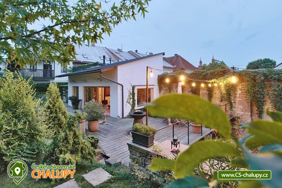 Hide in City is located in a private courtyard in the center of Vamberk in the foothills of the Orlické Mountains. It is a unique and award-winning architectural work that was created after the sensitive reconstruction of a liqueur factory from 1840, and every detail is processed here with great care, a sense of precision and beauty. This stylishly furnished cottage offers accommodation for 3 people. There is one large double bed with the possibility of an extra bed located in an open, attic bedroom. The ground floor of the cottage consists of a living area dominated by a fireplace and a wall formed by a large library and a relaxation window with a built-in bench for sitting. There is also a smaller sofa and storage space. The living area is connected to the dining area with a fully equipped kitchenette (hob, kettle, refrigerator and dishwasher). From the living area, you can climb the stairs to the open bedroom with a large spacious bed and a skylight. The sleeping area is suitable for three people or, upon agreement, for a family with children. The sanitary facilities include one bathroom with a shower and toilet on the ground floor. Organic cosmetics, bath towels and towels are available. A washing machine is available. The cottage is surrounded by a spacious ornamental garden with a terrace. The garden can be entered through large French windows from the living room. The garden and terrace are surrounded by the ruins of a former distillery, reminiscent of the history of the place. There is a seating area and an outdoor grill on the terrace. You can catch fish for the grill in a tub located near the cottage. You can relax in a hammock located in the garden or enjoy relaxation in a heated bathing barrel. Parking is available directly at the property. In the vicinity of the cottage, there is the possibility of hiking, cycling, swimming, mushroom picking, fishing, skiing and cross-country skiing. There are also tennis courts nearby. The nearby Sports Center Říčky v Orlických offers various tourist attractions - a cable car, mountain tricycles, scooters, a rope park and cycling. You can visit the Lace Museum right in the city. Swimming options include: Vamberk swimming pool, Rychnov nad Kněžnou swimming pool, Rychnov nad Kněžnou swimming pool, Rokytnice v Orlických horách swimming pool, Žamberk aquapark, etc. There are nearby ski resorts: Říčky v Orlických horách Ski Center, Dlouhoňovice Ski Resort, Zdobnice Ski Resort and others. Other trips in the area include Potštejn Castle, the Vochtánka Western Camp, the Andrlův chlum Lookout Tower, Litice Castle, the Doudleby nad Orlicí, Častolovice, Kostelec nad Orlicí and Rychnov nad Kněžnou chateaux. We look forward to seeing you there.