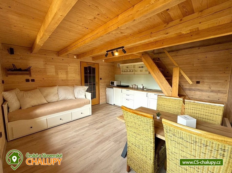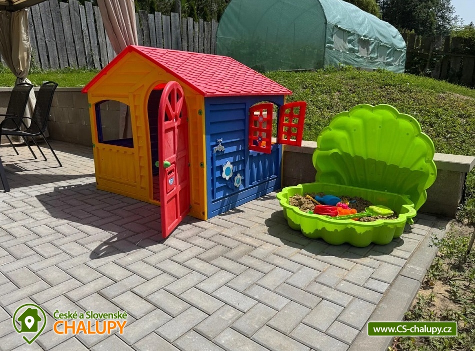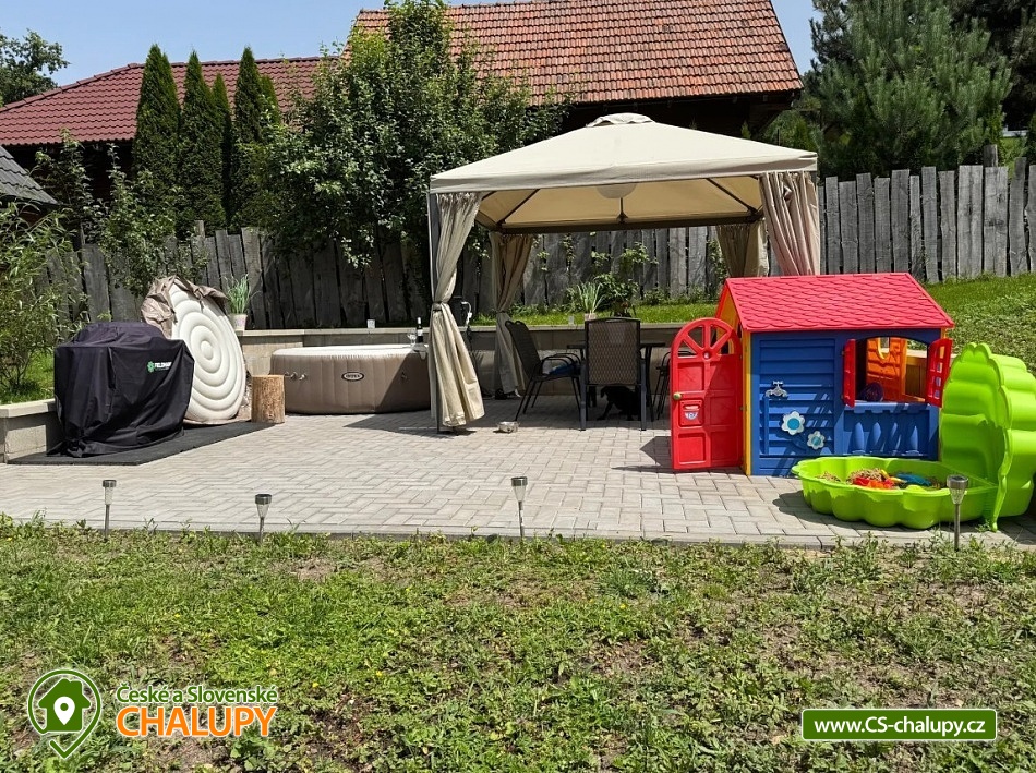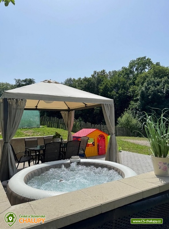 A cozy cottage with a terrace and a hot tub is located on the edge of the forest in the protected area of Drahanská vrchovina, in the picturesque village of Úsobrno. Its location makes it an ideal place for well-deserved rest, cycling trips and hiking. The cottage provides accommodation for 8 people in two bedrooms and is divided into two separate parts, which provide their own privacy. You can walk from one part to the other via the terrace, but not inside. In one part there is a 2-bed bedroom (1x double bed), a small equipped kitchenette (hob, coffee maker, refrigerator, microwave and dishes) and a dining area with a seating area and TV. In the other part of the cottage in the attic there is a 4-bed bedroom (1x double bed, 2x single beds) and on the ground floor in the living area there is an extra bed for two people in the form of a pull-out bed. Furthermore, the living room has a fully equipped kitchenette (hob, coffee maker, refrigerator, microwave, kettle, toaster and dishes), dining area and TV. On request, it is possible to rent a cot, high chair, changing table, bouncers and toys. The sanitary facilities include 2 private bathrooms with shower, sink, toilet, hairdryer and towels. The cottage is heated by radiators. The property offers free WI-FI internet access. The cottage has a spacious sunny terrace with a parasol. The cottage is surrounded by a fenced garden with parking directly at the property (max. 5 cars). In the garden you can use the covered seating area and gas grill. The little ones will certainly appreciate the children's pool, sandpit, swing and trampoline. In the summer months, a hot tub is also available. Possibility of storing bicycles and motorcycles under a shelter. In the vicinity of the cottage there are opportunities for hiking, cycling, swimming, fishing, mushroom picking and cross-country skiing. Swimming options include: Boskovice reservoir, Křetínka dam, Letovice reservoir or swimming pool with slides in Velké Opatovice. Trips in the surrounding area include: the ruins of Boskovice castle, Javoříčské caves, Bouzov castle, the city of Olomouc or the Olomouc Zoo. We look forward to seeing you.