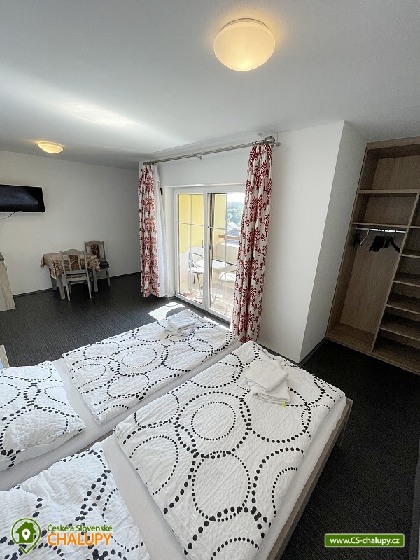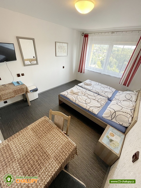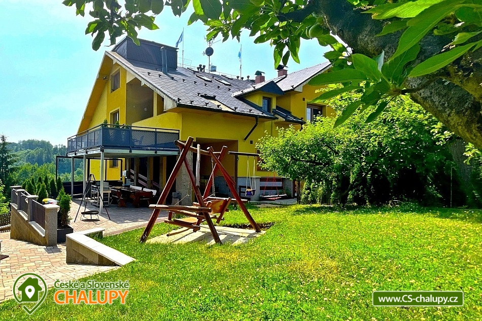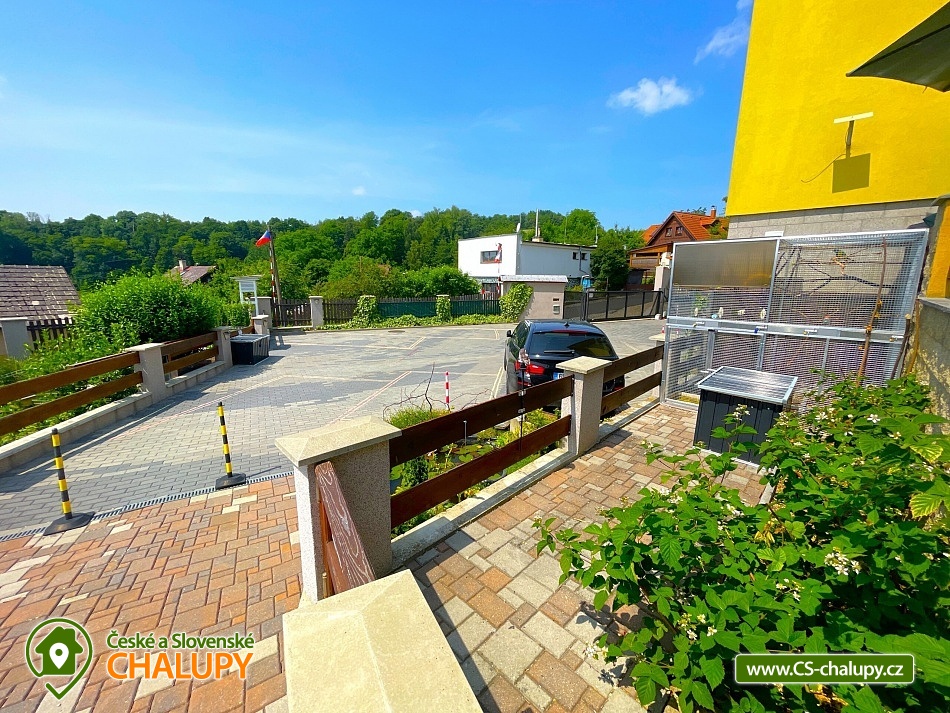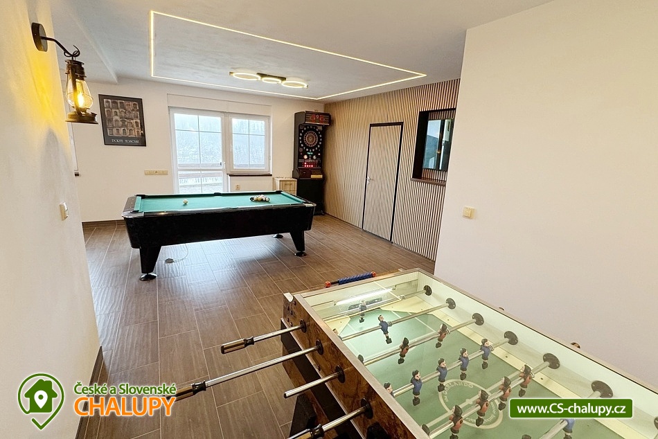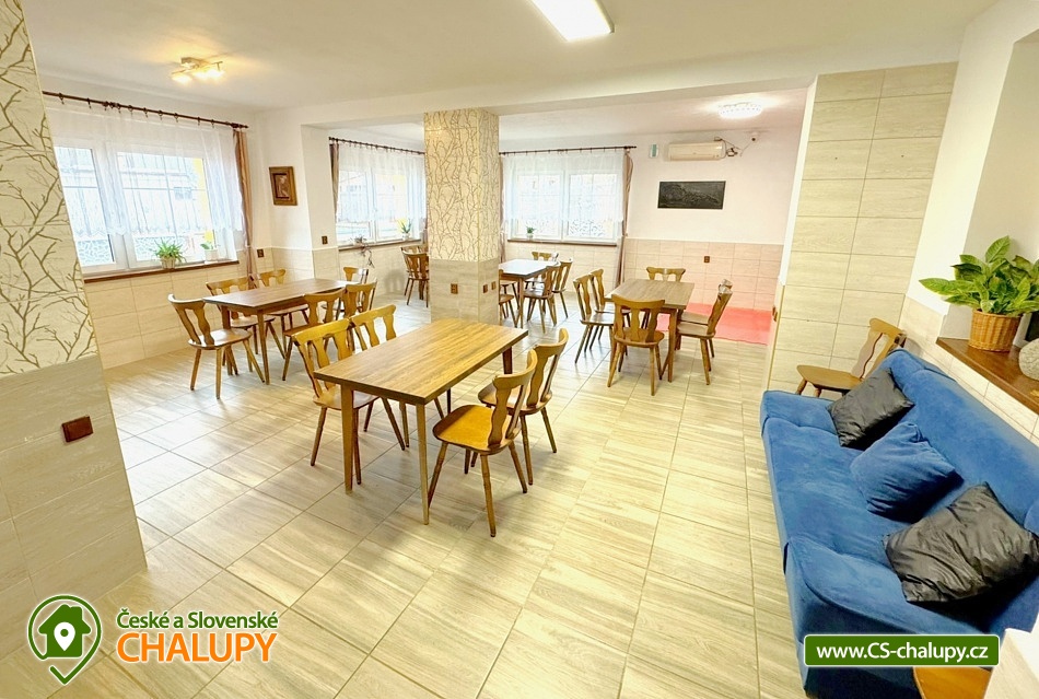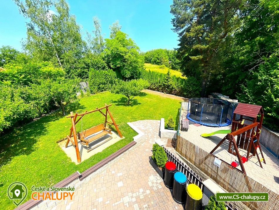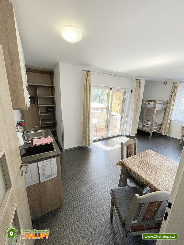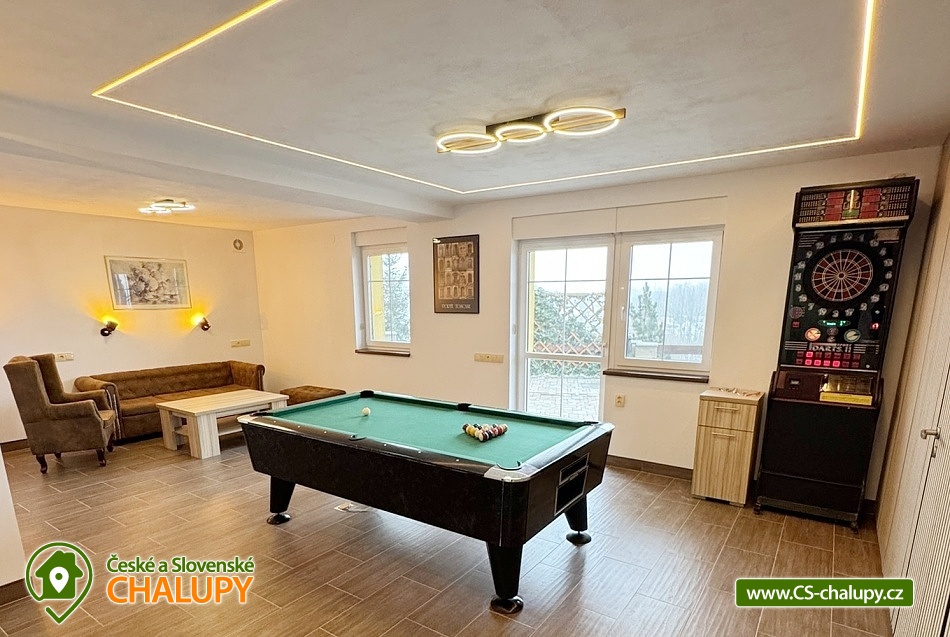 The Maxovo království apartment cottage is located on the outskirts of the town of Rovensko pod Troskami, in the very heart of the Bohemian Paradise. Its location makes it a great starting point for trips to popular tourist destinations such as Trosky Castle, Hruboskalsko, Malá Skála or the fairy-tale town of Jičín. Suitable for families with children, a group of friends, cyclists or corporate teambuildings. You can look forward to an outdoor and indoor swimming pool, sauna, terrace with seating or a games room equipped with billiards, table football or darts. The property offers accommodation for 36 people, in 10 separately rentable apartments. Each apartment has a fully equipped kitchen (ceramic hob, electric kettle, fridge, microwave and dishes), a dining area and a bathroom with a bathtub/shower, sink and toilet. The apartments are 2-bed or 4-bed (in the bedrooms where there are 2 single beds, they can be combined into a double bed) and are located on the ground floor and on the 1st floor. Possibility to rent a cot. APARTMENT No. 1 (1st floor, max. 2 people): 1x double bedroom (2x single beds), TV, kitchen, bathroom with shower and separate toilet, view of the town of Rovensko pod Troskami. APARTMENT No. 2 (1st floor, max. 4 people): 1x four-bed bedroom (2x single beds, 1x bunk bed), TV, kitchen, bathroom with shower and separate toilet, view of the town of Rovensko pod Troskami. APARTMENT No. 3 with balcony (1st floor, max. 5 people): 1x four-bed bedroom (2x single beds, 1x bunk bed + possibility of an extra bed for one person - fold-out bed), TV, kitchen, bathroom with shower and toilet, view of the town of Rovensko pod Troskami. APARTMENT no. 4 with balcony (1st floor, max. 3 people): 1x double bedroom (2x single beds + possibility of an extra bed for one person - fold-out bed), TV, kitchen, bathroom with bath and separate toilet, view of the town of Rovensko pod Troskami and Trosky Castle. APARTMENT no. 5 with balcony (1st floor, max. 3 people): 1x double bedroom (2x single beds + possibility of an extra bed for one person - fold-out bed), TV, kitchen, bathroom with shower and toilet, view of the Trosky Castle. APARTMENT no. 6 with balcony (1st floor, max. 5 persons): 1x four-bed bedroom (2x single beds, 1x bunk bed + possibility of an extra bed for one person - a fold-out bed), TV, kitchen, bathroom with shower and separate toilet, view of Trosky Castle and the garden. APARTMENT no. 7 (1st floor, max. 4 persons): 1x four-bed bedroom (2x single beds, 1x bunk bed), TV, kitchen, bathroom with shower and separate toilet, view of the garden. APARTMENT no. 8 (1st floor, max. 2 persons): 1x double bedroom (2x single beds), TV, kitchen, bathroom with shower and separate toilet, view of the garden. APARTMENT no. 9 (1st floor, max. 4 people): 1x four-bed bedroom (2x single beds, 1x bunk bed), TV, kitchen, bathroom with shower and separate toilet, garden view. APARTMENT No. 10 DELUX (ground floor, max. 4 people): 1x four-bed bedroom (1x large double bed, 1x bunk bed), TV, kitchen, bathroom with shower and toilet, view of the town of Rovensko pod Troskami and outdoor pool. There are 3 more toilets in the accommodation (2x in the common room, 1x by the indoor pool). There is a common room with seating for up to 36 people, equipped with a TV, projector, screen and bulletin board. Here you can organize a family celebration, a meeting of friends or a company teambuilding. Possibility of providing breakfast, catering, wine tasting, homemade cheeses and sausages or the possibility of inviting a grillmaster. There is also karaoke, beer pong, a shared kitchen (complete with a large refrigerator, a convection oven, a dishwasher, a Dallmayer coffee maker and a portable tap). For relaxation, there is an indoor pool (6x3m, depth 150 cm) and a Finnish sauna (preheated to 100 °C) with a relaxation zone. There is also a games room equipped with billiards, table football, a darts machine, a large-screen TV, stylish seating and two arcade machines. The building is heated by underfloor heating, and there are also electric heating ladders in the bathrooms. The cottage is surrounded by a fenced garden with a grassy area. There is a roofed terrace with benches, tables and a large grill. On this terrace you will also find a fireplace with seating. There is free Wi-Fi internet access throughout the building and on the terrace. In the immediate vicinity of the accommodation there is an outdoor swimming pool (6x3m, depth 150 cm), a garden swing and a seating area with a fireplace and a smokehouse. The little ones will appreciate the fenced children's playground with a sunken trampoline, slide and swings. Parking directly at the property (max. 10 cars) on a fenced, camera-guarded plot. It is also possible to use a second, 50 m away, parking lot (max. 5 cars). In the vicinity of the property there is the possibility of hiking, cycling, swimming, rafting, mushroom picking, fishing and winter sports. In the town you can use the nearby football field, children's playground with refreshments, outdoor ice rink or tennis courts. Swimming options include: outdoor pool Železný Brod, aquapark Liberec, aquapark Turnov, Jinolické ponds, Sedmihorky with a sandy beach, Vidlák pond, Malá Skála - Žlutá plovárna or Bělá u Turnova swimming pool. Nearby ski resorts are: Kozákov, Turnov - Struhy, Nad Nádražím - Semily or Koberovy - Hamštejn. The surrounding area is attractive for trips: Hrubá Skála, Malá Skála, Vranov Castle - Pantheon, Kopicův statek - sandstone sculptures carved into the rocks, Sedmihorky spa, Kozákov lookout tower, Hamštejn lookout tower, inverted bells on the bell tower in Rovensko pod Troskami, Prachovské Rocks, Kost Castle, Valdštejn Castle, doll museum in Troskovice, Trosky Castle, Jinolické ponds, "Šťastná země" amusement park - Radvánovice, Humprecht Chateau, Bozkovske dolomite caves, Jizera Valley, Jičín - a city of fairy tales, Borecké Rocks with a view of the fallow 