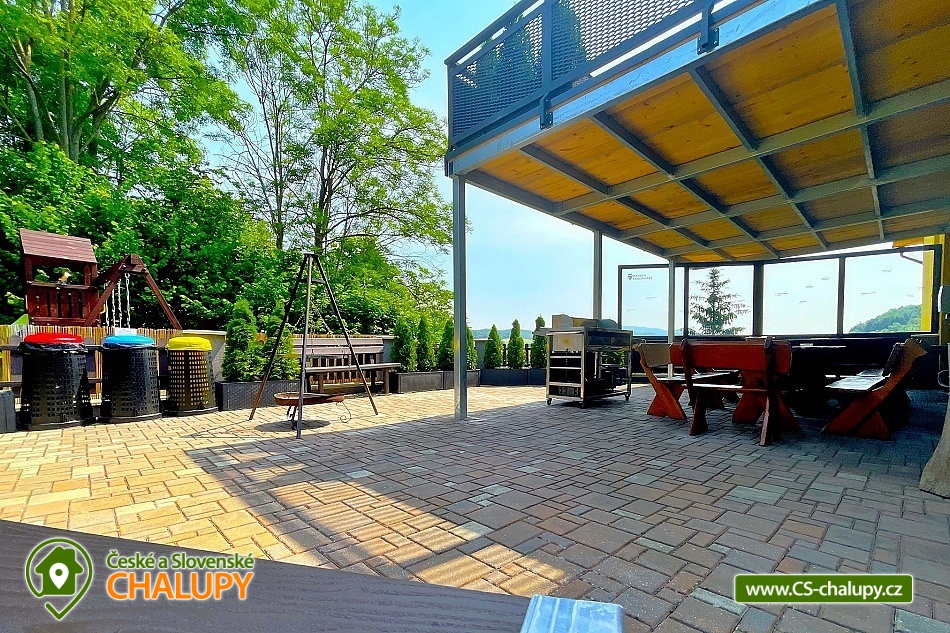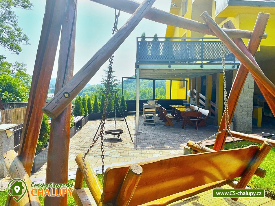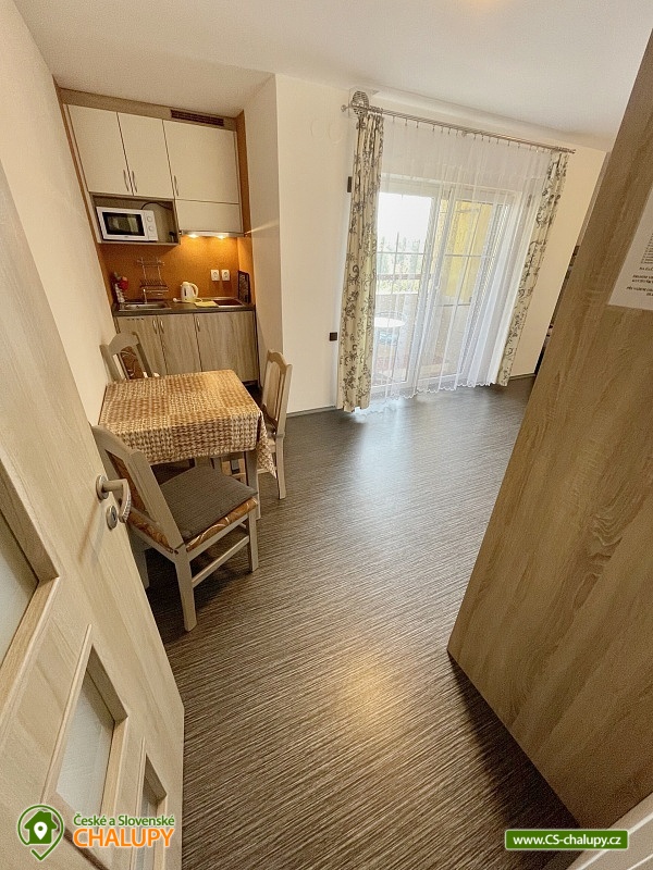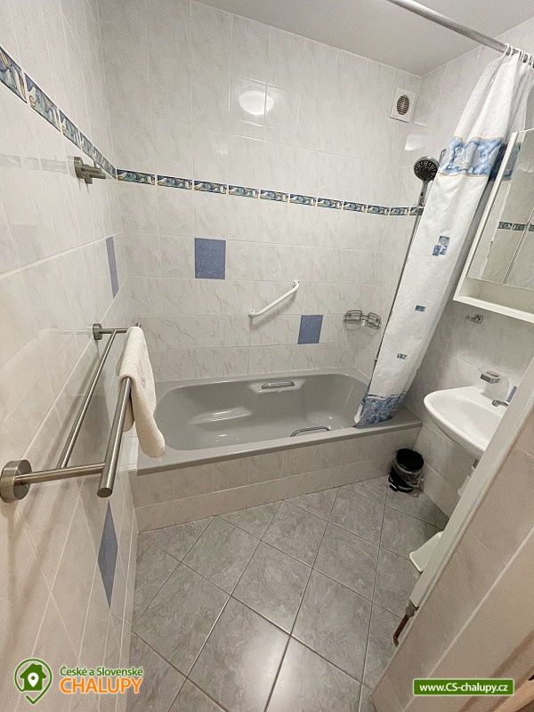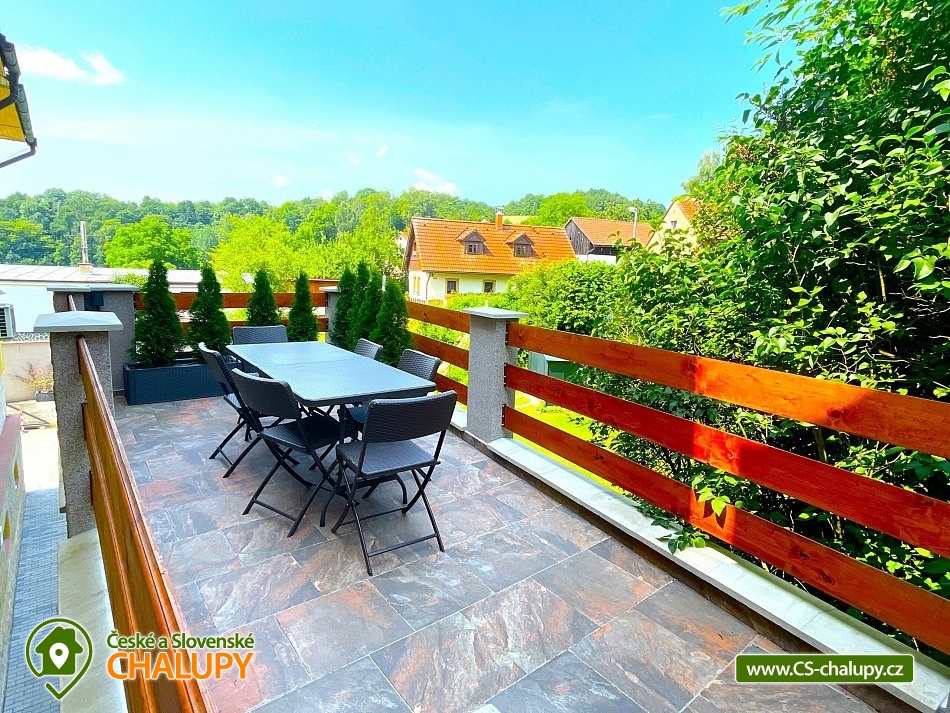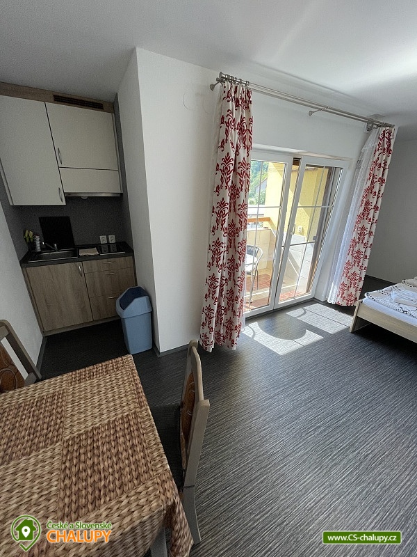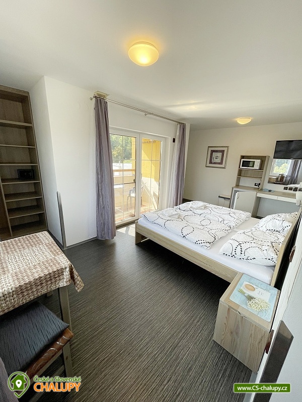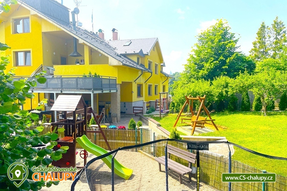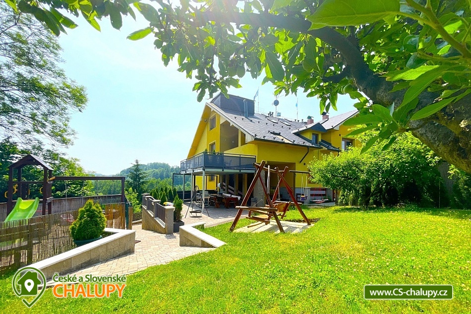 The Maxovo království apartment cottage is located on the outskirts of the town of Rovensko pod Troskami, in the very heart of the Bohemian Paradise. Its location makes it a great starting point for trips to popular tourist destinations such as Trosky Castle, Hruboskalsko, Malá Skála or the fairy-tale town of Jičín. Suitable for families with children, a group of friends, cyclists or corporate teambuildings. You can look forward to an outdoor and indoor swimming pool, sauna, terrace with seating or a games room equipped with billiards, table football or darts. The property offers accommodation for 36 people, in 10 separately rentable apartments. Each apartment has a fully equipped kitchen (ceramic hob, electric kettle, fridge, microwave and dishes), a dining area and a bathroom with a bathtub/shower, sink and toilet. The apartments are 2-bed or 4-bed (in the bedrooms where there are 2 single beds, they can be combined into a double bed) and are located on the ground floor and on the 1st floor. Possibility to rent a cot. APARTMENT No. 1 (1st floor, max. 2 people): 1x double bedroom (2x single beds), TV, kitchen, bathroom with shower and separate toilet, view of the town of Rovensko pod Troskami. APARTMENT No. 2 (1st floor, max. 4 people): 1x four-bed bedroom (2x single beds, 1x bunk bed), TV, kitchen, bathroom with shower and separate toilet, view of the town of Rovensko pod Troskami. APARTMENT No. 3 with balcony (1st floor, max. 5 people): 1x four-bed bedroom (2x single beds, 1x bunk bed + possibility of an extra bed for one person - fold-out bed), TV, kitchen, bathroom with shower and toilet, view of the town of Rovensko pod Troskami. APARTMENT no. 4 with balcony (1st floor, max. 3 people): 1x double bedroom (2x single beds + possibility of an extra bed for one person - fold-out bed), TV, kitchen, bathroom with bath and separate toilet, view of the town of Rovensko pod Troskami and Trosky Castle. APARTMENT no. 5 with balcony (1st floor, max. 3 people): 1x double bedroom (2x single beds + possibility of an extra bed for one person - fold-out bed), TV, kitchen, bathroom with shower and toilet, view of the Trosky Castle. APARTMENT no. 6 with balcony (1st floor, max. 5 persons): 1x four-bed bedroom (2x single beds, 1x bunk bed + possibility of an extra bed for one person - a fold-out bed), TV, kitchen, bathroom with shower and separate toilet, view of Trosky Castle and the garden. APARTMENT no. 7 (1st floor, max. 4 persons): 1x four-bed bedroom (2x single beds, 1x bunk bed), TV, kitchen, bathroom with shower and separate toilet, view of the garden. APARTMENT no. 8 (1st floor, max. 2 persons): 1x double bedroom (2x single beds), TV, kitchen, bathroom with shower and separate toilet, view of the garden. APARTMENT no. 9 (1st floor, max. 4 people): 1x four-bed bedroom (2x single beds, 1x bunk bed), TV, kitchen, bathroom with shower and separate toilet, garden view. APARTMENT No. 10 DELUX (ground floor, max. 4 people): 1x four-bed bedroom (1x large double bed, 1x bunk bed), TV, kitchen, bathroom with shower and toilet, view of the town of Rovensko pod Troskami and outdoor pool. There are 3 more toilets in the accommodation (2x in the common room, 1x by the indoor pool). There is a common room with seating for up to 36 people, equipped with a TV, projector, screen and bulletin board. Here you can organize a family celebration, a meeting of friends or a company teambuilding. Possibility of providing breakfast, catering, wine tasting, homemade cheeses and sausages or the possibility of inviting a grillmaster. There is also karaoke, beer pong, a shared kitchen (complete with a large refrigerator, a convection oven, a dishwasher, a Dallmayer coffee maker and a portable tap). For relaxation, there is an indoor pool (6x3m, depth 150 cm) and a Finnish sauna (preheated to 100 °C) with a relaxation zone. There is also a games room equipped with billiards, table football, a darts machine, a large-screen TV, stylish seating and two arcade machines. The building is heated by underfloor heating, and there are also electric heating ladders in the bathrooms. The cottage is surrounded by a fenced garden with a grassy area. There is a roofed terrace with benches, tables and a large grill. On this terrace you will also find a fireplace with seating. There is free Wi-Fi internet access throughout the building and on the terrace. In the immediate vicinity of the accommodation there is an outdoor swimming pool (6x3m, depth 150 cm), a garden swing and a seating area with a fireplace and a smokehouse. The little ones will appreciate the fenced children's playground with a sunken trampoline, slide and swings. Parking directly at the property (max. 10 cars) on a fenced, camera-guarded plot. It is also possible to use a second, 50 m away, parking lot (max. 5 cars). In the vicinity of the property there is the possibility of hiking, cycling, swimming, rafting, mushroom picking, fishing and winter sports. In the town you can use the nearby football field, children's playground with refreshments, outdoor ice rink or tennis courts. Swimming options include: outdoor pool Železný Brod, aquapark Liberec, aquapark Turnov, Jinolické ponds, Sedmihorky with a sandy beach, Vidlák pond, Malá Skála - Žlutá plovárna or Bělá u Turnova swimming pool. Nearby ski resorts are: Kozákov, Turnov - Struhy, Nad Nádražím - Semily or Koberovy - Hamštejn. The surrounding area is attractive for trips: Hrubá Skála, Malá Skála, Vranov Castle - Pantheon, Kopicův statek - sandstone sculptures carved into the rocks, Sedmihorky spa, Kozákov lookout tower, Hamštejn lookout tower, inverted bells on the bell tower in Rovensko pod Troskami, Prachovské Rocks, Kost Castle, Valdštejn Castle, doll museum in Troskovice, Trosky Castle, Jinolické ponds, "Šťastná země" amusement park - Radvánovice, Humprecht Chateau, Bozkovske dolomite caves, Jizera Valley, Jičín - a city of fairy tales, Borecké Rocks with a view of the fallow 