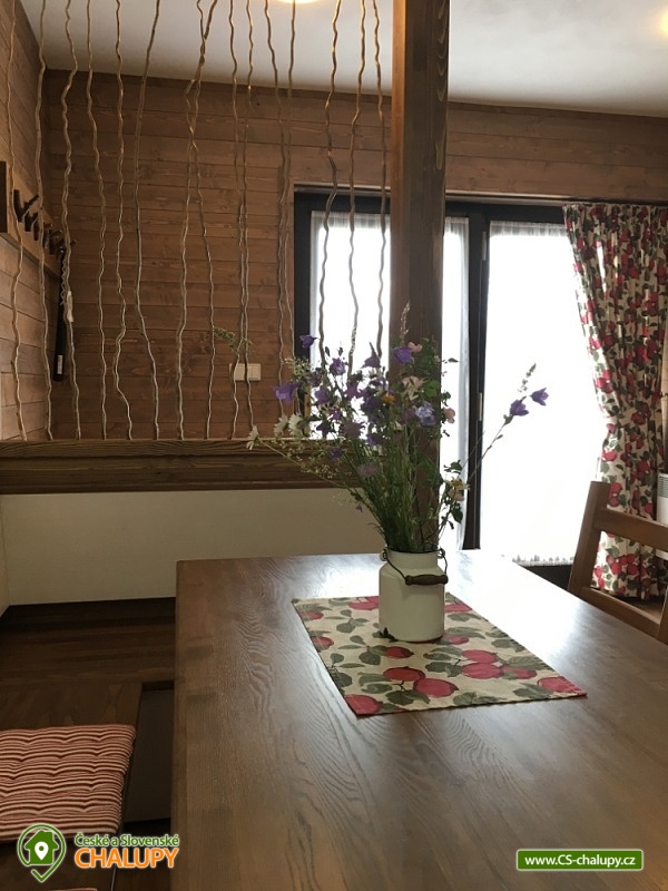 Chata s kouzelným výhledem na malebné hřebeny Javorníků na Valašsku. Chata nabízí celodenní slunce a kouzelný výhled na malebné hřebeny Javorníků, poloha nedaleko cyklostezky Bečva. Kapacita chaty je až 4 osoby. V přízemí chaty je obytná místnost s kuchyňským koutem a krbovými kamny a TV. 1x koupelna se sprchovým koutem a WC. První patro: 1x 4 lůžkový pokoj (2x dvoulůžko). Podkroví: podkrovní prostor se třemi matracemi pro spaní max. 3 dětí. Přímo od chaty můžete začít pěší túru nebo se vydat na cyklovýlet. Anebo taky nemusíte dělat vůbec nic a užívat si pohodu v přírodě. Na chatu navazující les je přímou součástí pozemku. Naslouchejte šumění korun stromů, pozorujte zvířata. Nadechněte se čerstvého vzduchu a vychutnávejte si pramenitou vodu z vlastního horského pramene. Okolí: Cyklostezky Bečva, Karlovské jezero, Muzeum Velké Karlovice, Wellness hotel Soláň, Vodní svět + Dětský svět Velké Karlovice, Skanzen Rožnov pod Radhoštěm, Rožnovské pivní lázně, Pustevny - Radegast, Stezka Valaška a Tarzanie - Lanový park Trojanovice. Těšíme se na Vás u nás.