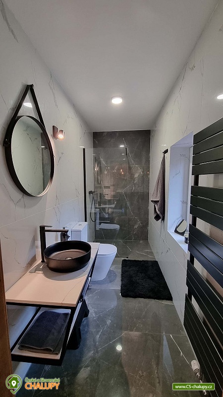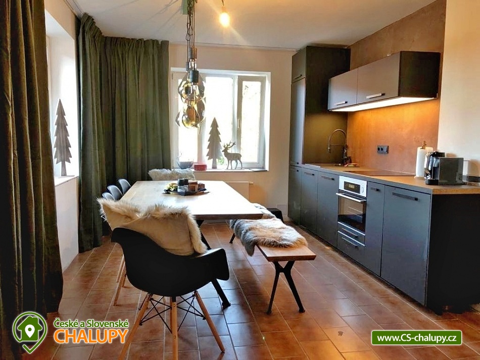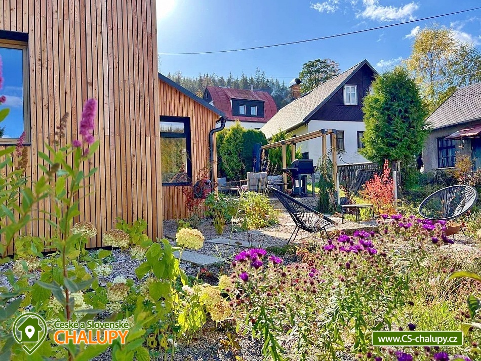 Chata s wellness (wellness místnost s vířivou vanou a výhledem do zahrady) se nachází u přírodní rezervace Jedlový důl v obci Josefův Důl. Chata se nachází v ráji Jizerských hor, s výhledem na novogotický kostel a krásnou hornatou krajinu protkanou turistickými a běžkařskými tratěmi světově známé Jizerské 50. Chata je umístěná ve svahu, přesto je velmi dobře přístupná. Těšit se můžete na relaxování ve vířivce s výhledem do zahrady. Moderně vybavená chata nabízí ubytování pro až 8 osob ve čtyřlůžkových ložnicích, ve kterých je k dispozici 2x dvoulůžková postel. Po domluvě možnost dalších dvou přistýlek v zimní zahradě, kde je k dispozici 1x dvoulůžko řešené Queen size pohovkou. K zapůjčení je dětská postýlka. Společné chvíle lze trávit v obývacím pokoji s TV a s moderním rohovým krbem zajišťujícím příjemné posezení a velmi atraktivní atmosféru. Dále je možné pobývat v zimní zahradě nebo u jídelní stolu v plně vybavené kuchyni (varná deska, trouba, rychlovarná konvice, mikrovlnná trouba, lednička, myčka nádobí a topinkovač). Sociální zařízení zahrnuje dvě designové koupelny se sprchovým koutem a dvěma toaletami a wellness zónu s vířivou vanou. K dispozici je pračka. Vytápění je řešeno plynovým kotlem a krbovými kamny v obývacím pokoji. V celém objektu je k dispozici WIFI připojení na internet. Po celý pobyt jsou k dispozici osušky, ložní prádlo, start balíček s kávou (Nespresso), utěrky, tabletky do myčky a dřevo na zátop. Chata je obklopená rozkvetlou zahradou, kde je připravené posezení nejen u stolu, ale také v pohodlném lounge stylu. K dispozici je plynový gril a posezení u ohniště. Děti mají k dispozici skluzavku. Parkovat lze přímo u objektu. V okolí možnost turistiky, cykloturistiky, koupání, houbaření, běžkování a lyžování. V blízkosti je také jízdárna a bikepark Tanvaldský Špičák. Mezi možnosti koupání patří např: přírodní koupaliště Josefův Důl, koupaliště Lučany nad Nisou, přehrada Mšeno, koupaliště Tanvald, koupaliště Dolina, přehrada Bedřichov, Lesní koupaliště Liberec, přehrada Harcov, koupaliště Hejnice, koupaliště Zlatá Olešnice, plavecký bazén Liberec, atd. V zimním období jsou k dispozici blízká lyžařská střediska: Tanvaldský Špičák, Bukovka - Josefův Důl, Lucifer - Josefův Důl, Selský dvůr - Albrechtice, Severák, U Tomáše - Albrechtice, U PILY - Lučany nad Nisou, Světlý vrch, Detoa - Albrechtice v Jizerských horách, Bedřichov - U Vodárny, Filip - Smržovka a další. K výletům v okolí lákají vodopády Jedlový důl, Mariánskohorské boudy, přehrada Josefův Důl, Protržená přehrada Bílá Desná, Kristiánov, rozhledny Bramberk, Královka, Slovanka a Tanvaldský Špičák, rašeliniště Na čihadle, Muzeum Na cestě - Lučany nad Nisou, Muzeum skla a bižuterie - Jablonec nad Nisou nebo ZOO Liberec. Těšíme se na Vás u nás.