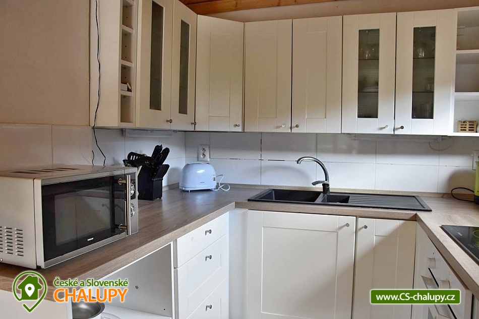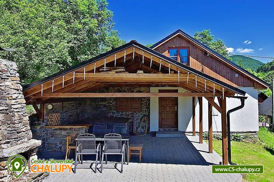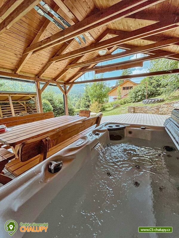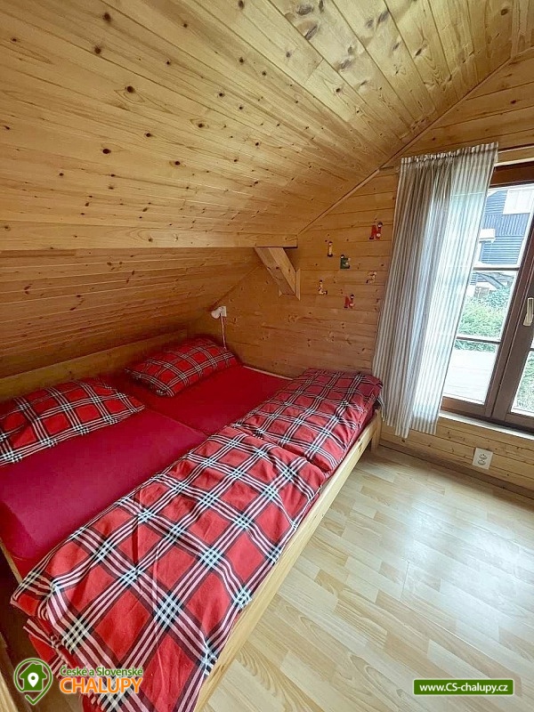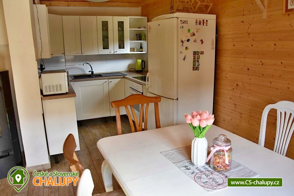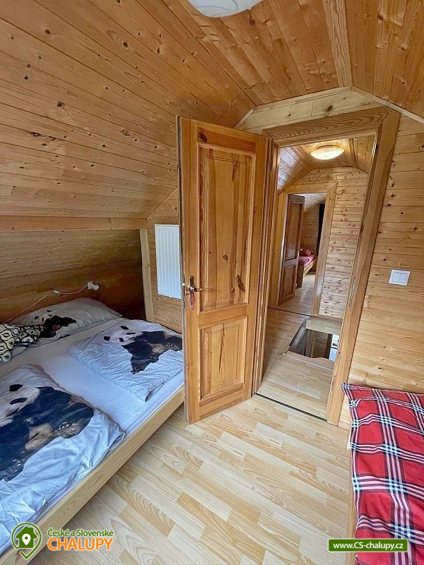 Chata U Mě with sauna and hot tub is located in the recreation center Kouty nad Desnou, which is part of the village of Loučná nad Desnou. You can look forward to beautiful views of the surrounding nature of the Jeseníky PLA. In winter, the close proximity of the Kouty ski area is an advantage. There is also a bike and scooter rental in the area, or you can take the cable car to the Dlouhé strána pumping station and enjoy the long descent down. Chata U Mě offers accommodation for 9 people in two bedrooms. The bedrooms are located in the attic, in total there is one four-bed bedroom (2x double bed) and one five-bed bedroom (2x double bed and 1x single bed). A cot is available for rent. Upon agreement, the sofa bed by the sauna can be used as an extra bed. On the ground floor, you can spend time together in the common room with a fireplace, sofa, TV, dining table and board games. The room includes a fully equipped kitchenette (hob, oven, microwave, fridge, freezer, kettle, toaster and Dolce Gusto coffee machine. You can also enjoy relaxing in the sauna. WIFI internet connection is available throughout the building. Sanitary facilities it includes one bathroom on the ground floor with a shower and toilet and one further separate toilet. Heating is provided by a fireplace and underfloor heating in the common room. There is also an electric oil radiator on the ground floor and in the bedrooms. There is a heating ladder in the bathroom. Z hygiene needs: hand soap, a tea towel, a jar, a dish sponge, 2 pieces of toilet paper and basic cleaning products are provided for the guests. Bed linen can be rented for a fee (100 CZK/piece), you must bring your own towels. You can sit outside on a covered terrace with garden furniture, a fireplace, a grill and an outdoor hot tub where you can relax from May to September (depending on the weather) Children can look forward to lots of outdoor toys and a sandpit. You can park directly at the building. In the surroundings of the cottage, hiking, cycling, swimming, fishing, mushroom picking, cross-country skiing and skiing are possible. Tennis courts and mini golf are nearby. Bathing options include, for example: Velké Losiny - thermal baths, Velké Losiny thermal swimming pool, Domašov - Bělá pod Pradědem swimming pool, Rapotín swimming pool, Karlova Studánka swimming pool, Jeseník swimming pool, Hynčice pod Sušinou - Úžas pond, Krásné dam, Jeseník - Priessnitz swimming pool, etc. In winter, nearby ski resorts are available: Kouty nad Desnou, Kareš - Kouty nad Desnou, Přemyslov, OAZA - Loučna nad Desnou, Kocián - Loučna nad Desnou and others. The Dlouhé Stráně pumped water power plant, the Kociánov sports and recreation area and the Loučná nad Desnou castle park, the Velké Losiny hand-made paper mill and paper museum, the Bukovka Rapotín observation tower, the veteran museum and the Rapotín zoo or the Praděd children's museum in Bludov invite you to make trips in the area. We look forward to seeing you here.