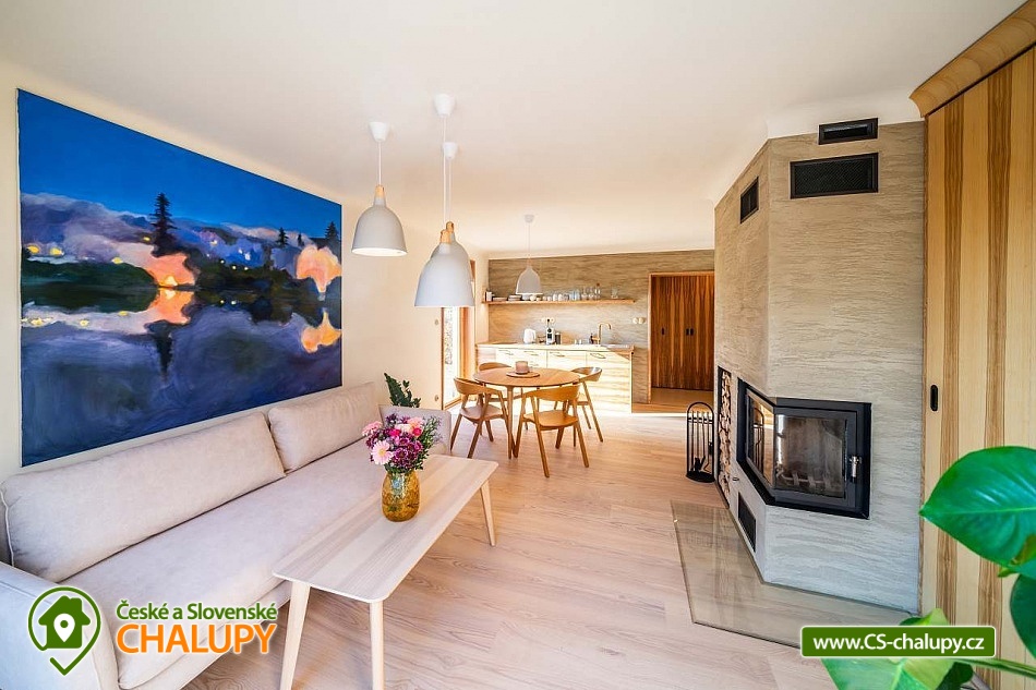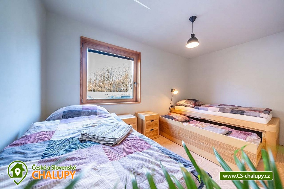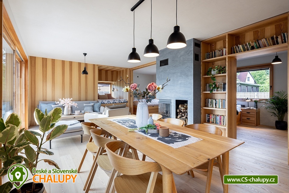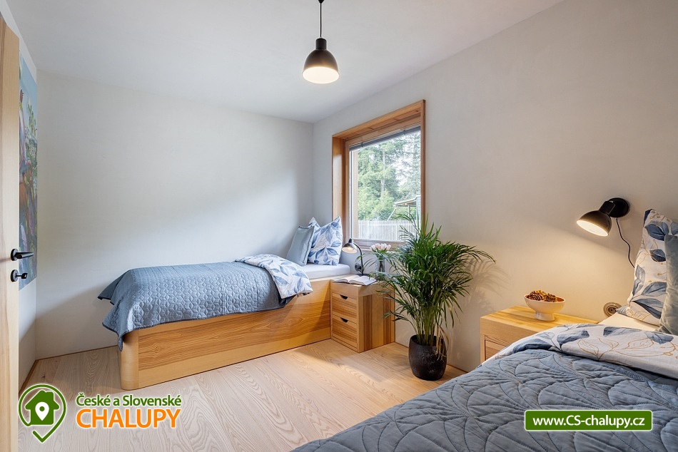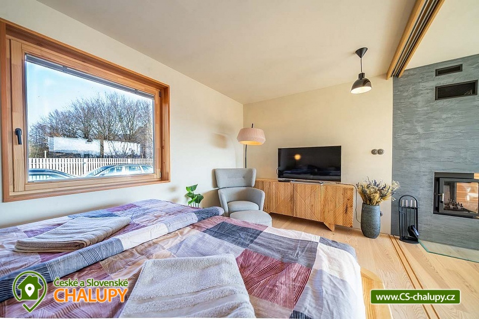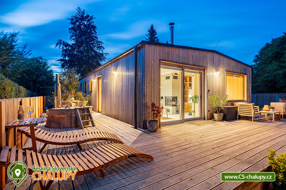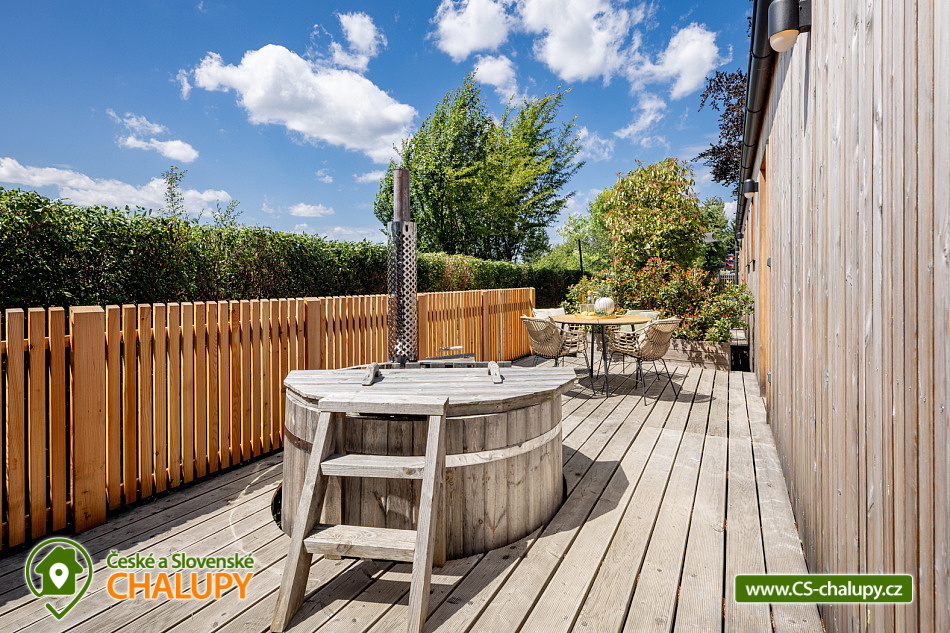 The cottage with wellness is located in a beautiful sunny location in the village of Seč near the dam of the same name (200 m), which invites you to swim and do water sports. You can look forward to comfortable accommodation and relax in the sauna or in the hot tub. The cottage offers accommodation for 12 people in two separately rentable apartments with their own entrance, bathroom, kitchen and terrace. Both apartments are situated with respect to the privacy of the guests. The building can be rented as a whole or each apartment separately. The smaller Apartment 1 has a capacity for 5 people, there are two double bedrooms, one with a double bed and the other with two single beds, and one extra bed in the form of a sofa bed in the living room. The large apartment has a capacity for 7 people, there are two separate spacious bedrooms, one with a double bed and the other with two single beds and an extra bed (pull-out bed), and one double bed located in the forward window of the living room. In both apartments, you can spend time together in the living room illuminated by panoramic windows with a view of the garden. The living room includes a fireplace, sofa, dining table and fully equipped kitchen (hob, kettle, Nespresso capsule coffee machine, fridge with freezer, plenty of dishes, towels and cleaning products). The large apartment also has a smart TV and microwave. In both apartments, the hallway behind the entrance door provides ample storage space, with a wardrobe and a shoe rack with a bench, and each bedroom has basic amenities for a comfortable stay. The sanitary facilities in both apartments include one bathroom with a shower and toilet. Heating is provided by a fireplace and underfloor heating in the bathrooms. There is WIFI internet access throughout the property. A cot, children's toys, a children's pool, ball goals, badminton and books are available for rent. Both apartments have a spacious outdoor terrace with seating, deck chairs and a grill. The terraces are positioned to maintain the privacy of guests. For an additional fee, all guests can use an outdoor sauna with a cooling tub and a hot tub. There is a storage room for sports equipment, bicycles and the possibility of charging electric bicycles. The cottage is located on a fenced plot. Parking is possible directly at the property, there are 4 parking spaces. In the vicinity of the cottage there is the possibility of hiking, cycling, swimming, mushroom picking, fishing and water skiing. In the immediate vicinity there is a summer restaurant, a children's playground, tennis courts, pedal boat, boat and paddleboard rental. Swimming options include: Sečská dam, Pařížov dam, Horní Bradlo - Tesla Vršov swimming pool, Borek quarry, Haberský pond, Peklo quarry, Vrdy swimming pool, Slatiňany swimming pool, Aquacentrum Pardubice and others. The beautiful valley of the Počátecký stream with a view of the ridge of the natural monument of the Kaňkovy Mountains, the Oheb nature reserve, the Lichnice nature reserve, the Lovětínská gorge, the Vysočina open-air museum - Veselý Kopec, Žleby Chateau or the Chrudim Museum of Puppet Cultures attracts visitors to the area. We look forward to seeing you there.