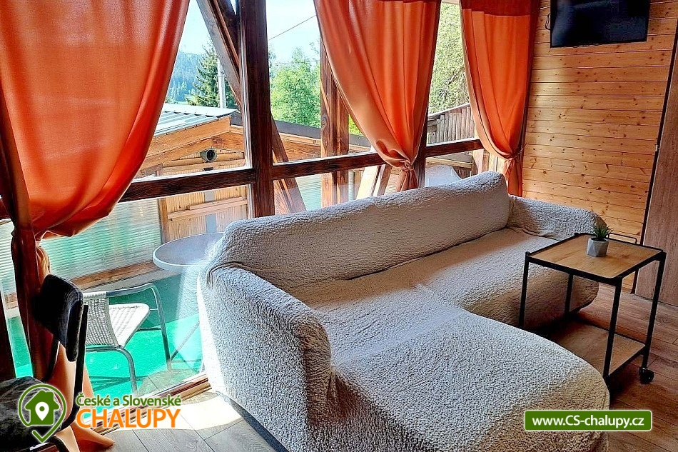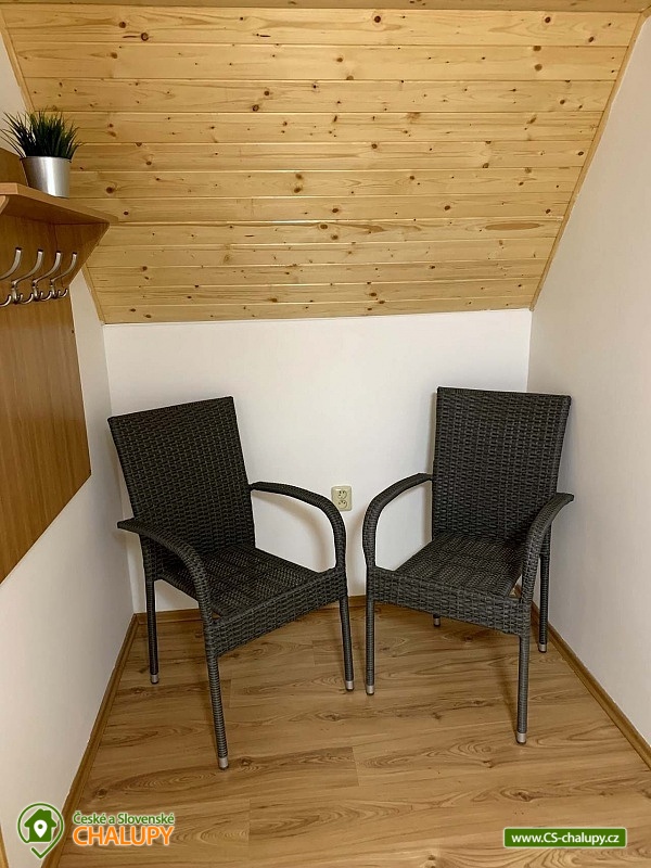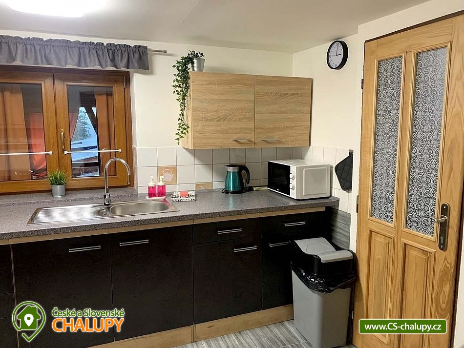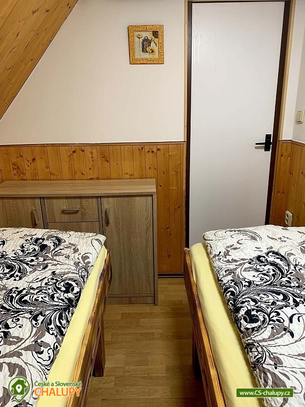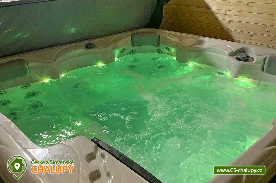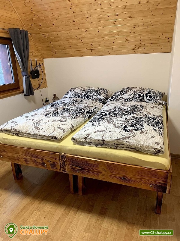 The cottage with wellness is located in the beautiful forested countryside of the Beskydy Protected Area near the village of Horní Bečva, under the Pustevny mountain pass. You can look forward to peace, privacy, relaxation in the jacuzzi and beautiful views of the surrounding mountain landscape. The cottage offers accommodation for 12 people in 5 bedrooms. Upstairs there are 3 bedrooms - 1x triple (double bed, single bed and cot) and 2x double bedrooms (two single beds). In the lowered attic (140 cm) there is a bedroom with 4 extra beds (single mattresses) and as another bedroom you can use the winter garden with a single bed on the ground floor. An extra bed on a sofa bed can be arranged by arrangement only. Upstairs in the large bedroom there is a wardrobe and bedside table, a lamp and in each of the two smaller bedrooms there is a chest of drawers and a lamp. On the ground floor of the cottage there is a vestibule, winter garden, hall, kitchen, living room, two bathrooms and a toilet. The living room includes a fireplace, a 43" TV, a sofa set extended by a bed, a coffee table, 2 stools and a dining table with 6 chairs. The room is connected to a fully equipped kitchen (four-burner electric stove with oven, electric kettle, microwave and washing machine). There are 2 kitchen towels, a sponge, a jar for dishes and a toro cleaner, a waste bin with a bag and basic kitchen equipment for 12 people (plates, glasses, mugs, wine glasses, beer glasses, shot glasses, cutlery, a frying pan, pots, bowls, trays, cutting boards, knives, openers, wooden spoons, scrapers, ladles, a colander, etc.). There is also a winter garden with a sofa bed with a table, a single bed, a table with 3 chairs and a smaller TV. There is a children's corner in the cottage for children. with toys. In the hallway there is a clothes rack, a shoe rack for sitting, a second shoe rack, 2 clothes hangers and a large fridge with freezer. 2x bucket, broom with a shovel, a mop for wiping, a large broom, a mop rag, a classic rag, a grill brush, an axe and a wood saw are available for rent. The sanitary facilities include 3x showers, 3x toilets and 3x washbasins. The cottage has 1x bathroom with a shower and a toilet with a washbasin, 1x bathroom with a shower with a washbasin cabinet and 1x separate toilet with a washbasin. Furthermore, the wellness room with a jacuzzi has another bathroom - a bathroom with a shower and a toilet with a washbasin. Each bathroom has a hand towel, liquid hand soap, a cup for toothbrushes and a mat in front of the shower. There is 1 toilet roll in the toilet. The separate toilet includes a hand towel, liquid hand soap, a basket with a bag, a children's potty, a children's toilet seat and a children's high chair. You must bring your own body towels and other bathroom necessities. Heating is provided by a fireplace and electric underfloor heating. For the comfort of guests, the cottage windows are equipped with insect screens. WIFI internet access is available throughout the property. The cottage has a fully fenced outdoor terrace with a grill and a 15-liter goulash basin. There is also a children's playground (sandbox and chalk board). Next to the cottage, there is a wellness room with a whirlpool with an ozonator for 4 people, a seating area and a bathroom with a toilet and sink. A tennis court can be used under the cottage (150m) by arrangement and for an additional fee. Parking is available directly at the property. There are 4 parking spaces available. A well-maintained asphalt road leads to the cottage, which is easily accessible even in winter. In the vicinity of the cottage there are opportunities for hiking, cycling, swimming, mushroom picking, fishing, in-line skating, ice skating, skiing, snowboarding and cross-country skiing. Nearby there are tennis courts, bowling, a golf course, minigolf and a riding school. Swimming options include: swimming biotope - Prostřední Bečva, dam - Horní Bečva, swimming pool Hutisko - Solanec, swimming pool Vigantice, swimming pool Rožnov pod Radhoštěm, swimming pool Velké Karlovice, swimming pool Frenštát pod Radhoštěm, swimming pool Velké Karlovice, indoor swimming pool Rožnov pod Radhoštěm, aquapark Frenštát pod Radhoštěm, swimming pool Balaton, etc. There are nearby ski resorts: U Sachovy studánky - Horní Bečva, Rališka - Horní Bečva, Bílá, Kociánka, Solisko, Pod Soláněm and others. Pustevny, Radhošť, Radegast Statue, Kněhyně Nature Reserve are alluring for trips in the area. - Devil's Mill, Children's Entertainment Center - Gibon Park, Wallachian Open Air Museum - Rožnov pod Radhoštěm, Jurkovič Lookout Tower or Tatra Automobile Museum - Kopřivnice. We look forward to seeing you.