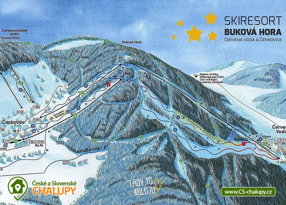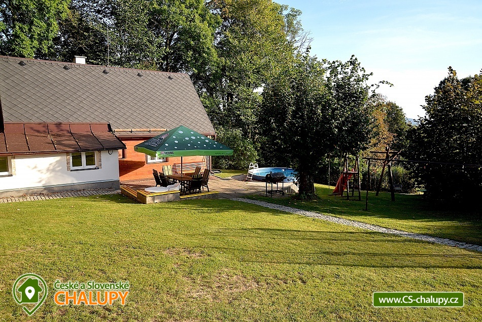 Cottage Horní Lipka - Králíky - Králický Sněžník. Chata Lipka offers year-round accommodation within easy reach of the ski resort Dolní Morava, but in a quiet and peaceful place of a small village Horní Lipka. On the 1st floor of the cottage there are 3 triple rooms, one room can add 1 extra bed. The kitchen is equipped with an adequate number of dishes, refrigerator, microwave, kettle, induction hob, dishwasher and electric oven. Living room with TV and dining area, billiards. On the ground floor separate bathroom with shower and sink, separate toilet. The cottage is heated by an electric boiler or a boiler for solid fuels - coal, wood with the possibility of heating with a fireplace in the living room. A partially paved access road leads to the cottage, parking is possible directly at the cottage and in the winter months with more snow 50m from the cottage. The cottage also has an outdoor seating area with parasol, circular pool, fireplace with seating, outdoor grill and the possibility of standing table tennis on the terrace. You will enjoy the surroundings of Dolní Morava under Králický Sněžník in winter and summer. In spring and summer, the surroundings of Králický Sněžník are an ideal place for mountain hiking, mountain biking and adrenaline activities. In the Dolní Morava resort you will find a cable car, a bobsled track, a rope park with an adventure tower, a Segway rental, an e-bike rental, a Disc golf park, a children's park and much more. In winter, the Dolní Morava ski area is one of the TOP ski resorts in the Czech Republic. This new modern ski resort below the top of Králický Sněžník offers excellent conditions for skiing along with all comforts. In the area there are a total of 5 slopes, 2 new modern four-seater lifts, 2 ski lifts, children's carpet and much more.