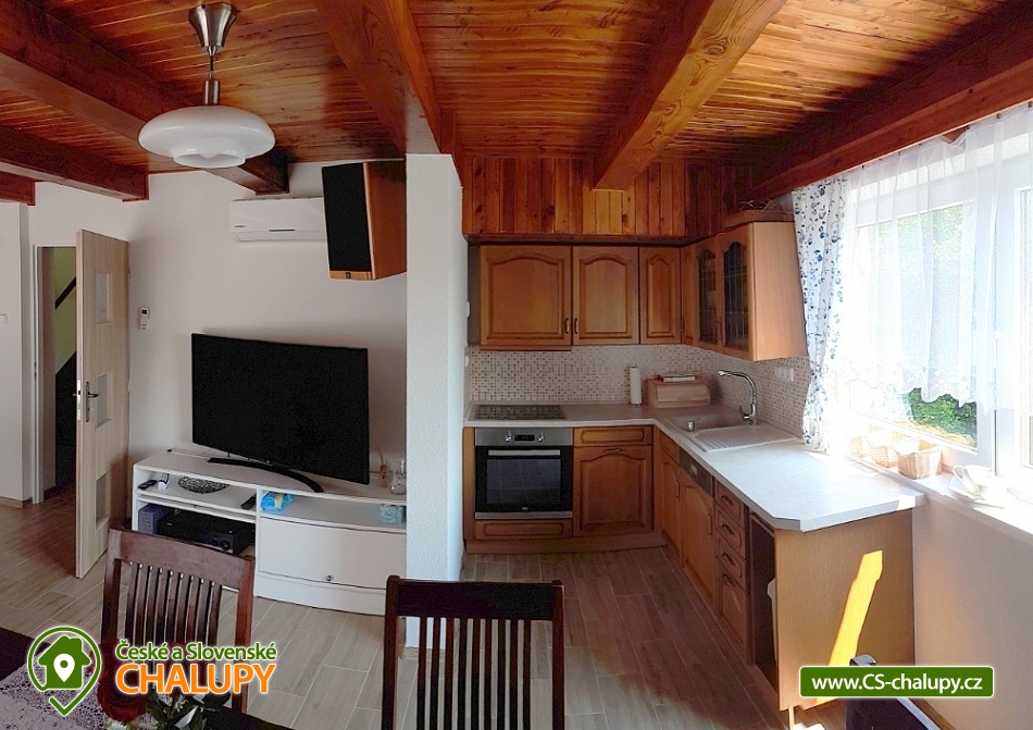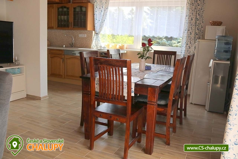 Chata s infra saunou a vířivkou se nachází v klidné lokalitě chráněné krajinné oblasti Českomoravské vysočiny - Železné hory, poloha u Zuberského vrchu, Dřevíkova a Hlinska na samém okraji obce Zubří. Chata poskytuje ubytování pro až 9 osob ve 2 ložnicích: 100 m les, 300 m sjezdovka Trhová Kamenice, rozhledna na Zuberském kopci 250m. Velká zahrada s dětským hřištěm a trampolínou, pískovištěm, prolézačkami, ohništěm a grilem. Možnost parkování kol a uložení potřeb v garáži. Ložnice a pokoje: Obě ložnice se nacházejí ve 2. nadzemním podlaží. Přístup je možný pouze po schodišti, které končí v malé chodbičce. Odkud jsou samostatné vstupy do jednotlivých pokojů. Západní pokoj - 1x dvoulůžko , 3x jednolůžko a dětská postýlka. Východní pokoj - 1x dvoulůžko a 2x jednolůžko, z pokoje je přístup na prostorný balkón s posezením. Oba pokoje vybaveny samostatnou klimatizační jednotkou pro potřeby chlazení či topení. Vlastní kuchyň - plně vybavena jak nádobím, tak i elektrickými spotřebiči (sklokeramická deska, trouba, myčka, mikrovlnná trouba, rychlovarná konvice atd). Sociální zařízení: V přízemí objektu je k dispozici koupelna s prostorným sprchovým koutem, umyvadlo a WC. V suterénu je k dispozici další WC s umyvadlem, pračkou a saunou, dále je v suterénu umístěna herna, nebo společenská místnost k posezení. V hlavní letní sezoně je k dispozici za poplatek vířivka až pro 6osob. Vytápění: Pro zimní provoz je objekt vybaven tepelným čerpadlem a ústředním vytápěním . Dalším zdrojem tepla při pobytu v zimě je litinová krbová horkovzdušná vložka, která zajistí také teplo v celém objektu. Teplou vodu v dostatečném objemu připravuje el. bojler 24h. Parkování u chaty, na parkoviště se pohodlně vejdou 3 automobily. Pokud by to nestačilo, je možno parkovat na přilehlé zahradě. Na pozemku se nachází malé okrasné vodní jezírko (není koupací). Dále je zde k dispozici dětské hřiště, velká trampolína, pískoviště a prostorná udržovaná zahrada. Grilovat je možno na grilu na dřevěné uhlí popřípadě otevřeném ohništi. Do chaty doporučujeme vlastní přezůvky, zejména pak v zimních měsících. V okolí: Peklo Čertovina 11km, Pohádková vesnička Podlesí 30km. Turistika a cykloturistika: mnoho stezek i pro méně pokročilé, blízké lesy pro houbaře. Rozhledna ZUBŘÍ. Přírodní rezervace rašeliniště a vřesoviště Zubří 500m, Muzeum Trhová Kamenice - bývalá fara (výstavy, koncerty), Prales POLOM - přírodní perla Železných hor 10 km (původní bukojedlové porosty), Skanzen na Veselém Kopci 3 km a Skanzen Hlinsko 10 km. Těšíme se na Vás u nás.