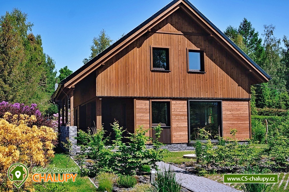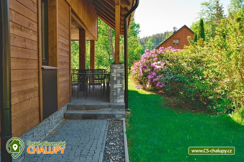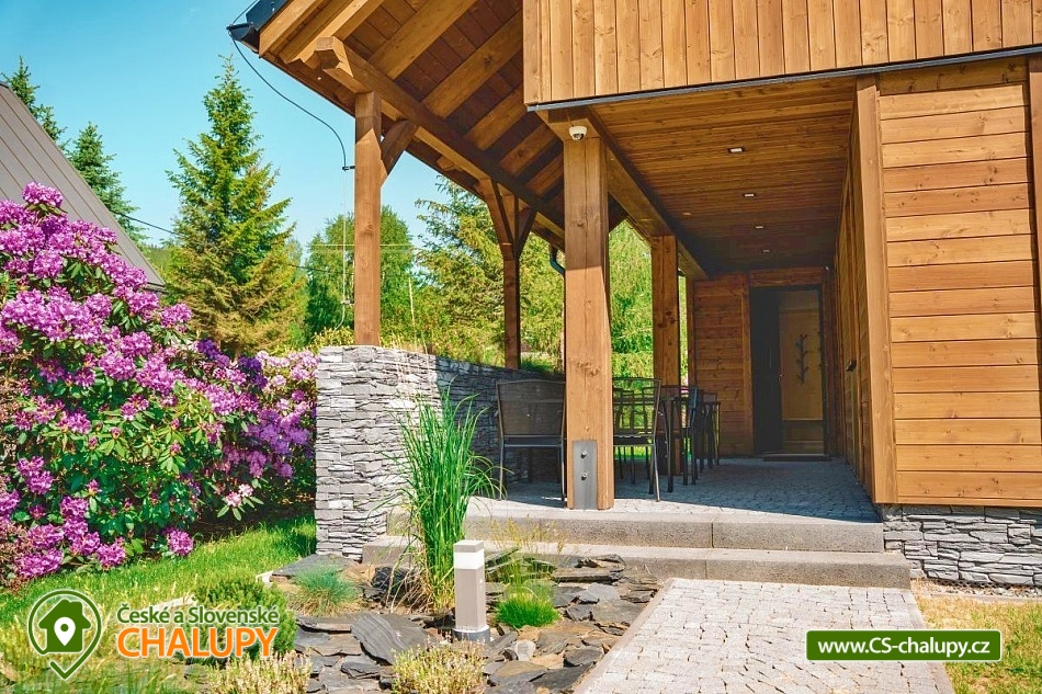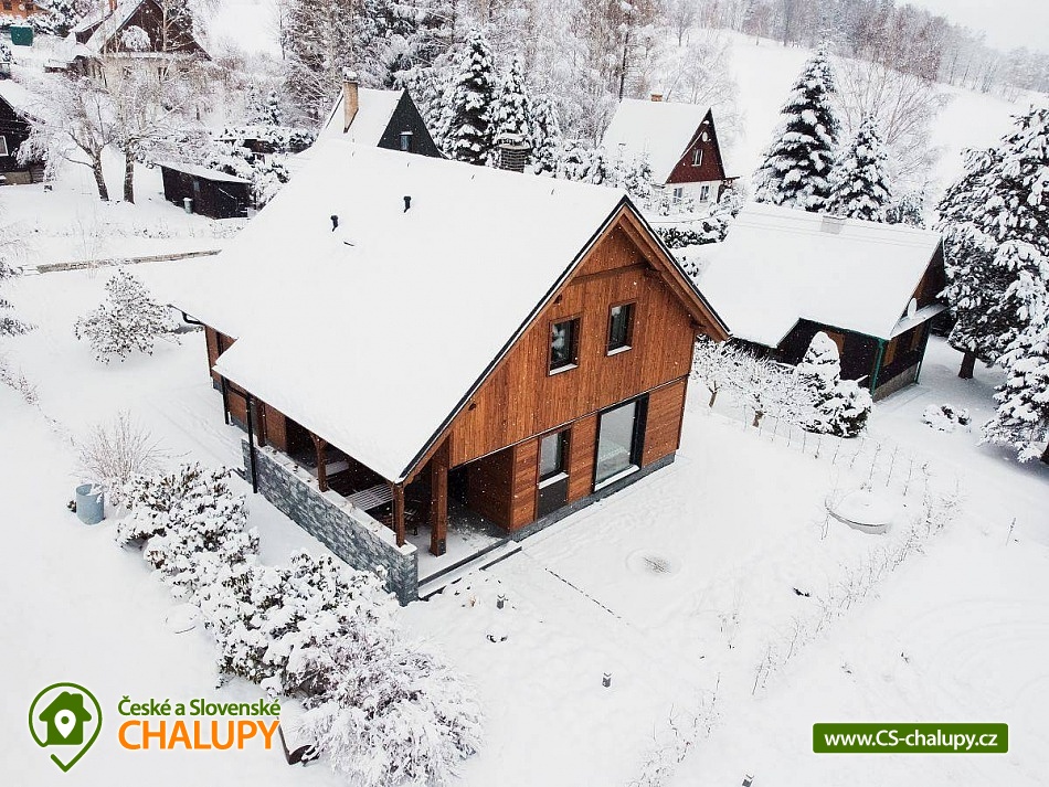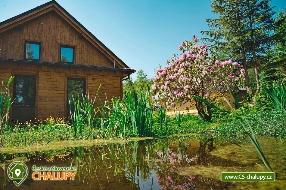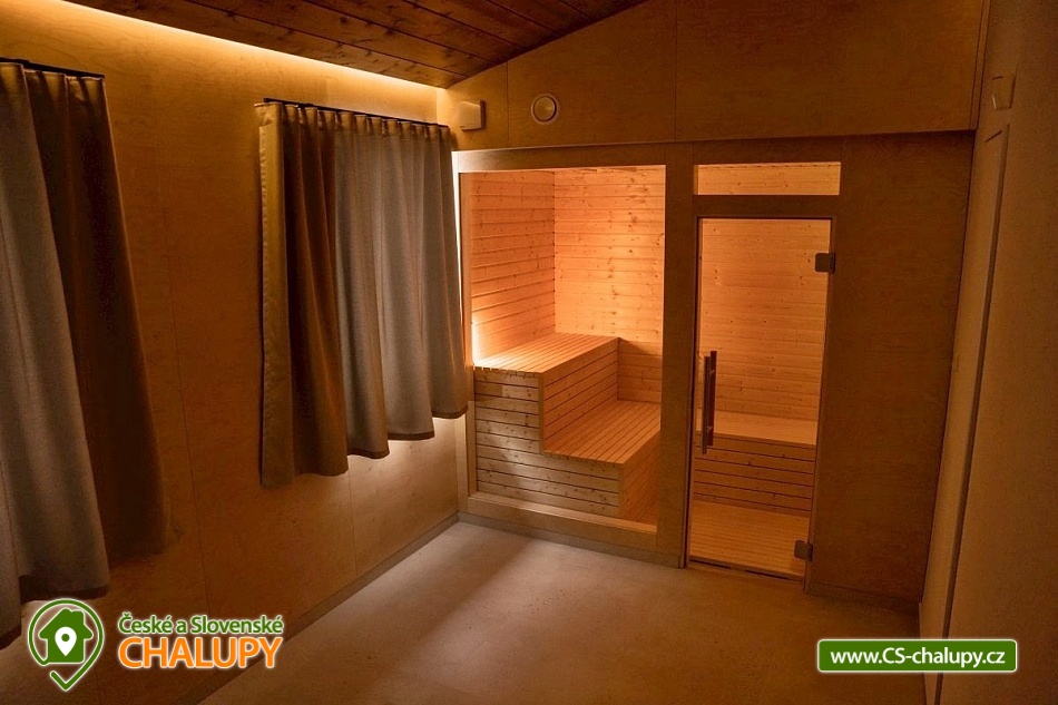 Chata se saunou je obklopena hustými lesy, leží na půl cesty mezi lyžařským centrem Červenohorské sedlo a městem Jeseník, což ji činí ideálním výchozím bodem pro výlety a poznávání krás Jeseníků. Chata nabízí ubytování pro až 12 osob ve čtyřech ložnicích umístěných v patře. K dispozici jsou dvě dvoulůžkové ložnice s manželskou postelí a dvě čtyřlůžkové s manželskou postelí a dvoulůžkovou spací kójí, do které vede žebřík. V přízemí se nachází společenská místnost s krbovými kamny, která je vybavena sedací soupravou a Smart TV. Součástí je také jídelní část s prostorným jídelním stolem a plně vybavenou kuchyní, která zahrnuje myčku nádobí, indukční sporák, elektrickou troubu, mikrovlnnou troubu, rychlovarnou konvici, toustovač a topinkovač. Vedle společenské místnosti je pokoj, který může sloužit jako herna pro děti. K dispozici je také wellness místnost s finskou saunou. Sociální zařízení zahrnuje dvě koupelny – jednu v přízemí s toaletou a sprchovým koutem a druhou v patře s vanou a toaletou. V celém objektu je k dispozici WIFI připojení na internet. Kolem chaty se rozléhá travnatá zahrada s okrasným jezírkem, kde můžete posedět na zastřešené terase nebo u ohniště. K dispozici je kůlna pro uschování kol a lyží, a parkovat lze přímo u objektu. V okolí je možnost turistiky, cykloturistiky, koupání, houbaření, běžkování a lyžování. V blízkosti se nachází jízdárna a tenisové kurty. Nedaleko chaty jsou dvě restaurace – Pepovka (100 m) s krytým bazénem a multifunkčním hřištěm a restaurace Stará Pošta (400 m). V těsné blízkosti (300 m) se nachází vyhledávané lyžařské středisko Skipark Filipovice s sedačkovou lanovkou a dalšími službami. Další lyžařská střediska, jako Červenohorské sedlo, jsou také snadno dostupná. Oblast nabízí spoustu možností pro výlety. Lákají cyklotrasy z Červenohorského sedla na Videlské sedlo a pásmem Orlíka na Rejvíz nebo na Obří skály nad Ramzovou. Zajímavé jsou také Filipovické louky s rašeliništi a výskytem ohrožených obojživelníků. Další atrakce zahrnují Vodní tvrz Jeseník, přečerpávací vodní elektrárnu Dlouhé Stráně, jeskyně Na Pomezí a Na Špičáku, rozhledny Zlatý Chlum a Biskupská kupa, lázně Velké Losiny, Karlova Studánka, Lipová – lázně nebo Praděd.