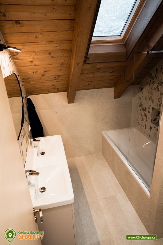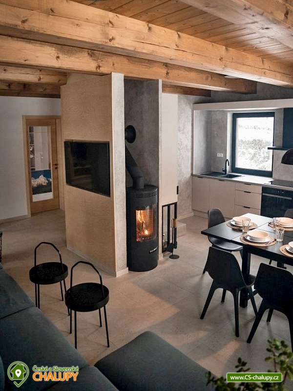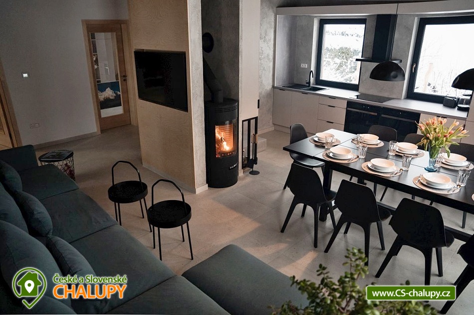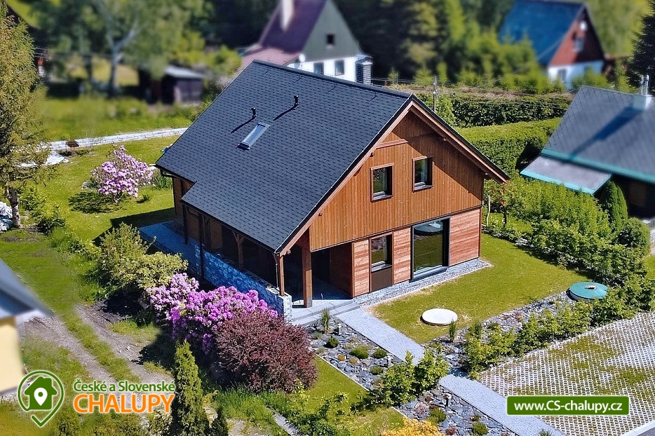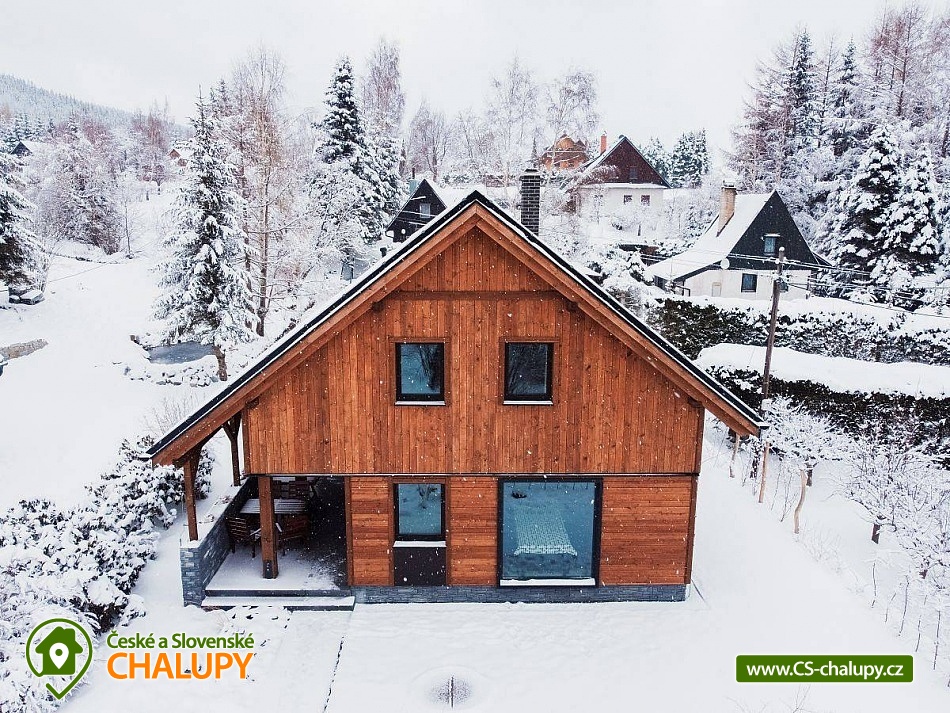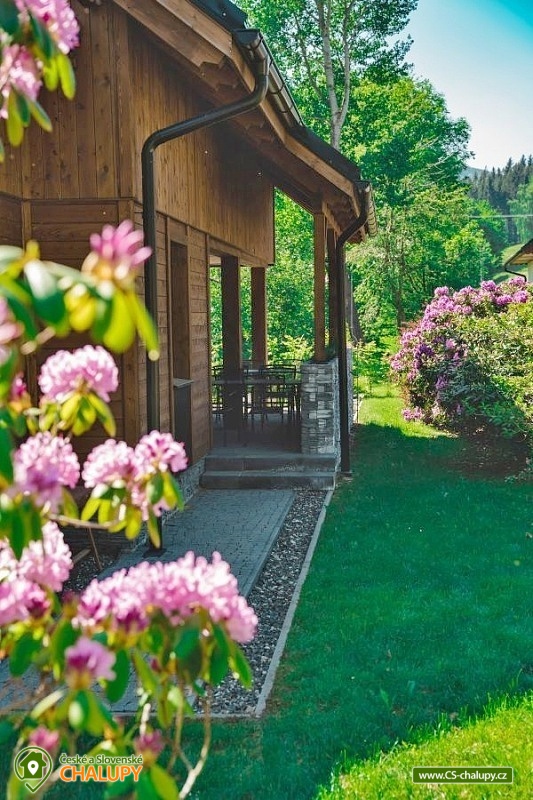 Chata se saunou je obklopena hustými lesy, leží na půl cesty mezi lyžařským centrem Červenohorské sedlo a městem Jeseník, což ji činí ideálním výchozím bodem pro výlety a poznávání krás Jeseníků. Chata nabízí ubytování pro až 12 osob ve čtyřech ložnicích umístěných v patře. K dispozici jsou dvě dvoulůžkové ložnice s manželskou postelí a dvě čtyřlůžkové s manželskou postelí a dvoulůžkovou spací kójí, do které vede žebřík. V přízemí se nachází společenská místnost s krbovými kamny, která je vybavena sedací soupravou a Smart TV. Součástí je také jídelní část s prostorným jídelním stolem a plně vybavenou kuchyní, která zahrnuje myčku nádobí, indukční sporák, elektrickou troubu, mikrovlnnou troubu, rychlovarnou konvici, toustovač a topinkovač. Vedle společenské místnosti je pokoj, který může sloužit jako herna pro děti. K dispozici je také wellness místnost s finskou saunou. Sociální zařízení zahrnuje dvě koupelny – jednu v přízemí s toaletou a sprchovým koutem a druhou v patře s vanou a toaletou. V celém objektu je k dispozici WIFI připojení na internet. Kolem chaty se rozléhá travnatá zahrada s okrasným jezírkem, kde můžete posedět na zastřešené terase nebo u ohniště. K dispozici je kůlna pro uschování kol a lyží, a parkovat lze přímo u objektu. V okolí je možnost turistiky, cykloturistiky, koupání, houbaření, běžkování a lyžování. V blízkosti se nachází jízdárna a tenisové kurty. Nedaleko chaty jsou dvě restaurace – Pepovka (100 m) s krytým bazénem a multifunkčním hřištěm a restaurace Stará Pošta (400 m). V těsné blízkosti (300 m) se nachází vyhledávané lyžařské středisko Skipark Filipovice s sedačkovou lanovkou a dalšími službami. Další lyžařská střediska, jako Červenohorské sedlo, jsou také snadno dostupná. Oblast nabízí spoustu možností pro výlety. Lákají cyklotrasy z Červenohorského sedla na Videlské sedlo a pásmem Orlíka na Rejvíz nebo na Obří skály nad Ramzovou. Zajímavé jsou také Filipovické louky s rašeliništi a výskytem ohrožených obojživelníků. Další atrakce zahrnují Vodní tvrz Jeseník, přečerpávací vodní elektrárnu Dlouhé Stráně, jeskyně Na Pomezí a Na Špičáku, rozhledny Zlatý Chlum a Biskupská kupa, lázně Velké Losiny, Karlova Studánka, Lipová – lázně nebo Praděd.