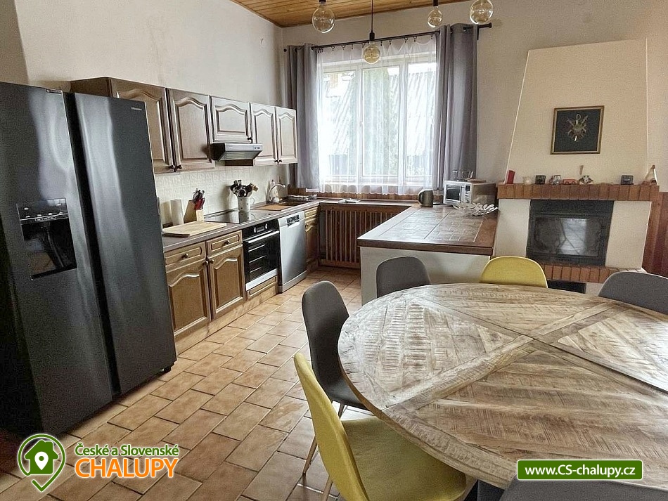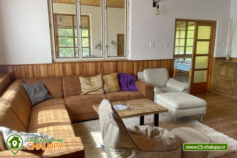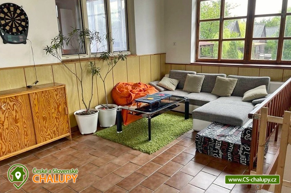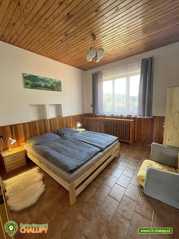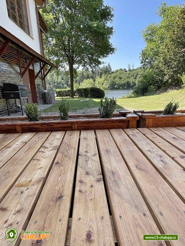 The large brick cottage with sauna is located in a cottage area directly on the bank of the Hracholusky dam near the village of Čerňovice near the city of Pilsen. You can look forward to beautiful views of the water surface directly from the terrace, water fun or fishing. The cottage with sauna offers accommodation for 10 people in three bedrooms. More beds can be provided by arrangement and for an additional fee. In total, there is 1 double bedroom with a double bed, 1 triple bedroom with a double bed and a single bed and 1 five-bed bedroom with two bunk beds. The third bedroom can be arranged for up to 6 people, both beds have an extended lower bed (140x200). A cot is available for rent. You can spend time together in the living room with a fireplace, TV with USB and satellite. There is a fully equipped kitchen (dishwasher, automatic coffee maker, fridge with freezer, kettle, microwave and electric stove with oven). For moments of fun, there is a games room equipped with a football, electronic darts and air hockey. There are also board games and a PlayStation. The sanitary facilities include one bathroom with a corner bath and toilet and one separate toilet. Heating is provided in all living areas, including the games room and hallway, by an unattended ecological biomass boiler. You can also light a fire in the fireplace. Wood is available for an additional fee. There is WIFI internet access throughout the property. The cottage is connected to a covered terrace with seating and deck chairs. There is also a covered seating area by the fireplace or fireplace in the garden. There is a smokehouse and a covered grill. You can relax in the outdoor Finnish sauna with a view of nature and with an indoor and outdoor relaxation room and a cooling barrel. For water fun, there are sun loungers, punts, canoes and a boat for rent. By arrangement, it is also possible to rent a boat with a motor and a paddleboard. Parking is possible directly at the property. In the vicinity of the cottage, there is the possibility of hiking, cycling, swimming, fishing and mushroom picking. There is a riding school and tennis courts nearby. There are many cycle paths by the dam and there are also campsites with restaurants, a children's playground and attractions. A steamboat runs along the entire dam in season. You can swim directly in the Hracholusky dam. Other swimming options include: Tlučná swimming pool, Nýřany swimming pool, Okrouhlák quarry, Líně swimming pool, Plzeň swimming pool, etc. The nearby city of Plzeň attracts visitors with its Brewery Museum, ZOO, DinoPark, Techmania Science Center with a planetarium and the Puppet Museum. Also the ruins of Buben Castle, Luhov Castle, Pňovanský Bridge, Kladruby Benedictine Monastery, Mining Open-Air Museum in Stříbr or Konstantinovy Lázně. We look forward to seeing you here.
