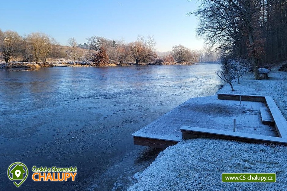 The comfortably furnished cottage with a sauna is located in the picturesque South Bohemian countryside on the left bank of the Lužnice River near the village of Koloděje nad Lužnicí, approximately 3 km from the town of Týn nad Vltavou. There is a private wooden pier with an entrance to the river right in front of the cottage. The stay is ideal for fishing enthusiasts. You can look forward to a quiet environment allowing plenty of rest. The cottage with beautiful views of the surrounding nature and the river offers accommodation (May - October) for 6 people. There is a large attic bedroom: 1x double bed, 1x single bed (90x220 cm), 1x single bed (140x200 cm) and 2x single beds (90x200 cm). Bed linen and storage space are available. For social moments, there is a living room with a fireplace, a sofa bed with a table and a TV with pay channels. Board games are available. The room includes a fully equipped kitchen (hob, oven, microwave, refrigerator, freezer, dishwasher, coffee maker, kettle, toaster and kitchen utensils). The living room opens onto a spacious balcony with seating and beautiful views of the river and the garden. The bathroom includes one bathroom with a bathtub and toilet. There is a washing machine, dryer, towels, hairdryer, cleaning products and toiletries. Heating is provided by a fireplace stove and there is a heating ladder in the bathroom. WIFI internet access is available throughout the property. A grassy garden extends around the cottage, offering plenty of space to relax. Next to the cottage, there is a wooden house in the garden with a roofed pergola with a fireplace, grill and seating. The house also includes a sauna, which can be used for an additional fee. Directly adjacent to the garden is a large wooden pier with parasols and steps into the water. The flowing river invites you to refresh yourself and go fishing. Parking is available directly at the property. Hiking, cycling, swimming, mushroom picking and fishing are possible in the area around the cottage. Nearby there is a golf course, tennis courts and bowling. Swimming options include: swimming pool Týn nad Vltavou, Kořensko reservoir, Nový Dvůr - Vltava swimming pool, Radětice - Cihelna swimming pool, Bechyně swimming pool, Písek swimming pool, Hluboká nad Vltavou swimming pool, etc. For trips in the area, Mitrowicz Castle in Koloděje nad Lužnicí, Kořensko reservoir, Týn nad Vltavou - underground passages, puppet museum, revolving auditorium, confluence of Lužnice and Vltava, Bechyně Castle, Hluboká nad Vltavou Castle or the historical centers of Písek and České Budějovice. We look forward to seeing you.