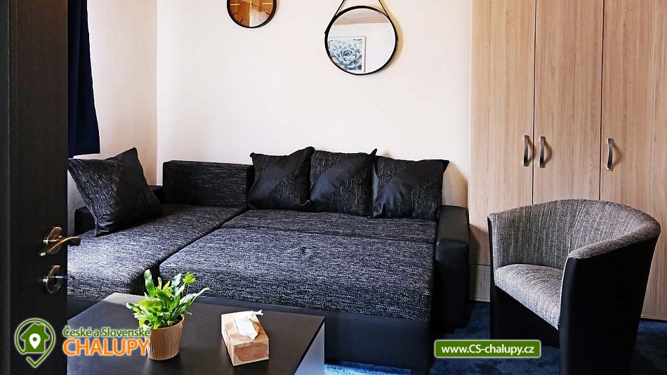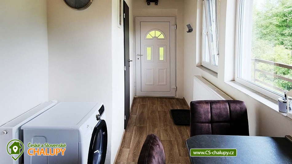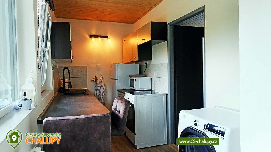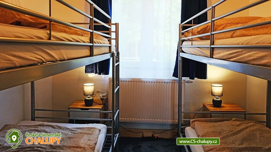 Cottage with a stone sauna by the forest near the Hracholuská dam in West Bohemia. Cottage by the New Pond has a capacity of up to 6 people. Swimming, mushroom picking and cycling trips are possible in the surrounding area. DESCRIPTION: There is a sofa for 2 people in the living room, 4 beds are available in the bedroom (2 bunk beds). Bed linen is included in the rental. The cottage offers accommodation for up to 6 people, but due to the size of the space, a maximum of 4 people is more optimal. There is a fully equipped kitchen. The water in the property is not intended for direct consumption - it must be boiled before using for drinking or cooking! Kitchen - washing machine with dryer, electric stove with oven, dishwasher, microwave, electric kettle, dishes (pots, pans, baking sheets, glasses, mugs, plates, bowls, bowls, cutlery, knives, whisks, grilling utensils). Comfortable facilities - shower, toilet, equipped kitchen, living room and bedroom. Bathroom facilities - Shower, toilet, bath mat, towels, toilet paper, soap. Heating - Heat pump, in the living room there is also the possibility of heating in a fireplace stove (wood available). Spacious terrace with seating furniture and a grill. On the ground floor of the cottage there is a stone sauna with lava stones. In the garden there is a fireplace and a children's sandbox. Access via asphalt road, the last 100m to the cottage is a maintained forest path. The cottage is completely fenced, parking on the property. SURROUNDINGS: Manětín Castle (approx. 13 km), Švamberk Castle Ruins - Krasíkov (approx. 16 km), Gutštejn Castle Ruins (approx. 8 km), Luhov Castle (approx. 10 km), Bezdružice Castle + Synagogue (approx. 20 km), Krkavec Lookout Tower (approx. 16 km), Farmapark u Toma (Ledce, approx. 16 km), Hracholuská Dam (approx. 20 km). Pilsen (approx. 26 km to the city center) - St. Bartholomew's Cathedral, Historical Underground of Pilsen, Great Synagogue, Pilsen Lager and Brewery Museum, Zoological and Botanical Garden of Pilsen + Dino Park, Techmania Science Center + Planetarium, AreaD (children's playroom), Slovany Swimming Pool, Lochotín Swimming Pool, escape games Pilsen. We look forward to seeing you there.