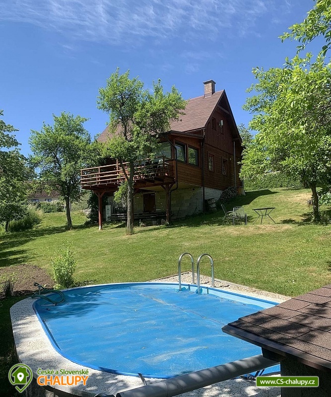 Cottage with a terrace and swimming pool on the border of three recreational areas - Bohemian Paradise, Giant Mountains and the neighboring Jizera Mountains. The cozy wooden cottage is located in the village of Bozkov near the towns of Semily and Železný Brod. This ideal location offers plenty of opportunities for year-round tourism and sports activities. The village includes the famous Bozkov dolomite caves with the largest underground lake in Bohemia and the Baroque pilgrimage church of the Virgin Mary from the 17th century. The cottage provides accommodation for 7 people. There is a double ground floor bedroom (1 double bed), a four-bed attic bedroom (1 double bed and 2 single beds) and 1 extra bed in the form of a sofa bed in the living area. A cot is available for rent. On the ground floor, you can spend time together in the common room with a fireplace, sofa, TV, dining table and fully equipped kitchen (electric oven, microwave, grill, kettle, dishwasher and refrigerator). There is a cloakroom in the hallway. The sanitary facilities include one bathroom with a shower, sink, mirror and toilet on the ground floor and one separate toilet in the attic with a sink and mirror. Bed linen and towels are available for rent. There is a washing machine. Heating is provided by a fireplace, electric underfloor heating and infrared panels. Firewood is included in the price of the stay. There is a wifi internet connection throughout the property. Outside, the ground floor bedroom is connected to a hanging terrace with garden furniture and a grill. In the attic part, you can sit on the balcony and enjoy the views of the natural landscape. Around the cottage there is a well-kept grassy garden with a fireplace and seating. In warm weather, the 5x3 m outdoor pool will refresh you. There is a trampoline. The entire plot is fenced. Parking is possible directly at the building. There are 2 parking spaces. In the vicinity of the building, there is the possibility of hiking, cycling, swimming, mushroom picking, fishing, skiing and cross-country skiing. There are tennis courts, a golf course and a boat and raft rental nearby. The village has a sports complex where you can play ball sports (five-a-side football, volleyball, football, tennis, etc.). Swimming options include: Bumbálka Jesenny swimming pool, Chuchelna swimming pool, Železný Brod swimming pool, Zlatá Olešnice swimming pool, Mříčná swimming pool, Jilemnice swimming pool, etc. There are nearby ski resorts and lifts: Nad Nádražím - Semily, Kozákov, Šachty Vysoké nad Jizerou and others. The beautiful natural scenery in the Jizera and Kamenice valleys, the Palacký trail, the Rieger trail, the Běliště Museum, Malá Skála, Jilemnice Castle, the Museum of the Bohemian Paradise in Turnov, Liberec - ZOO, Botanical Garden, IQ Landia, the baroque Kuks castle or the Dvůr Králové nad Labem Zoo and Safari Zoo are all attractive for trips in the area. We look forward to seeing you there.
