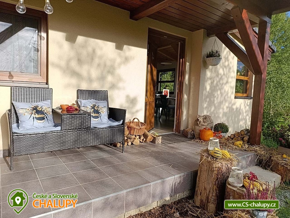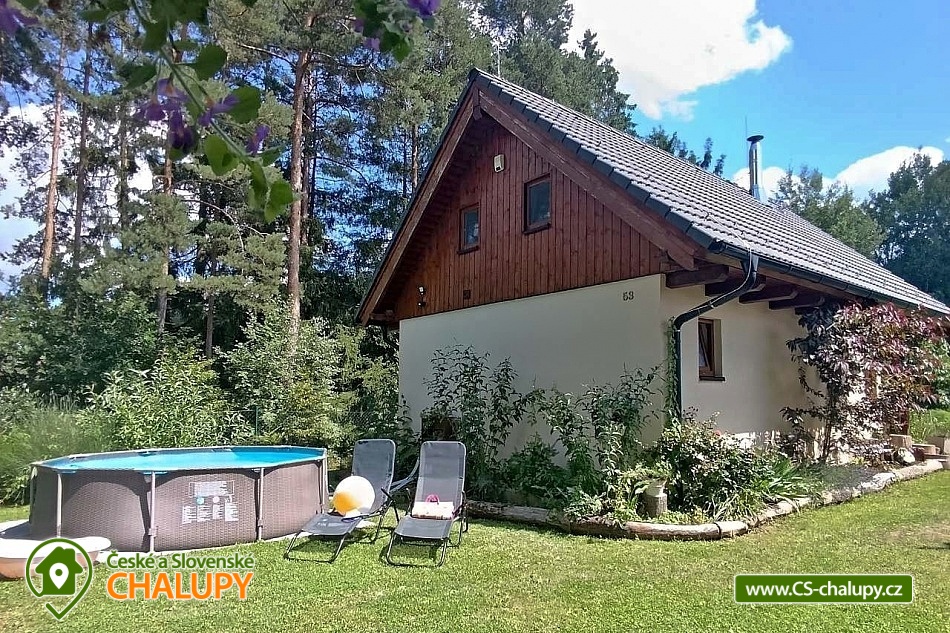 Rental of a cottage with a swimming pool Lhota - Mladošovice. Year-round rental of a cottage by a pond with a capacity of up to 8 people. Since this is the last cottage in the cottage area, there is maximum privacy. The view from the windows and terrace offers you a meadow, forests and the Slepičník pond. After opening the front door, you will enter a sunny room with a wooden dining table. In this room you will also find a library, equipped with interesting titles to read. From the dining room we continue to the living room with a fireplace. The living room is also air conditioned. Right when you enter the living room, you will see a coffee table and a comfortable couch. And for children and adults there is a television, with an active account on Netflix, Voyo or Youtube. The kitchen is equipped with basic dishes, a microwave, an oven with a stove and basic spices (salt, pepper, cumin). There is a kettle and a coffee maker with capsules. On the ground floor of the cottage there is also a toilet with a shower. Possibility to add a potty for children. And a step to the sink. A wooden staircase leads from the living room to the first floor. There are two separate bedrooms and between them a space for children - a children's corner. When you go up the stairs, you will find a built-in wardrobe. In the first bedroom there is a double bed 180 x 200 cm and a lower bed more suitable for children 120 x 200 cm. In the second bedroom there is also a double bed 180 x 200 cm and two separate beds 90 x 180 cm. The beds are equipped with foam mattresses and completely prepared for your rest. The rooms have lockers for clothes and personal belongings. When you arrive at "Čmelák" you will park on the fenced garden plot, where at first glance you will see a trampoline for children, a swimming pool, a woodshed with wood and a lockable workshop where you can lock your bikes and other things. The workshop is connected to a pergola with seating and a grill, which will provide you with maximum privacy and peace. In the garden there is a sandbox for children and a small pond with fish and frogs. The garden is planted with butterfly bushes, lavender and herbs. There is an edible part of the garden. The location allows for a variety of entertainment options. From cycling to walking with children, exploring, sightseeing or swimming. In the immediate vicinity there is a forest that you can walk along the paths, or ride the marked bike paths. We look forward to seeing you with us.
