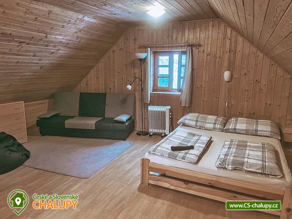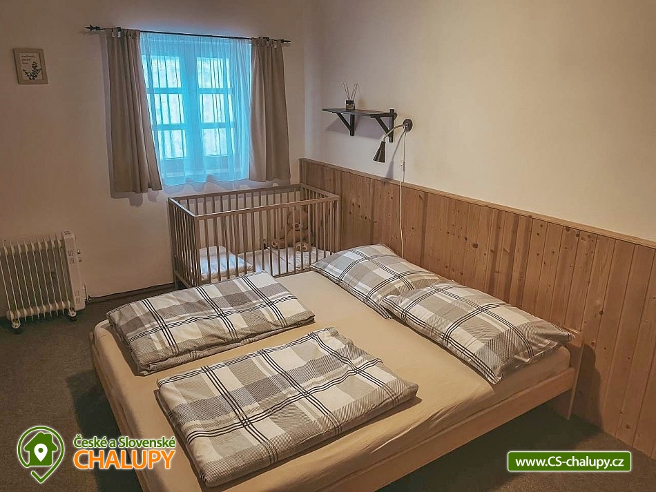 Chata U Mě is located in the village of Malá Morávka in the beautiful nature of the Jeseníky PLA. Close proximity (approx. 600 m) to the Ski area, Funpark and Bikepark Kopřivná is an advantage all year round. Chata U Mě offers accommodation for 10 people in three bedrooms. On the ground floor there is one four-bed bedroom (1x double bed and 1x bunk bed) and one double bedroom (1x double bed) with a cot. In the attic there is a third bedroom with four beds (1x double bed and 2x single beds). This bedroom is equipped with a TV and sofa and has a private bathroom with shower and toilet. Shared moments can be spent on the ground floor in the common room with fireplace, sitting area, TV and fully equipped kitchenette (dishes, stove, oven, fridge, microwave oven, sandwich maker, kettle, Dolce Gusto coffee machine - without capsules, robotic whisk and high chair . Hand soap, a tea towel, a jar, a sponge for dishes, 2 pieces of toilet paper and basic cleaning products are available to guests as regards hygiene needs. Bed linen can be rented for a fee, towels must be brought with you. Sanitary facilities include two bathrooms with showers corner and toilet, one is on the ground floor and the other in the attic. Heating is provided by electric heating throughout the cottage and a fireplace stove. WiFi internet connection is available throughout the property. In the backyard of the cottage, you can sit in a covered pergola with a seating area and a barbecue. For a sandpit and toys are available for children. You can park right next to the building. There are tennis courts nearby. The Kopřivná recreation center includes tubing, scooters, buggies, paintball, trampolines, a bouncy castle, climbing walls, beach volleyball and a wellness center (saunas, whirlpools , Kneipp walkway and outdoor pools). Other swimming options include, for example: Karlova Studánka pool, Andělská Hora pond, Rýmařov - Aquacentrum Slunce, Edrovický pond, Bruntál swimming pool, Břidličná pool, Vrbno pod Pradědem - ponds, Tvrdkov pond, etc. In winter, nearby ski resorts are available : Kopřivná - Malá Morávka, Myšák - Karlov pod Pradědem, Karlov, Pawlin - Karlov pod Pradědem, Čertova hora, Klobouk - Karlov and others. Karlova Studánka spa, Švýcarna mountain hut, Jelení studánka, nature reserve Praděd and the valley of the Bílá Opava river with beautiful waterfalls, Na Pomezí and Na Špičáku caves, Sovinec Castle or Bruntál Castle beckon for trips in the area. We look forward to seeing you here.