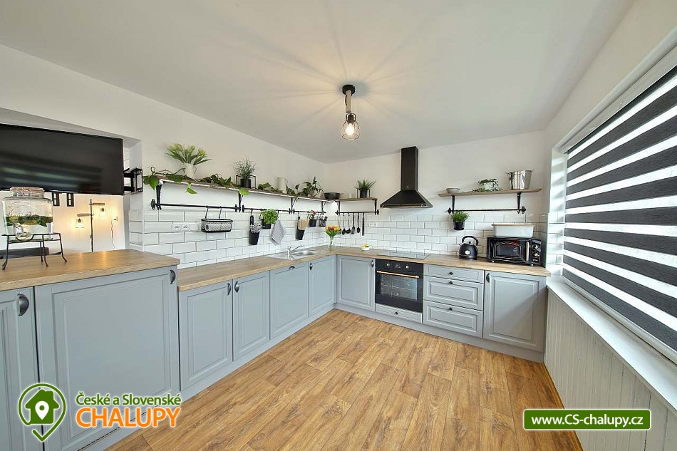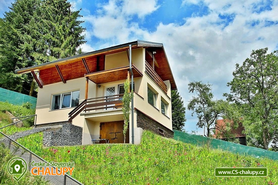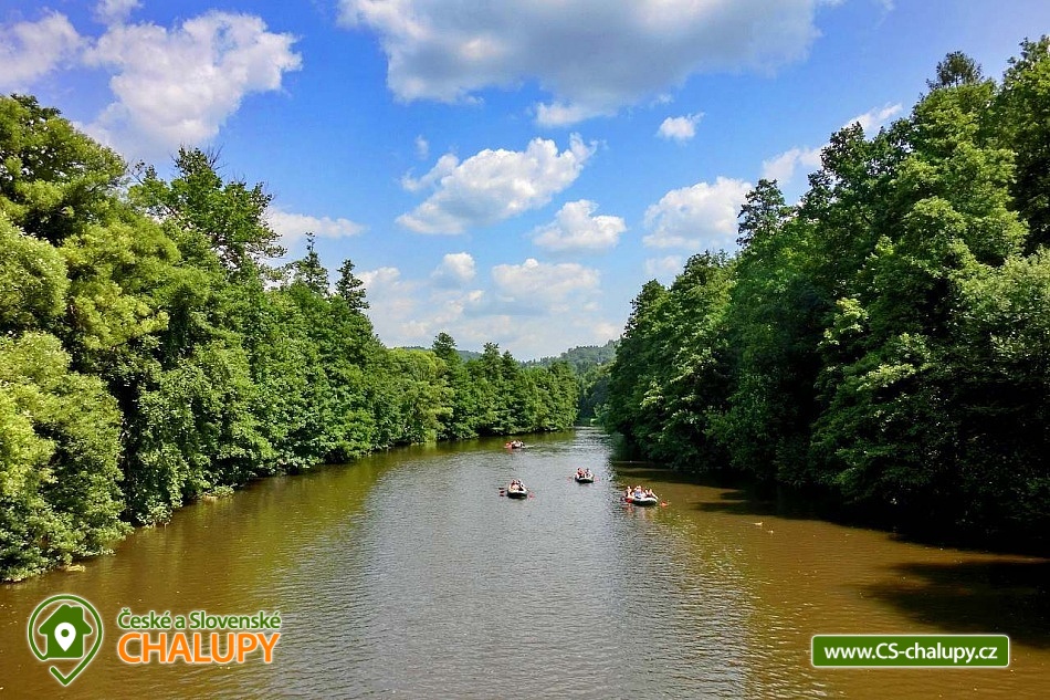 Chata u zříceniny hradu Vranov - Pantheon - obec Malá Skála - CHKO Český ráj s krásným výhledem na Suché skály a údolí řeky Jizery. Chata pro 5 osob (v létě kapacita až 9 lůžek) v klidné části obce Malá Skála, kousek od zámku. V chatě je plně vybavená kuchyně s myčkou, lednicí, mrazákem, mikrovlnnou troubou, rychlovarnou konvicí, kávovarem, sodastreamem, elektrickou varnou deskou a elektrickou troubou. Obývací pokoj je propojený s kuchyní s výhledem na Suché skály, údolí řeky Jizery a přilehlý Pantheon. V patře je ložnice pro dvě osoby, ložnice pro tři osoby a velká zastřešená terasa. Ubytování vhodné pro 3 dospělé osoby a dvě děti (spaní na palandě). V letním období jsou možné navíc 4 přistýlky v šupičce (zahradní chatka). Pouze v letním teplém období nebo pro otužilce - šupičku totiž nelze nijak vytopit. V chatě je koupelna s WC a sprchovým koutem, k dispozici je i pračka. Pokud se k nám chystáte v chladnějším období roku, myslete na to, že topit si budete muset sami. V kamnech v obývacím pokoji. Dřevo vám dodáme a je ho dost. Autem budete parkovat na prostorném parkovišti na pozemku. Kola vám ubytujeme v garáži. Ubytování je vhodné pro turisty i lenochy, vodáky i horolezce, rybáře i houbaře, motorkáře i karavanisty. V blízkosti je půjčovna kol, lodí, koloběžek, koupání přímo v řece, cyklostezka Greenway Jizera z Dolánek u Turnova do Malé Skály a Líšného, zřícenina hradu Vranov - Pantheon, zřícenina hradu Potštejn, hrad Frýdštejn, zámek Sychrov, zámek Hrubý Rohozec, Žlutá plovárna nebo například lanové centrum. Těšíme se na Vás u nás.