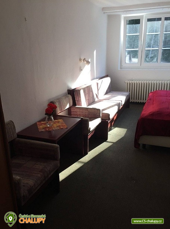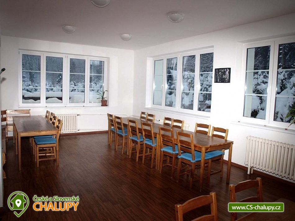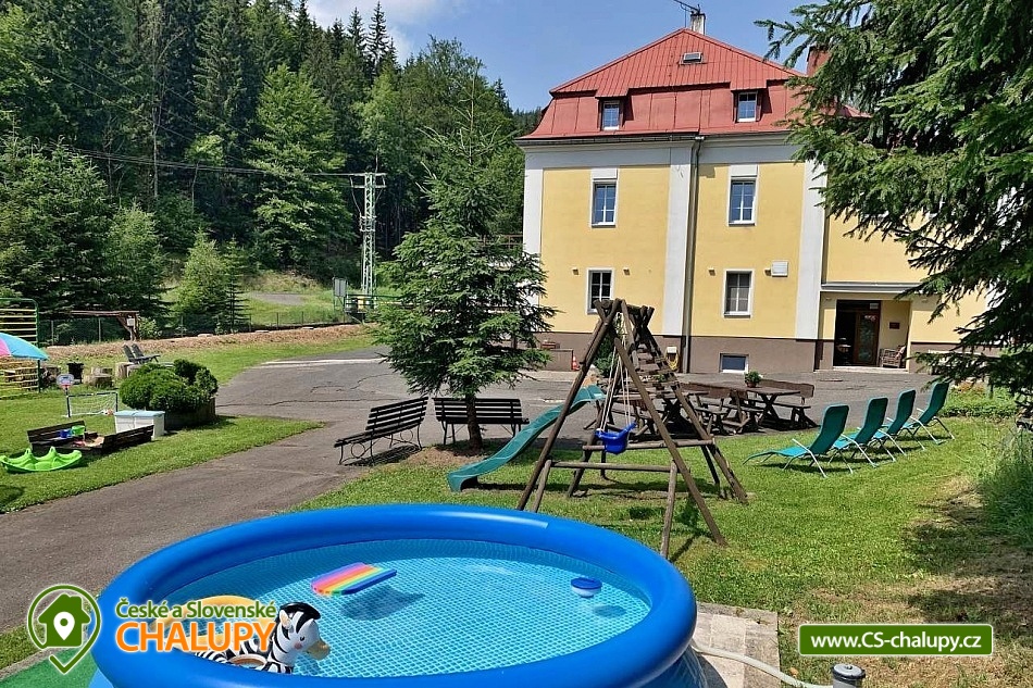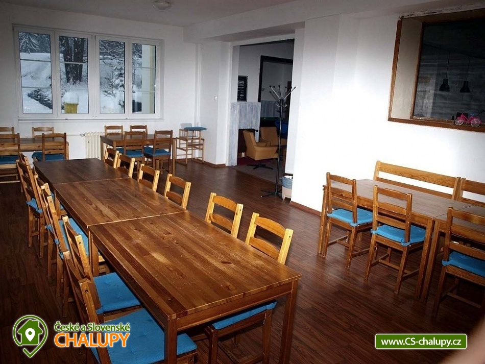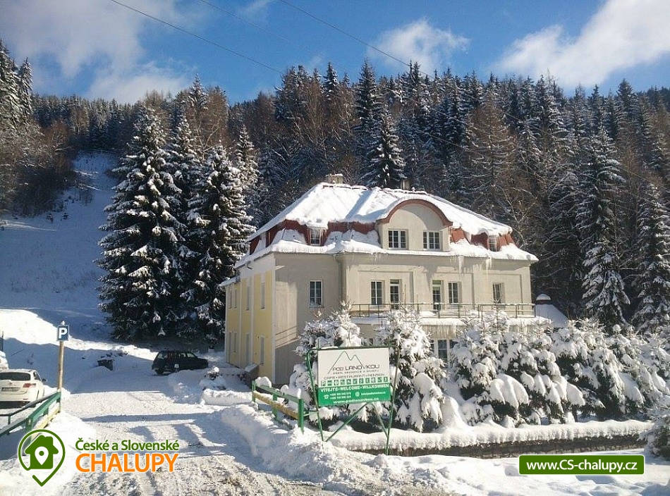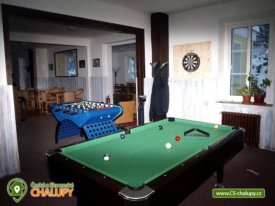 Cottage Pod Lanovkou - accommodation in the mountains Jáchymov - Ore Mountains. The cottage for up to 38 people has 12 bedrooms and is always rented to 1 group of private clients. The cottage is an ideal place for lovers of sports, hiking, skiing and cycling. It is located in a quiet and beautiful valley at the foot of Klínovec, the highest mountain in the Ore Mountains, on the banks of the Klínovecký stream, with the possibility of year-round use. On the ground floor there are spacious living rooms, fireplace, equipped kitchen (dishwasher, 4 large refrigerators, freezer, gas stove with electric oven, large professional gas stove. Electric grill, dishes, pots, etc.), bar, kettle and coffee maker for drip coffee. There is also a games room: billiards, football, board games and a ping - pong table. Available ski / bike room 25m2, restaurant, bar and game room 120m2. Bedrooms and rooms - 12 rooms with 2 - 4 beds. The cottage has 4 rooms with private bathroom / toilet, sink, shower. Furthermore, 4x family apartment / 2 rooms / with shared bathroom / toilet, sink, shower - ideal especially for a larger family with children. Sanitary facilities: 9x toilet, of which one barrier-free toilet on the ground floor, 8x shower. Central heating - provided by the caretaker. Asphalt driveway, maintained and passable even in winter. Parking by the accommodation facility. Self-catering, possibility to cook in a fully equipped spacious kitchen. Due to its location and facilities, the cottage is an ideal place for families with children, family celebrations, health stays, for corporate events or group holidays. The Jáchymov radon spa or the lower station of the Klínovec Ski Lift are only a 5-minute drive or walk away. For hikers as well as for lovers of Nordic Walking, there are many interesting places in the area and many ideal routes. The region also offers the possibility of trips by car or train to the attractions of Jáchymov and the Karlovy Vary region. In the vicinity of our building you will find a variety of skiing opportunities. Approximately 800 m above the building is the lower station of the cable car leading to the top of Klínovec. In Jáchymov you will find 3 lifts suitable for beginner skiers. There are a number of other ski areas within reach of several kilometers, including Fichtelberg in Germany. One of the great advantages of the Ore Mountains are very good prices for skiing and high quality slopes. This makes the cottage an ideal place for various ski camps and ski training, as well as an individual family holiday for experienced and beginner skiers.