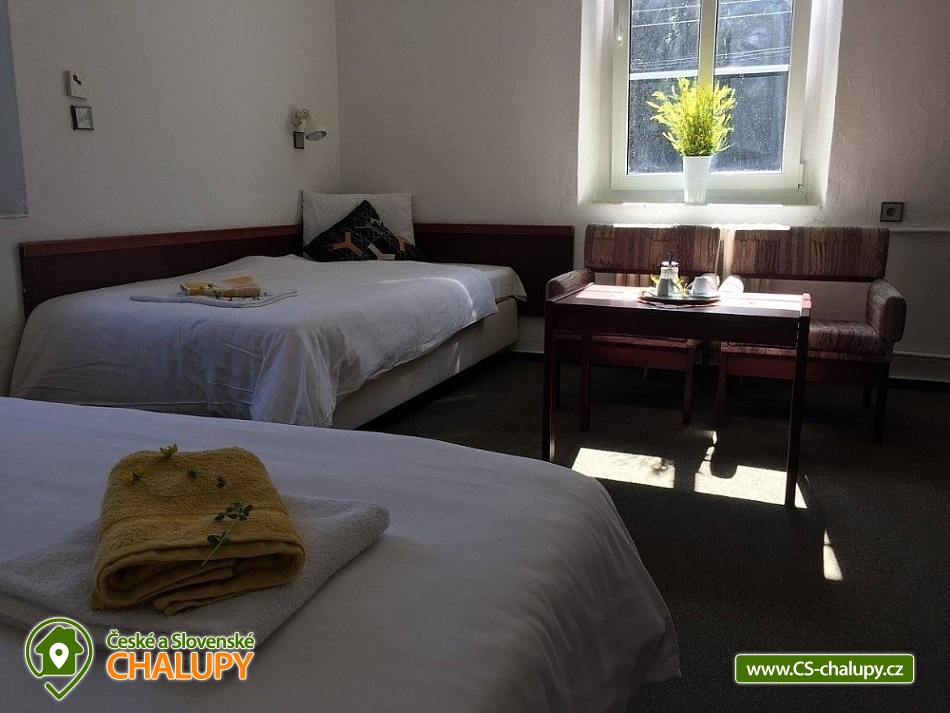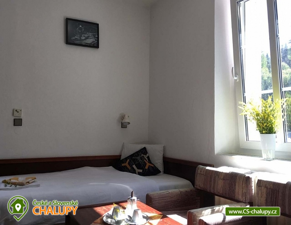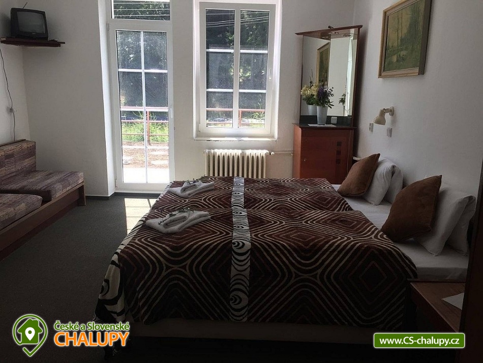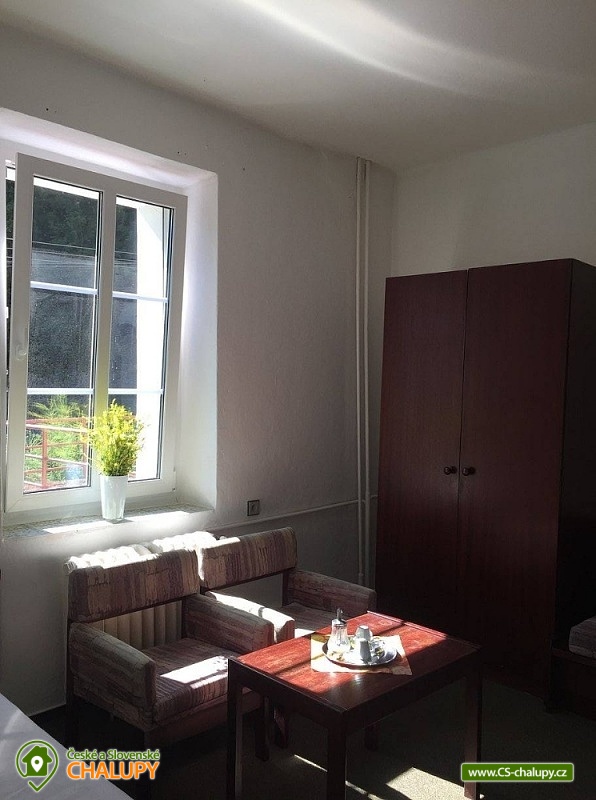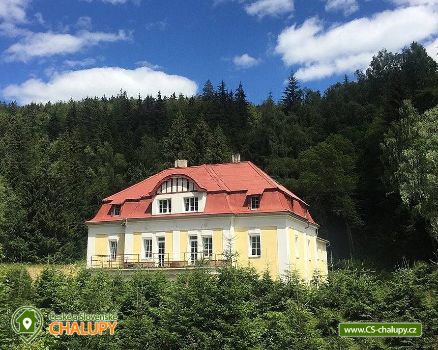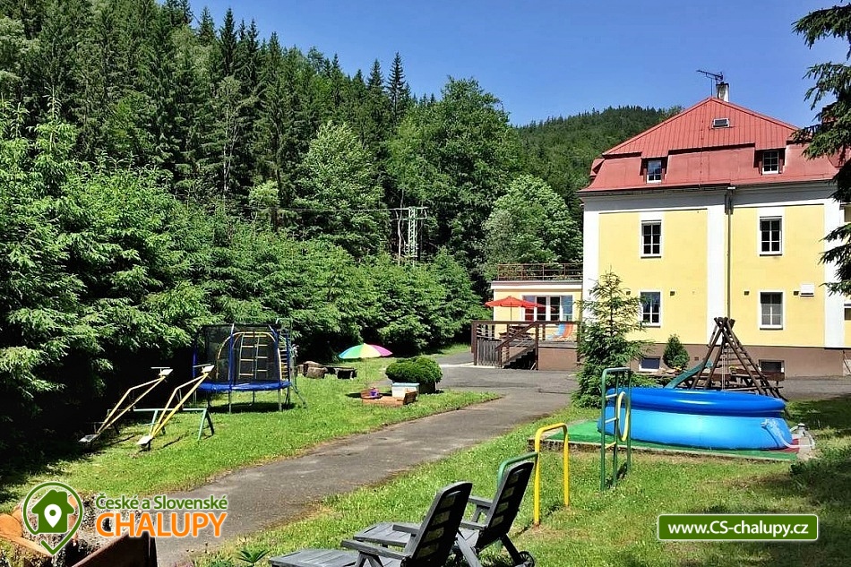 Cottage Pod Lanovkou - accommodation in the mountains Jáchymov - Ore Mountains. The cottage for up to 38 people has 12 bedrooms and is always rented to 1 group of private clients. The cottage is an ideal place for lovers of sports, hiking, skiing and cycling. It is located in a quiet and beautiful valley at the foot of Klínovec, the highest mountain in the Ore Mountains, on the banks of the Klínovecký stream, with the possibility of year-round use. On the ground floor there are spacious living rooms, fireplace, equipped kitchen (dishwasher, 4 large refrigerators, freezer, gas stove with electric oven, large professional gas stove. Electric grill, dishes, pots, etc.), bar, kettle and coffee maker for drip coffee. There is also a games room: billiards, football, board games and a ping - pong table. Available ski / bike room 25m2, restaurant, bar and game room 120m2. Bedrooms and rooms - 12 rooms with 2 - 4 beds. The cottage has 4 rooms with private bathroom / toilet, sink, shower. Furthermore, 4x family apartment / 2 rooms / with shared bathroom / toilet, sink, shower - ideal especially for a larger family with children. Sanitary facilities: 9x toilet, of which one barrier-free toilet on the ground floor, 8x shower. Central heating - provided by the caretaker. Asphalt driveway, maintained and passable even in winter. Parking by the accommodation facility. Self-catering, possibility to cook in a fully equipped spacious kitchen. Due to its location and facilities, the cottage is an ideal place for families with children, family celebrations, health stays, for corporate events or group holidays. The Jáchymov radon spa or the lower station of the Klínovec Ski Lift are only a 5-minute drive or walk away. For hikers as well as for lovers of Nordic Walking, there are many interesting places in the area and many ideal routes. The region also offers the possibility of trips by car or train to the attractions of Jáchymov and the Karlovy Vary region. In the vicinity of our building you will find a variety of skiing opportunities. Approximately 800 m above the building is the lower station of the cable car leading to the top of Klínovec. In Jáchymov you will find 3 lifts suitable for beginner skiers. There are a number of other ski areas within reach of several kilometers, including Fichtelberg in Germany. One of the great advantages of the Ore Mountains are very good prices for skiing and high quality slopes. This makes the cottage an ideal place for various ski camps and ski training, as well as an individual family holiday for experienced and beginner skiers.