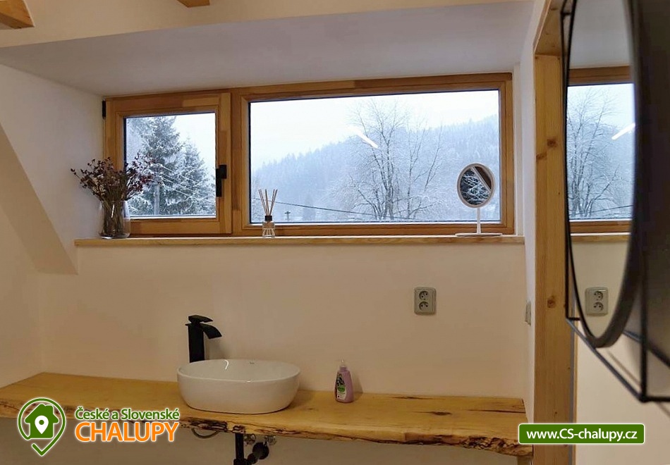 Cottage by the forest - Velké Karlovice - Beskydy is located in the beautiful countryside of the Beskydy Protected Area, in the village of Velké Karlovice. It lies directly on cycling and cross-country skiing trails. There is a golf course and a thermal pool with wellness in the immediate vicinity. The cottage offers accommodation for 7 people in two bedrooms (1 double and 1 triple) and two extra beds on a sofa bed in the living area. Each bedroom has its own entrance to the terrace and a modern bathroom with a sink, shower and toilet. There is also another separate toilet. In the living area you will find a sofa bed, TV, dining table with seating and a fully equipped kitchenette (dishes, kettle, fridge, freezer, induction hob, oven, Nespresso coffee machine and dishwasher). Wi-Fi connection and clothes dryers are available. The building is heated by underfloor heating. Parking is possible under the shelter for 2 cars. The cottage has two terraces, one on the first floor and the other, more spacious, on the ground floor, including seating and a grill. In the area around the cottage you can go hiking, cycling, mushroom picking, cross-country skiing, skiing and golf. Swimming options: Hotel Horal - swimming pool and wellness, aquapark Vodní Svět Velké Karlovice, swimming pool and swimming pool Velké Karlovice. Trip tips: Karlovy Vary Museum, Kulíšková nature trail, Jurkovičova lookout tower, Valaška trail, Gibon amusement park, Wallachian open-air museum - Rožnov pod Radhoštěm, Pustevny with a walk to Radhošť, Kopřivnice - Tatrovka museum, Čeladná - bobsleigh track, Lešná ZOO or Valašské Meziříčí. Ski resorts: Velké Karlovice - Machůzky, Razula, Velké Karlovice - Bambucha, Synot - Kyčerka, LS zona snow Makov - Kasárne, Soláň - Bzové. We look forward to seeing you there.