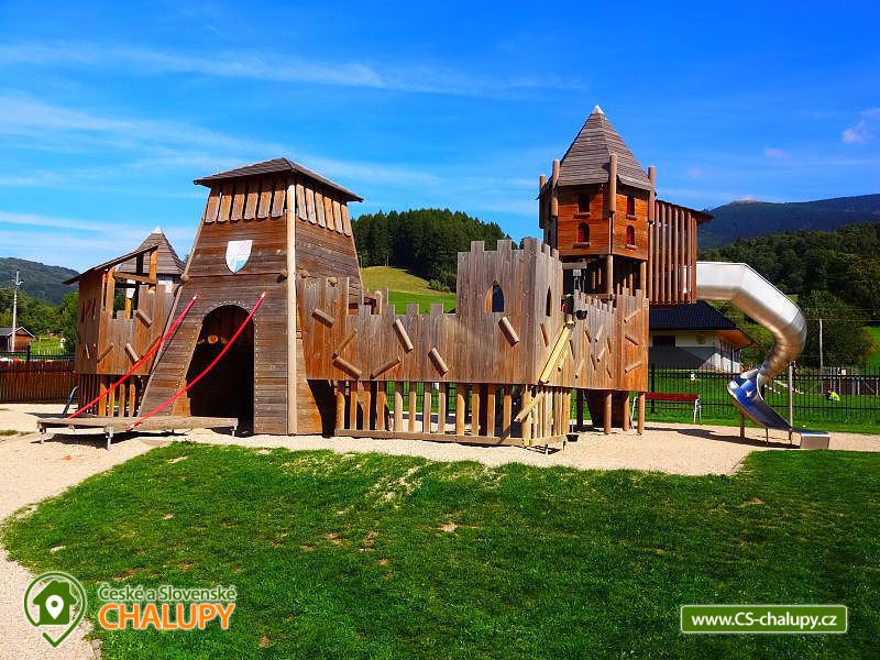 Chata u říčky Desná -nedaleko Termálního parku Velké losiny - Jeseníky. Horská chata se 2 ložnicemi až pro 8 osob, s hernou, pergolou, obývacím pokojem, koupelnou a verandou, je umístěna v klidném prostředí nedaleko lesa a lyžařských vleků, mimo hlavní komunikaci a uprostřed atraktivní části Jeseníků. Z chaty je výhled na pohoří, do údolí a na les. V obci je také krytý bazén s podvodními tryskami a s Whirlpool, vzdálený od chaty 1km nebo termální aquapark s tobogány Velké Losiny 8 km. Vybavení chaty je stylové s celodřevěným obložením a dlažbou. Obývací pokoj s krbovými kamny je spojený s kuchyní a jídelnou, dále jsou zde 2 neprůchozí ložnice: 1x 4 lůžka a 1x 4 lůžka, koupelna se sprchovým koutem, samostatné wc, herna se stolním tenisem a veranda. Majitel v tomto objektu nebydlí a neposkytuje ložní prádlo (peřiny a polštáře tam jsou). Zvlášť se hradí el. energie, dřevo a rekreační poplatky obci. Nedaleko chaty je krytý bazén s protiproudem, masážními tryskami, šíjovým chrličem krční páteře a Whirpool, 6-ti sedačková lanovka s večerním lyžováním, lyžařská škola, pohádkový Koutecký les, naučná stezka Rysí Skála, půjčovna horských kol i elektrokol, lyží a koloběžek, bikepark, Snowpark, restaurace se stravováním, picerie, bowling, horské minikáry, tenisové kurty, podzemní vodní přečerpávací elektrárna Dl. Stráně s prohlídkou vysokohorských vodních nádrží, rozhledna u Medvěda - Kouty u horní stanice lanovky (1.100 m.n.m.) V okolí dále vodopády na Borovém potoce, horské středisko Červenohorské Sedlo (1.030m.n.m.), Velké Losiny: lázně, minigolf, zámek, termální aquapark, ojedinělé muzeum ruční výroby papíru.