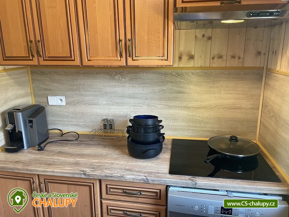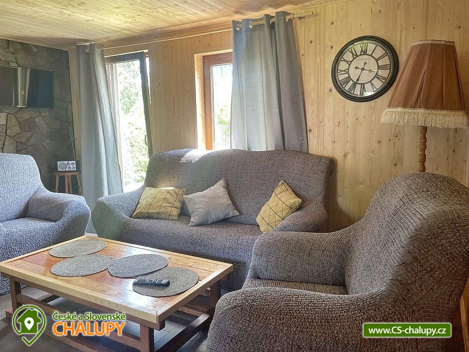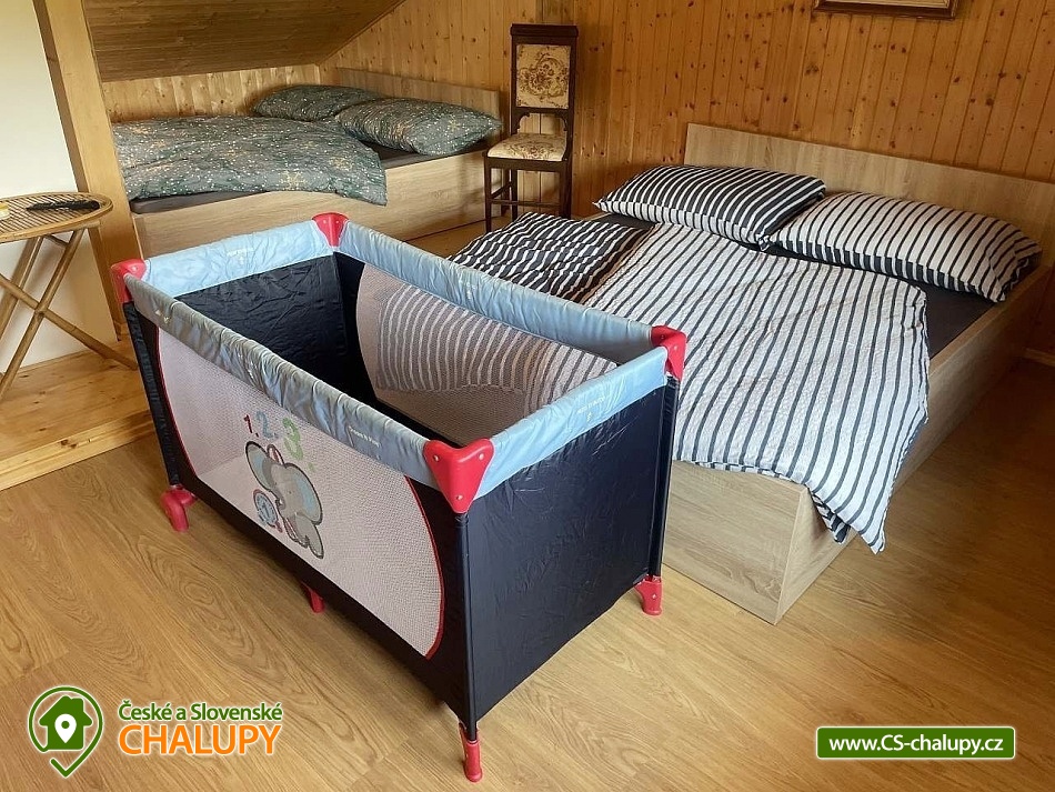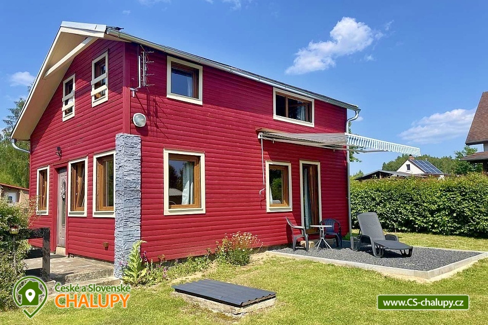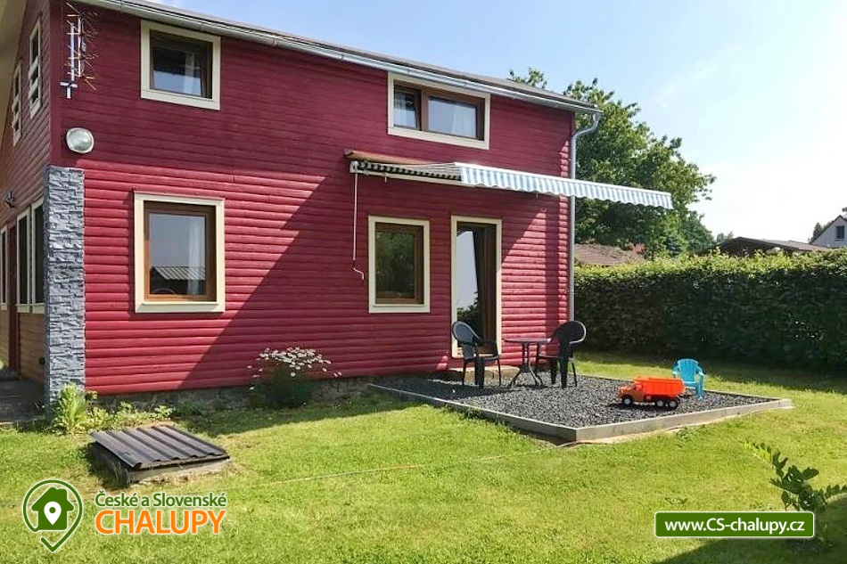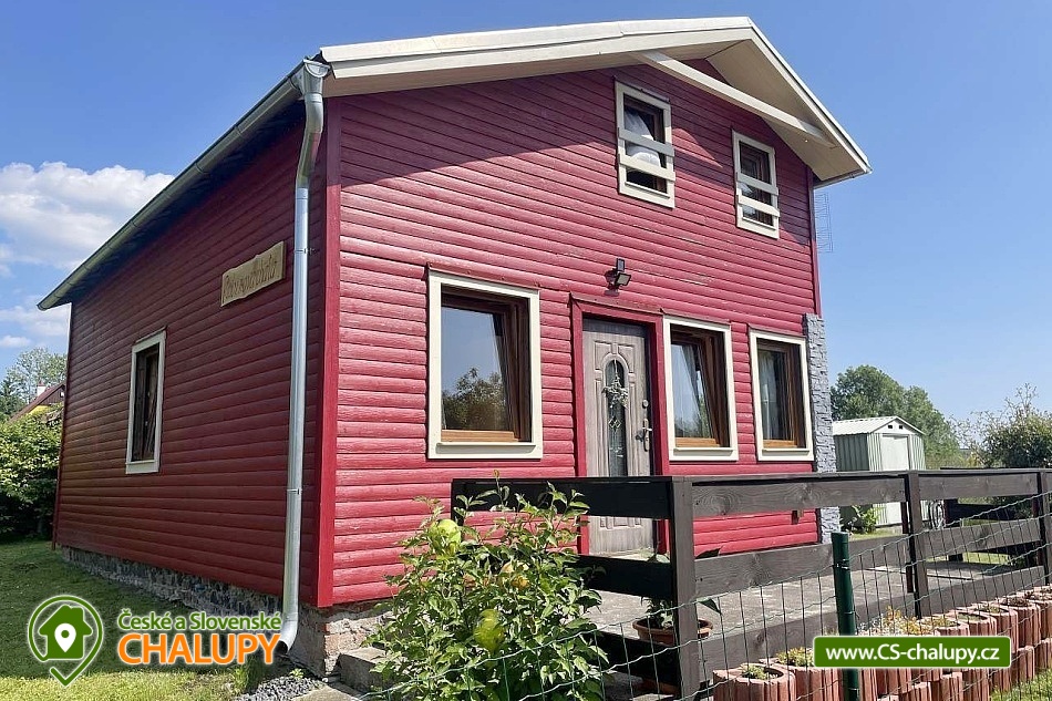 The cottage is located in a quiet area on the outskirts of the town of Rumburk, near the beautiful nature of the Bohemian Switzerland National Park and the Lusatian Mountains Protected Area, not far from the border with Germany. Fishing enthusiasts will be delighted by the close proximity of two ponds, Racek and Tůň, set in a beautiful natural landscape. The cozy cottage is built in a traditional Nordic style, has a wooden facade with stone elements and complete thermal insulation. The interior in all rooms combines wooden paneling with modern elements. You can look forward to outdoor seating and a grassy garden. The cottage offers accommodation for 7 people, including 6 fixed beds in two bedrooms and 1 extra bed in the form of a sofa bed in the living area. Both bedrooms are located on the first floor of the cottage. There is a total of 1 quadruple bedroom with two double beds, a cot, a wardrobe and a TV and 1 double bedroom with one double bed, a chest of drawers for personal belongings and a cot for a small child. On the ground floor, you can spend pleasant moments in the living room with a fireplace, sofa and TV or in the common room with a spacious dining table, TV and access to the terrace. Board games are available for rent. A high chair is available for children and a child safety gate on the stairs for greater safety upstairs. The cottage includes a fully equipped kitchen (stove, refrigerator, microwave, toaster, ceramic hob, kettle, toaster, coffee maker, all dishes, pots and dishwasher). WIFI internet connection is available throughout the building. The sanitary facilities include one bathroom with a shower, sink and toilet on the ground floor and one separate toilet. Heating is provided by a wood-burning stove, which heats the entire area of the cottage. You can also heat it with an electric radiator. Around the cottage there is a fenced, grassy, well-kept garden ideal for relaxation, children's games and outdoor activities. You can sit on the terrace covered with an awning. There is a grill and a fireplace. Children will appreciate the swings, slide and sandbox with toys. There is a storage room for bicycles and other sports equipment. Upon agreement, it is possible to rent 2 mountain bikes and outdoor games - badminton, frisbee and petanque. In front of the cottage there is a parking space for three cars, one of which is covered. In the vicinity of the building there is the possibility of hiking, cycling, swimming, mushroom picking, in-line skating, ice skating, skiing, snowboarding and cross-country skiing. Nearby there are tennis courts, bowling and a riding stable. Swimming options include: Rumburk Swimming Pool, Kyjovská Dam, Mikulášovice Natural Swimming Pool, Děčín Aquapark, Varnsdorf Swimming Pool, etc. In winter, the Rumburk ski lift and the Horní Podluží, Jedlová or Mezičky ski resorts are available, which offer downhill and cross-country trails. The Holy Trinity Column, the Loreto Chapel and the Church of St. Bartholomew are located right in the town of Rumburk. The Dymník lookout tower and resort with fotbagolf and the unique stone structure Tree of Life, the Jedlová Hora Lookout Tower, the ruins of Tolštejn Castle, Luž Mountain, Kyjovské Valley, Chřibské Waterfalls, Pravčická Gate, the Gorges of the Kamenice River or beyond the borders of Germany - the Bastei Rock Bridge, Lilienstein Table Mountain, Königstein Fortress or the city of Zittau. We look forward to seeing you there.