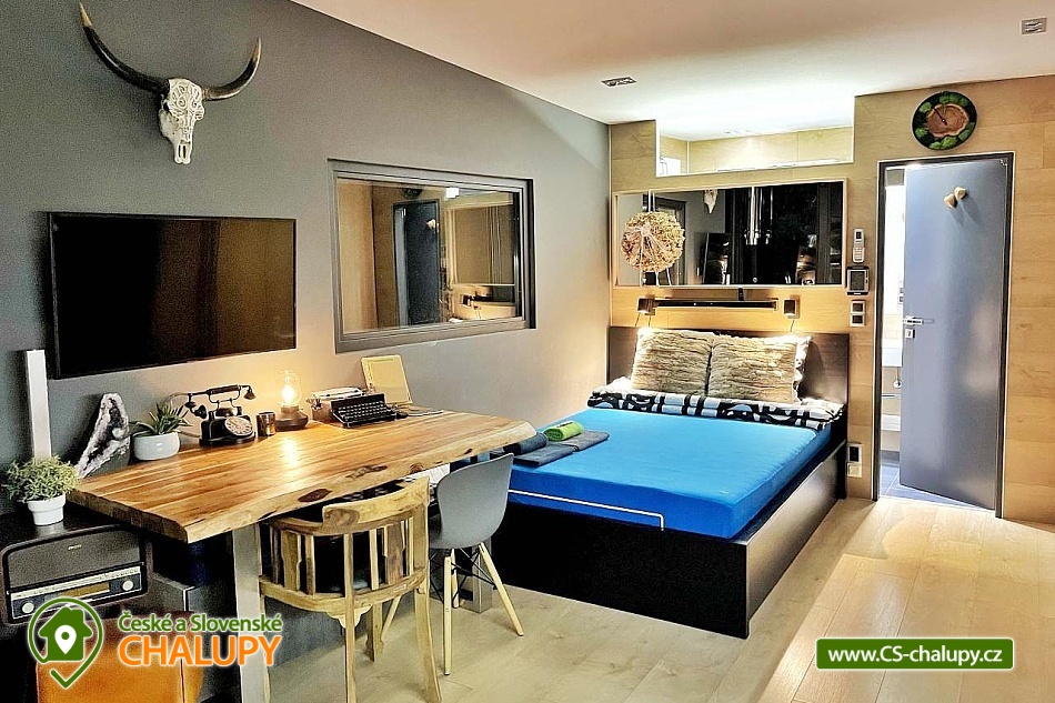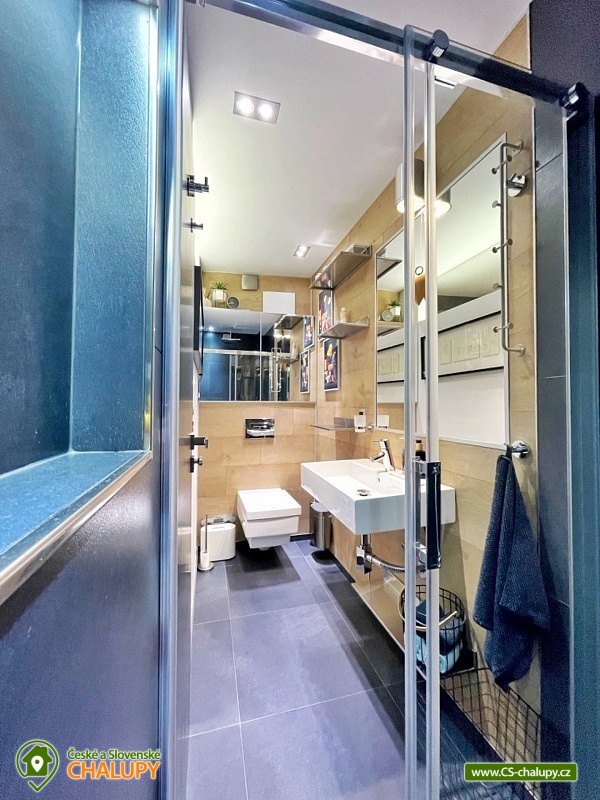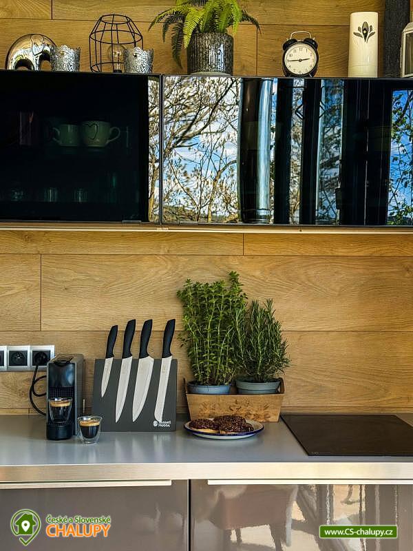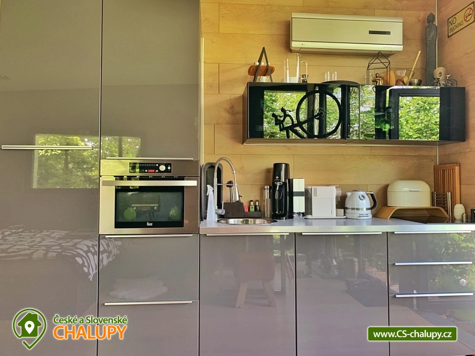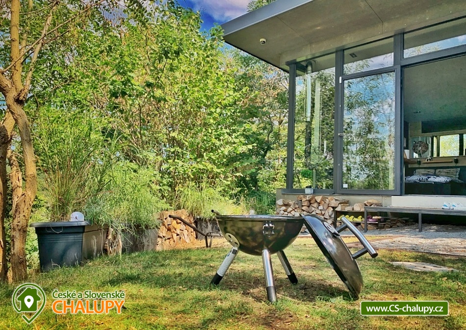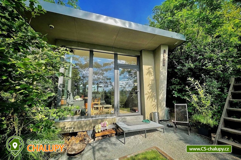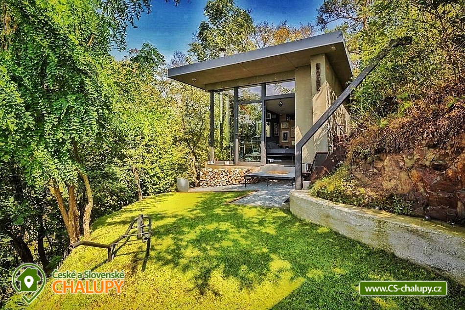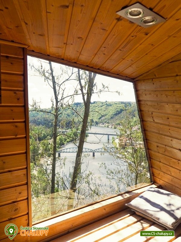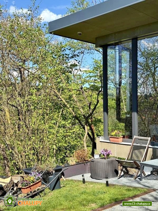 Davle Cottage with sauna is located in the village of the same name, located at the confluence of the Vltava and Sázava rivers, just 22 km south of the center of Prague and just 10 km from the Slapy Dam. This is an architecturally unique recreational object located in beautiful nature on a slope overlooking the river. The cottage offers accommodation for 2 people, there is 1 double bed. The heart of the cottage is a large living room with a bedroom, kitchen, panoramic windows and access to an outdoor terrace and garden with a garden house with a sauna. The room includes a spacious double bed, a large dining table that also serves as a workplace, a fully equipped kitchen with a Nespresso coffee machine, an electric kettle, a fridge with freezer, an oven with a microwave, a hob, a washing machine, a dryer and spacious built-in wardrobes. There is also a TV (with O2 TV), reliable WIFI connection and a professional weather station. The building is secured by a camera system and a security system. The sanitary facilities include one separate bathroom with a shower and toilet. Heating is provided by underfloor heating throughout the building. Air conditioning is also available. The cottage has electricity and drinking water. There is a pleasant seating area outside the cottage. There is a charcoal grill, an electric grill and a standard fireplace for roasting bacon. You must bring your own wood and coal. The garden house hides a pleasant sauna and additional storage space, e.g. for bicycles or tools. Parking is possible near the building (approx. 100 steps from the building) in a private parking space. Hiking, cycling, swimming, fishing and mushroom picking are possible in the vicinity of the building. There are also tennis courts, a golf course, disc golf, a bike park and a boat rental nearby. Swimming options include: Vrané water reservoir, Štěchovice water reservoir, Jez Žampach, Jílové u Prahy swimming pool, Radotín biotope, Kunratický pond Šeberák, Lhotka biotope, Barrandov aquapark, Slapská dam, Prague - Aquapalace aquapark, etc. For trips in the area, the Nature Trail leading to the geometric center of Bohemia attracts you, which will take you from the park through the center of the town, further across the Old Davel Bridge, around the train station and the local part of Sázava to the gazebo, where you can enjoy a unique view of Davle and the Vltava River valley. Also, a steamboat cruise Davle - Slapy, a steam train - Posázavský Pacific, Jílové gold mines - the adits of St. Joseph and St. Anthony of Padua or the extinct medieval settlement of Sekanka. We look forward to seeing you here.