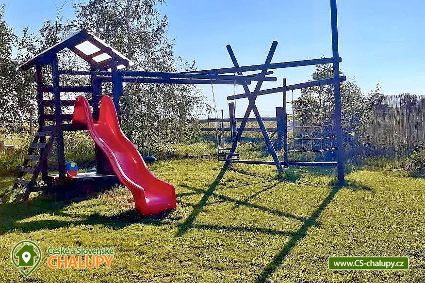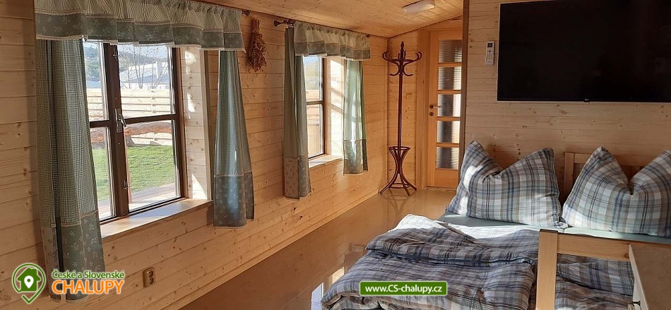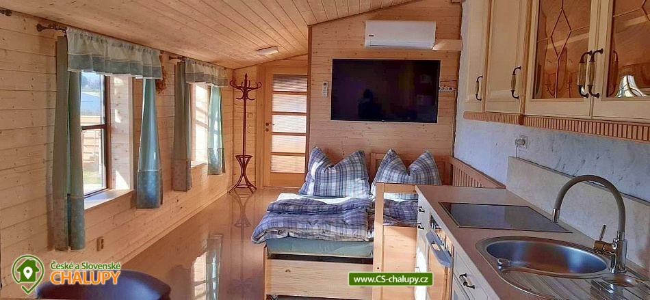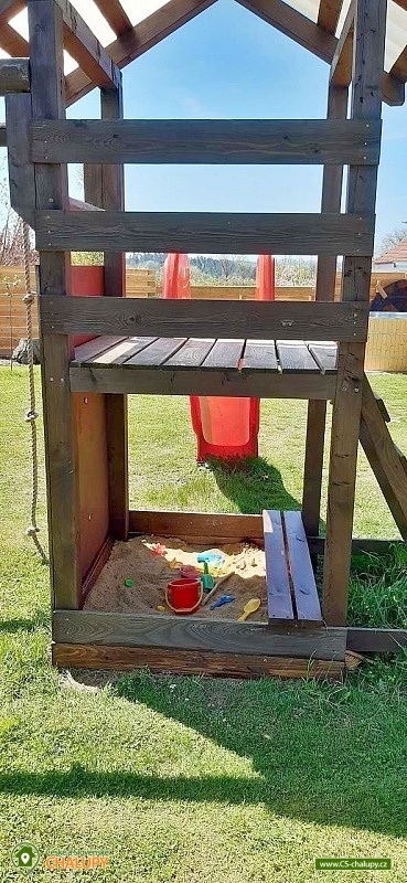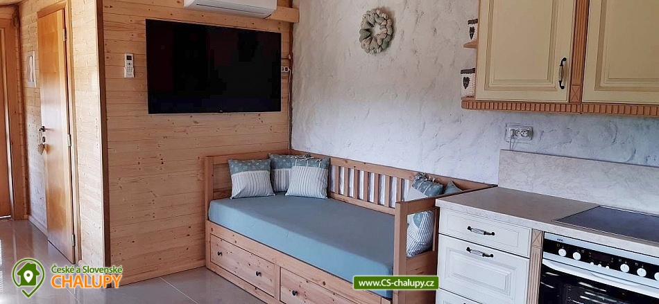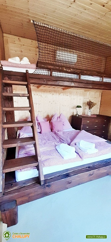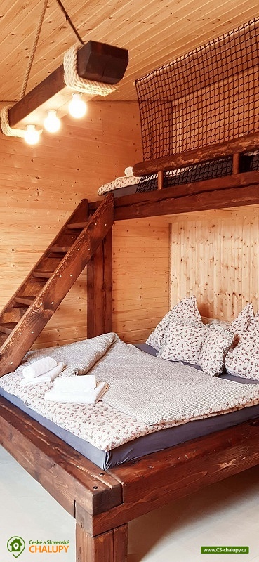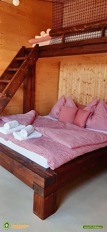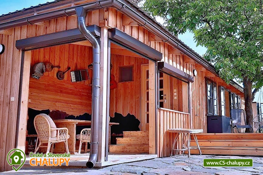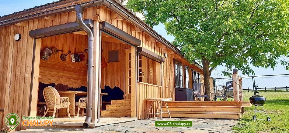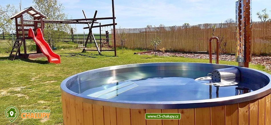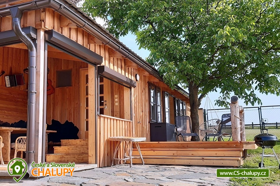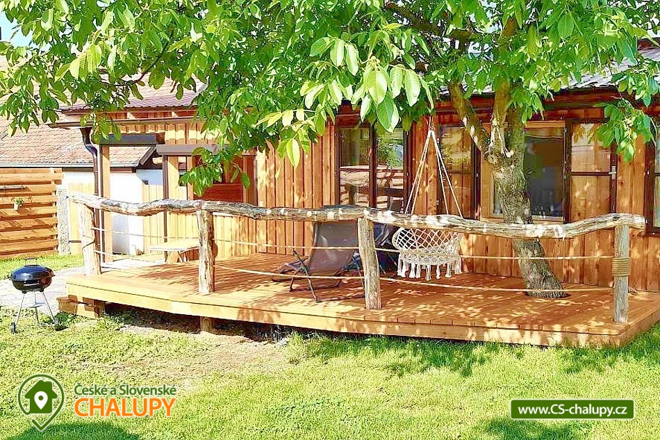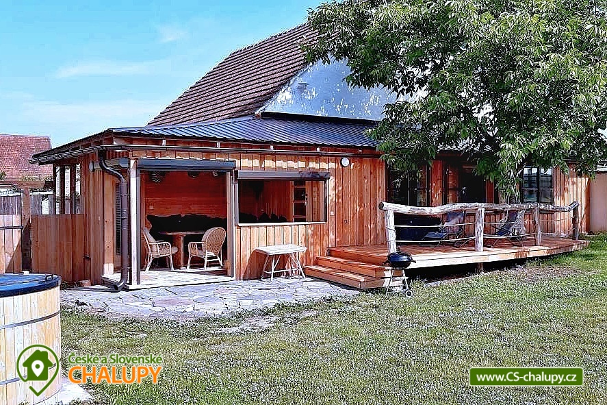 The house under the walnut tree is located in the village of Dešov on the border of the Vysočina region and the South Moravian region, not far from the Vranovské dam. You can look forward to beautiful views of the surrounding beautiful nature or relax on the terrace or in the hot tub. The house under the walnut offers accommodation for 6 people in two bedrooms. Both bedrooms are separate and connected by a roofed terrace, which can be completely closed with blinds in bad weather. In one bedroom there is a double bed, followed by a spacious double bunk bed measuring 90x360 cm. In the second bedroom there is a fold-out bed measuring 160 x 200 cm. The second bedroom includes a dining table, fully equipped kitchen (fridge, freezer, dishwasher, hob, oven, microwave, kettle) and Smart TV. For children, a cot, potty, toilet seat, toys and books can be rented. The sanitary facilities include a shower, sink and toilet. Heating is solved using air conditioning units. WIFI internet connection is available throughout the building. You can sit either in the covered terrace or on the outdoor terrace with a hanging swing and deckchairs. There is a grill and a fire pit. For an additional fee, the bathing barrel can be heated (to a temperature of 38 - 40°C) with the option of a whirlpool, which is pleasant even in cold weather. Children can look forward to climbing frames, a slide and a sandpit. You can park directly at the building. In the vicinity of the house, hiking, cycling, swimming, fishing and mushroom picking are possible. There are tennis courts nearby and a new children's playground about 400 m from the cottage. Swimming options include, for example: Nimpšov swimming pool, Bítovská zátoka, Hrachovec pond, Moravské Budějovice swimming pool, Jemnice Biotop, Vranovská dam, Plichťák dam, Vidlák pond, Jaroměřice nad Rokytnou swimming pool, Dolní Modletický pond, etc. Vranov nad Dyjí, Bítov Castle, Rumburak Lookout and the Red Chapel, Cornštejn Castle Ruins, Jaroměřice nad Rokytnou Castle, Jewish Quarter and Cemetery in Třebíč - UNESCO, St. Prokop's Basilica, Podyjí National Park, Telč and others. We look forward to seeing you here.