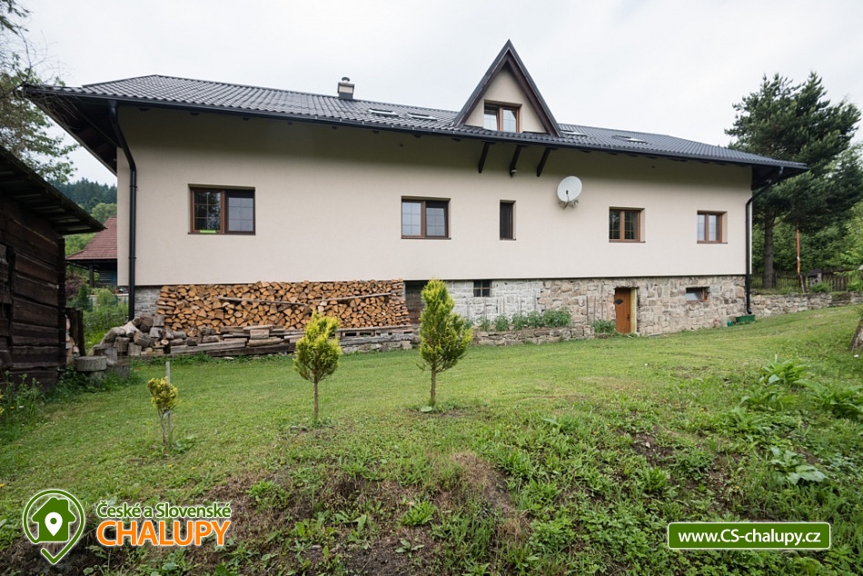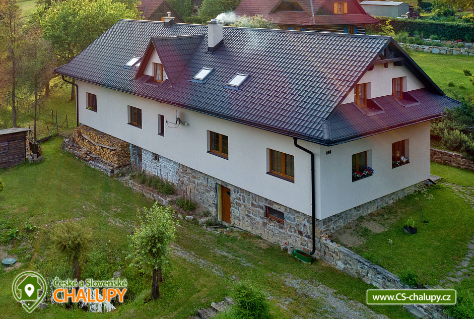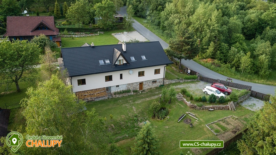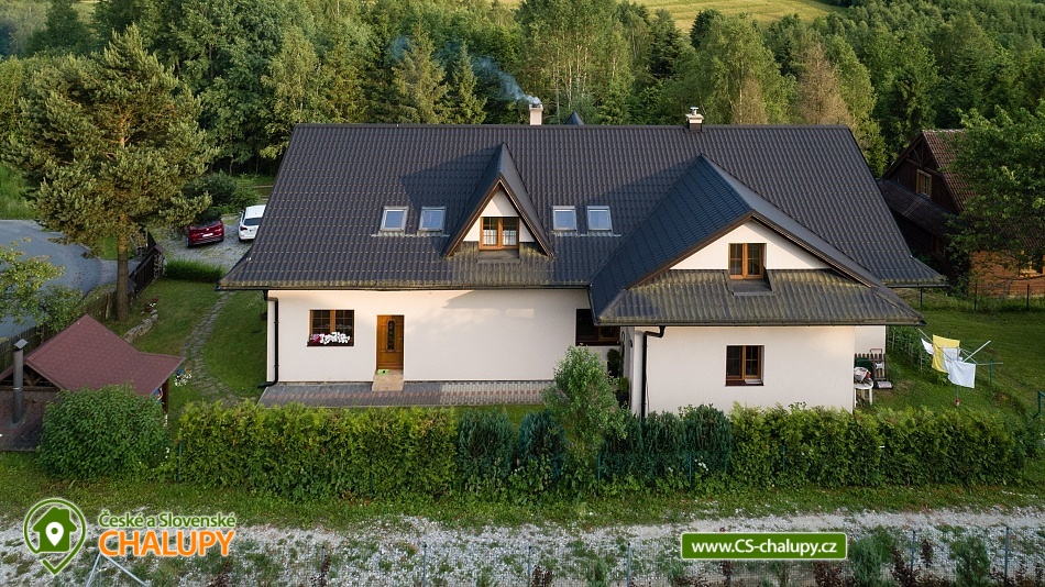 Accommodation Eva - apartment cottage Oščadnica - Snowparadise Veľká Rača. Accommodation Eva is located on the outskirts of the village of Oščadnica near the forest. There are 5 separately rented rooms for up to 13 people (including 1 extra bed). Social facilities include 5 bathrooms and 5 toilets (for each room separately). On the ground floor there is a large common room with a comfortable couch, satellite TV, CD/DVD player, video, X-Box, children's corner with toys and various board games. The accommodation floor consists of five separate 2-bed and 3-bed rooms, a smaller social room and a common fully equipped kitchen. The kitchen has an electric stove with oven, microwave oven, kettle, coffee machine, toaster, toaster, of course a fridge with freezer and a dining area. Cable and Wi-Fi internet connection is provided throughout the building. Staying with a dog is not allowed. Outside there is a fireplace, a gazebo, outdoor seating, an external fireplace, a kettle and a grill. The accommodation is suitable for families with children, there is a children's corner, toys, children's chair and cot available. The land is fenced, parking is possible for 5 cars right next to the building. Let yourself be carried away by the family atmosphere and comfort within a unique accommodation right in the beautiful nature near the village of Oščadnica, which is part of the most visited summer and winter resort Snowparadise - Veľká Rača. In winter, you'll have the slopes of the ski resort right in the palm of your hand. In the summer, it's worth taking a bike or good hiking gear with you. For more comfortable bicycle lovers, the local cable car in the Snowparadise - Veľká Rača Oščadnica resort will save you from pedaling up the hills.