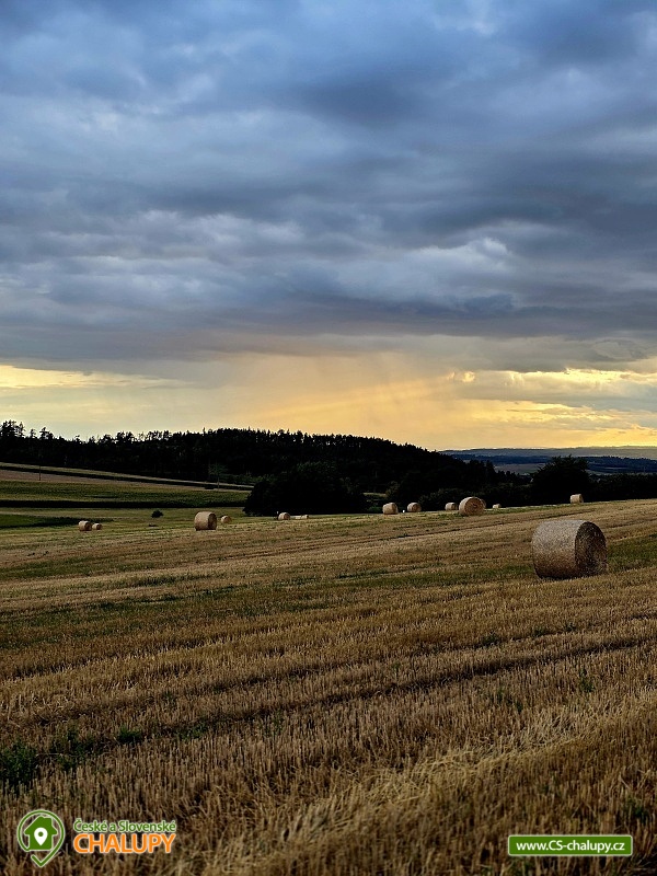Chata Vysočina - ubytování Ruda s bazénem a vyhřívaným koupacím sudem. Naše chata se nachází na odlehlém klidném místě u lesa v soukromí. Okolí nabízí možnost procházek lesem či houbaření a skutečně nádherný výhled do krajiny s rybníky nebo na západ slunce. Chata má 13 lůžek a možnost přistýlky. V chatě je 3x ložnice s manželskou postelí, 1x ložnice s 1 manželskou postelí a 2 standardní postele, 1x ložnice s 1 manželskou postelí a 1 standardní postel, dále rozkládací gauč a 1 lůžko u krbu. K dispozici jsou dvě dětské postýlky včetně peřinek. Obývací pokoj s vnitřním uzavřeným krbem a kulečníkem, TV, rozkládací sedačka, dětský koutek se spoustou hraček a společenských her je propojený s vybavenou kuchyní ve které opravdu nic nechybí. V objektu je internet Wi-fi. V přízemí se nachází samostatné WC a dále koupelna, kde je sprchový kout, vana, pračka, sušička, umyvadlo a bojler 200 l. V patře je celkem 5 ložnic a další samostatné WC s umyvadlem. Chata je vytápěná krbem a elektrickým vytápěním. Venkovní sezení pod pergolou nabízí možnost přitopení ohřívací lampou. Dále je zde venkovní kuchyň včetně teplé a studené vody, dvou lednic s mrazákem, venkovní gril a udírna. Můžete si zde také zahrát šipky. - ponk. Vyžití pro děti např. dětský domeček, pískoviště, skluzavky, houpačky, houpací sítě, trampolína, dětská lanovka, odrážedla, kuželky, ping-pong a mnoho dalšího. Celoročně možnost využití vyhřívaného koupacího sudu či sauny a v letním období vyhřívaný bazén. Nově zde byl vybudován útulný sklípek pro příjemné posezení s přáteli včetně možnosti zakoupení lahvového vína nebo malého či velkého sudu piva (výčep ve sklípku s biogonem za poplatek). Vybavená kuchyně zahrnuje veškeré nádobí, dřez s teplou vodou (voda pitná), myčku na nádobí, indukční desku, horkovzdušnou troubu, lednička s mrazákem, mikrovlnná trouba, rychlovarná konvice, topinkovač, touastovač. Parkování je možné přímo u chaty, silnice i v zimě sjízdná pro auta 4×4. Tipy na výlety na Vysočině: zámek Velké Meziříčí 9 km, zámek Třebíč 30 km, Westernové městečko Šiklův mlýn 31 km, restaurace s vlastním pivovarem Jelínkova vila ve Velkém Meziříčí. Značené cyklostezky na Vysočině, terén je zvlněný kopcovitý, možné je i houbaření.
