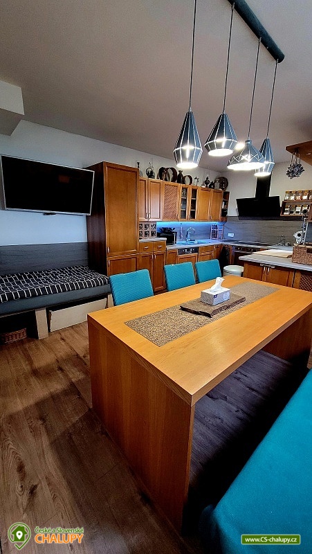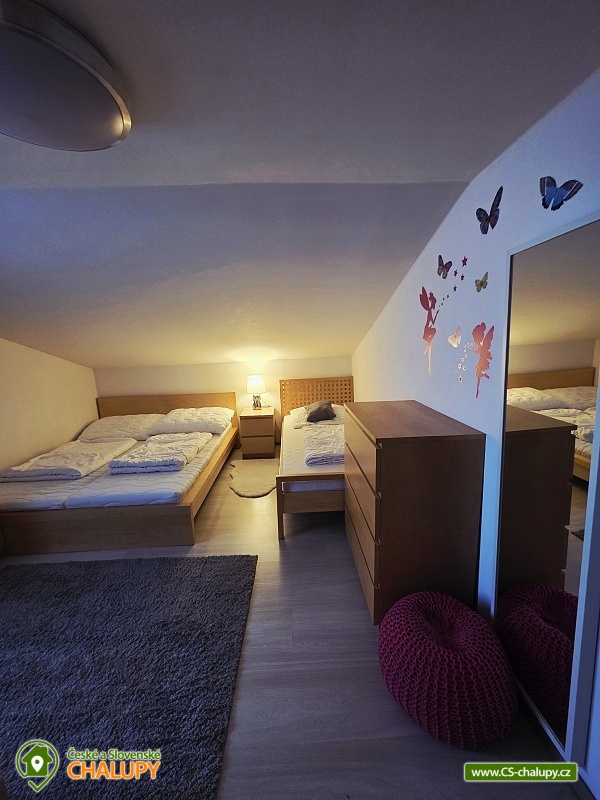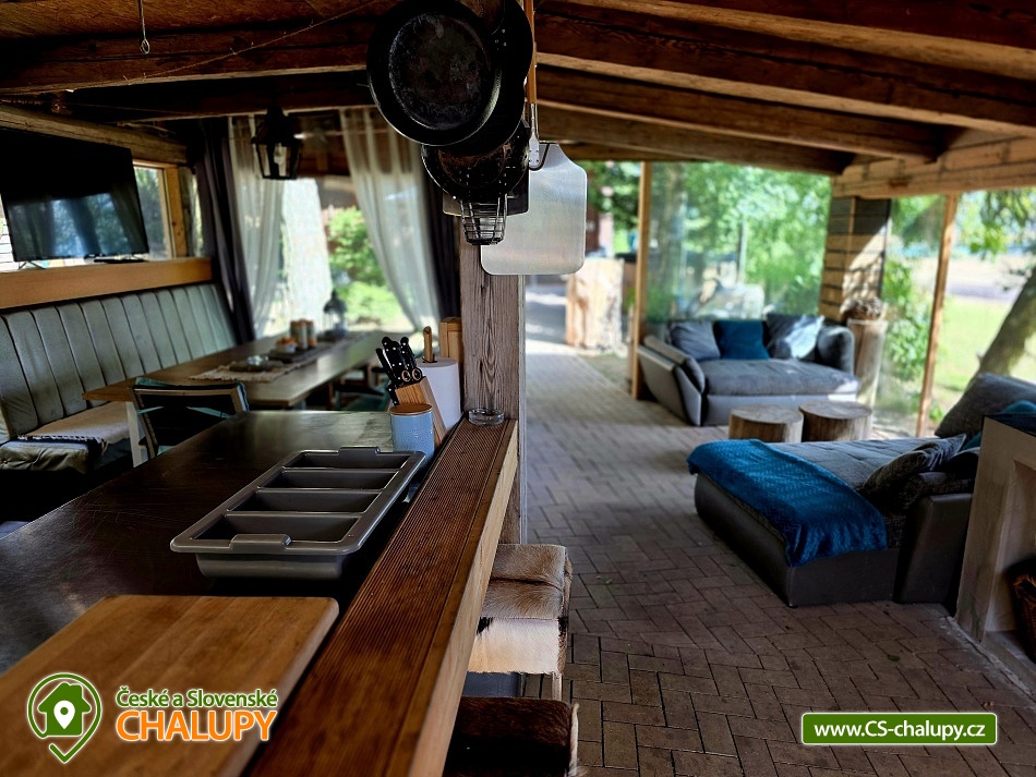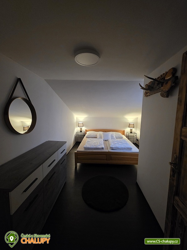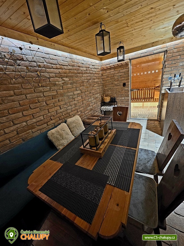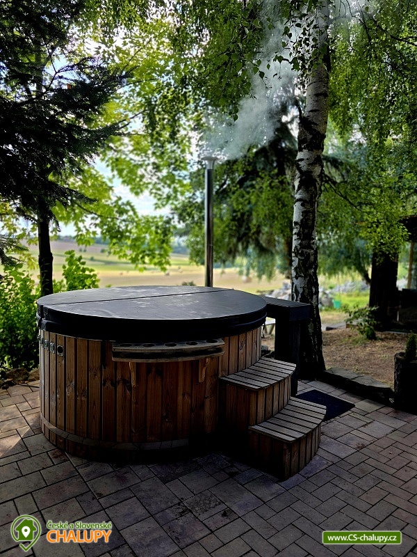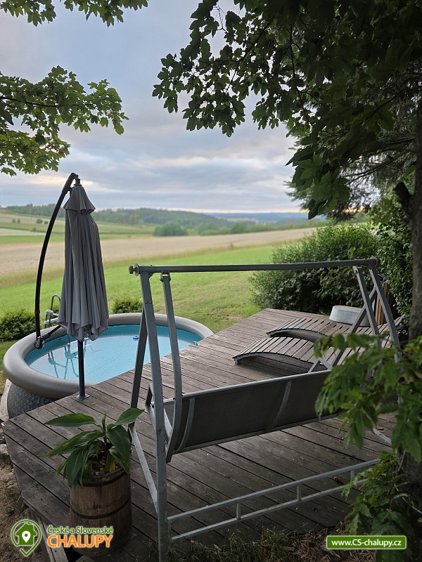 Chata Vysočina - ubytování Ruda s bazénem a vyhřívaným koupacím sudem. Chata se nachází na odlehlém klidném místě u lesa v soukromí. Okolí nabízí možnost procházek lesem či houbaření a skutečně nádherný výhled do krajiny s rybníky nebo na západ slunce. Chata má 5 pokojů, celkem 13 lůžek a možnost přistýlky. V chatě se nachází 3x ložnice s manželskou postelí, 1x ložnice s 1 manželskou postelí a 2 standardní postele, 1x ložnice s 1 manželskou postelí a 1 standardní postel, dále rozkládací gauč a 1 lůžko u krbu. K dispozici jsou dvě dětské postýlky včetně peřinek. Obývací pokoj s vnitřním uzavřeným krbem a kulečníkem, TV, rozkládací sedačka, dětský koutek se spoustou hraček a společenských her je propojený s vybavenou kuchyní ve které opravdu nic nechybí. V objektu je internet Wi-fi. V přízemí se nachází samostatné WC a dále koupelna, kde je sprchový kout, vana, pračka, sušička, umyvadlo a bojler 200 l. V patře je další samostatné WC s umyvadlem. Chata je vytápěná krbem a elektrickým podlahovým vytápěním. Venkovní sezení pod pergolou nabízí možnost přitopení ohřívací lampou. Dále je zde venkovní kuchyň včetně teplé a studené vody, dvou lednic s mrazákem, venkovní gril a udírna. Můžete si zde také zahrát šipky, ping-pong. Vyžití pro děti např. dětský domeček, pískoviště, skluzavky, houpačky, houpací sítě, trampolína, dětská lanovka, odrážedla, kuželky a mnoho dalšího. Celoročně možnost využití vyhřívaného koupacího sudu či sauny a v letním období vyhřívaný bazén. K dispozici je také útulný sklípek pro příjemné posezení s přáteli včetně možnosti zakoupení lahvového vína nebo malého či velkého sudu piva (výčep ve sklípku s biogonem za poplatek). Vybavená kuchyně zahrnuje veškeré nádobí, dřez s teplou vodou (voda pitná), myčku na nádobí, indukční desku, horkovzdušnou troubu, lednička s mrazákem, mikrovlnná trouba, rychlovarná konvice, topinkovač, touastovač. Parkování je možné přímo u chaty, silnice i v zimě sjízdná pro auta 4×4. Tipy na výlety na Vysočině: zámek Velké Meziříčí 9 km, zámek Třebíč 30 km, Westernové městečko Šiklův mlýn 31 km, restaurace s vlastním pivovarem Jelínkova vila ve Velkém Meziříčí. Značené cyklostezky na Vysočině, turistika a oblíbené houbaření.