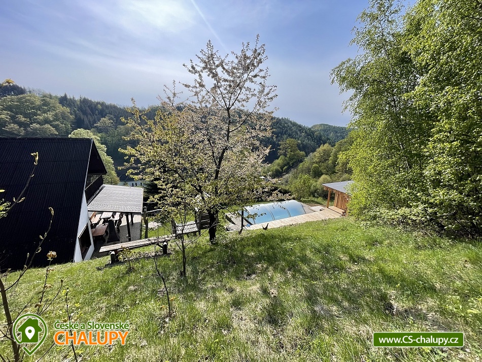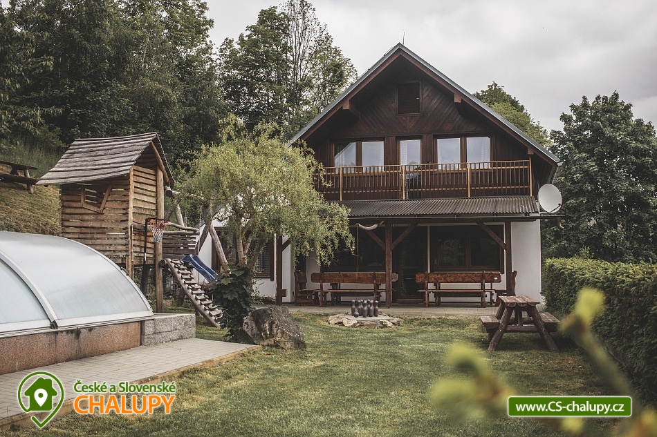 Wellness chata (prosklená SAUNA s výhledem do údolí + KOUPACÍ SUD S VÍŘIVKOU) a bazénem na výjimečně krásném a klidném místě v obci Štědrákova Lhota. Ale zároveň ideální jako základna pro lyžařské a v létě bike (trail) nadšence! Příroda, výhledy a absolutní klídek v podhůří Jeseníků. Prostorné posezení s kvalitními lavicemi a zahradním krbem, zastřešený bazén o rozměrech 6 x 3 metry s hloubkou vody až 150 cm. Luxusní zahradní domek pro děti s houpačkou, ruské kuželky pro volné chvíle a velkou trampolínu o průměru 360 cm s ochrannou sítí! V obytné místnosti - PROFI stolní fotbálek. To vše naleznete na udržované zahradě přímo u domu. 2 x čtyřlůžková ložnice, 2 x třílůžková ložnice, 1 lůžko ve zvýšeném patru + 2 přistýlky na gauči v obývacím pokoji. LCD TV ve společenské místnosti. Vybavená kuchyň, která je vybavena dostatečným množstvím nádobí, sklokeramickou varnou deskou, pečící horkovzdušnou troubou, mikrovlnkou, varnou konvicí, velkou lednicí s prostorným mrazákem, myčkou nádobí. Druhou kuchyň v jednom z čtyřlůžkových pokojů, který je upraven jako bezbariérový. Venkovní kryté a zastřešené posezení přístupné ze společenské místnosti, ohniště, krb s udírnou, úschovnu kol a lyží. V naší nabídce máme celkem čtyři chaty. Chata je cca. 300m od proslulého lyžařského střediska Panorama. Lokace je výjimečná svým klidem a malebností ale zároveň slouží jako ideální základna pro lyžaře a bikery! V okruhu 30 km od naší chaty se nachází všechny nově vybudované moderní ski & bike Resorty v Jeseníkách!! Speciálně hustota nově vybudovaných bike parků dělá z Jeseníků centrum této oblíbené zábavy. Každý den můžete lyžovat nebo bikovat v jiném resortu a za týden to skoro nestihnete objet vše!! 30 km Resort Dolní Morava ski / bike. 20 km Horský resort Buková hora ski / bike. 25 km Horský areál Kraličák ski / bike. 30 km Areal Kouty nad Desnou ski / bike / dlouhé stráně.