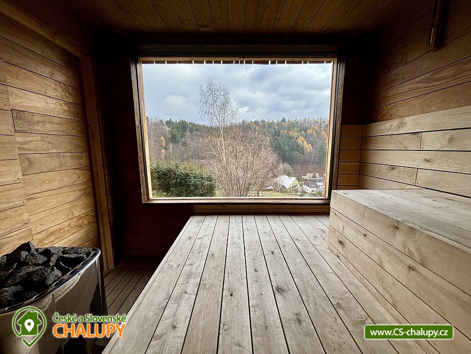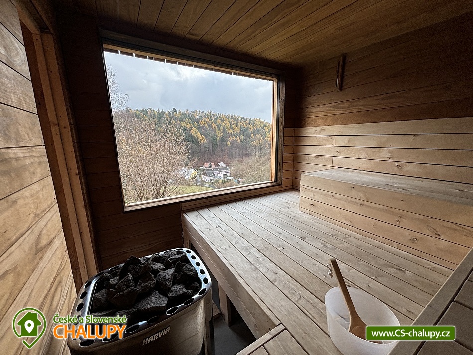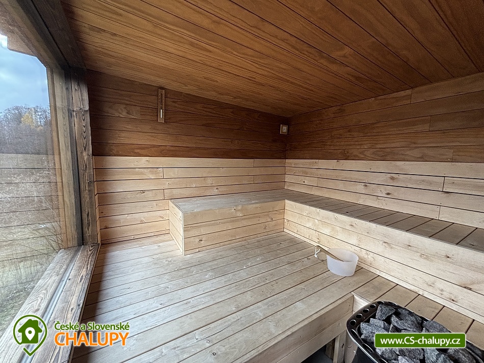 „Wellness chata - venkovní SAUNA, krytý BAZÉN, koupací SUD s vířivkou“
