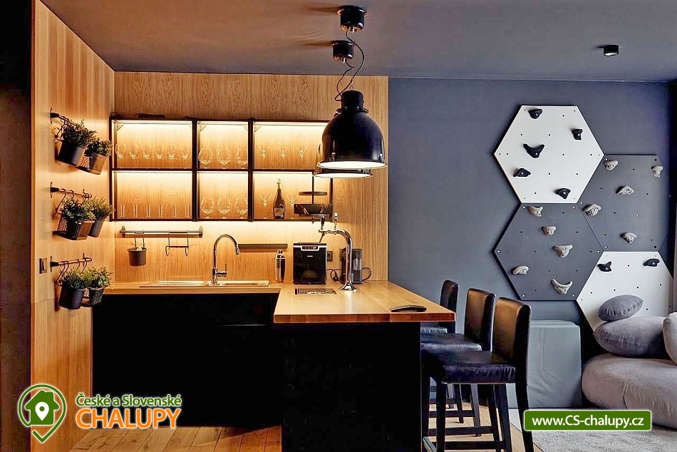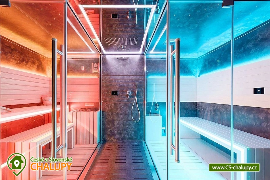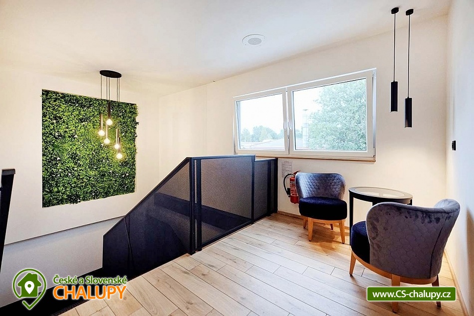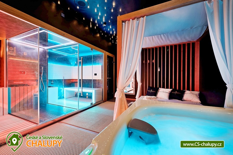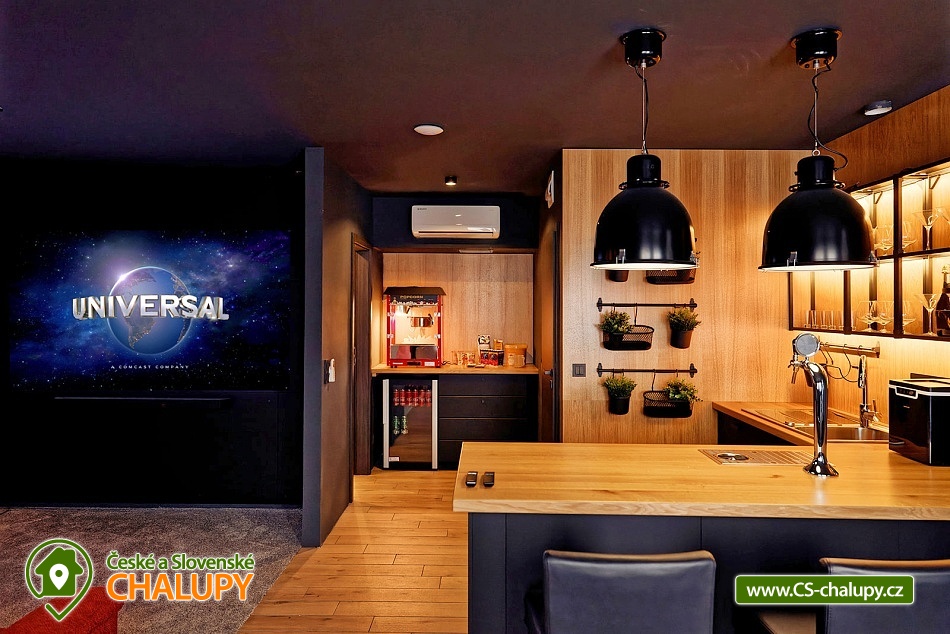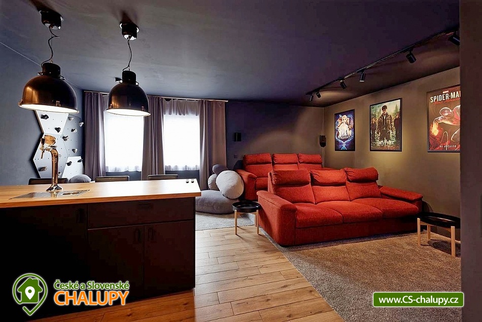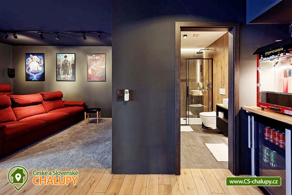 Luxury apartment Volavka with wellness - Hlinsko is located in the heart of Žďárské vrchy, near the center of Hlinsko. A modern apartment with a private wellness area and its own cinema is rented as a whole, always for one family or group of people in two apartment units. The total capacity of the apartment is 8 people. Each unit offers a double bedroom with a TV, a living room with a sofa bed for 2 people and a TV, an equipped kitchen (dishes, fridge, freezer, kettle, dishwasher, hob and oven) and a spacious bathroom with a sink, shower and toilet. Possibility to rent a baby cot. There is a private cinema room with an equipped bar and another bathroom with a shower and toilet, right in the apartment. Comfortable seats, a huge screen, a wide range of films of all genres and professional 7.1 Dolby Atmos sound. Before or after the screening, you can have refreshments in the adjacent equipped bar with a tap, a Nespresso coffee machine and also a professional popcorn machine. A private wellness center right in the apartment, just a few steps from your rooms, will ensure perfect relaxation. You can warm up in the Jacuzzi Sasha Finnish sauna or the steam bath, and then cool down pleasantly under the experience shower with several modes. After the sauna ceremonies, you can relax on a luxurious relaxation bed or perhaps in the Jacuzzi with a glass of something good. The entire building is air-conditioned and heated with underfloor heating. Wi-Fi connection available. Parking possible directly at the building for 2-4 cars. In front of the apartment there is a sitting area with a grill and a fireplace. The town of Hlinsko is the center of the Hlinecko microregion, which lies on the border of two protected landscape areas - Žďárské vrchy and Železná hory. Cycling, hiking, golf, tennis, skiing and swimming are available in the surrounding area. Tips for trips: Peklo Čertovina, open-air museum on Veselé Kopec, Nine Rocks, lookout tower Borůvka u Hluboká, Toulovcovy maštale, Vojtěchovská lookout tower, open-air museum Betlém, Municipal Museum and Hlinsko gallery. Swimming options: Biotope Hlinsko, Hlinsko pool, Srní quarry, Jasné Pole - Rybník Januš. Nearby ski resorts: Hlinsko, Trhová Kamenice, Hluboká and Svratka. We look forward to seeing you here.