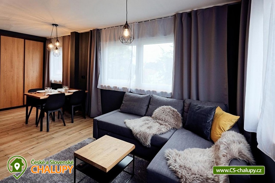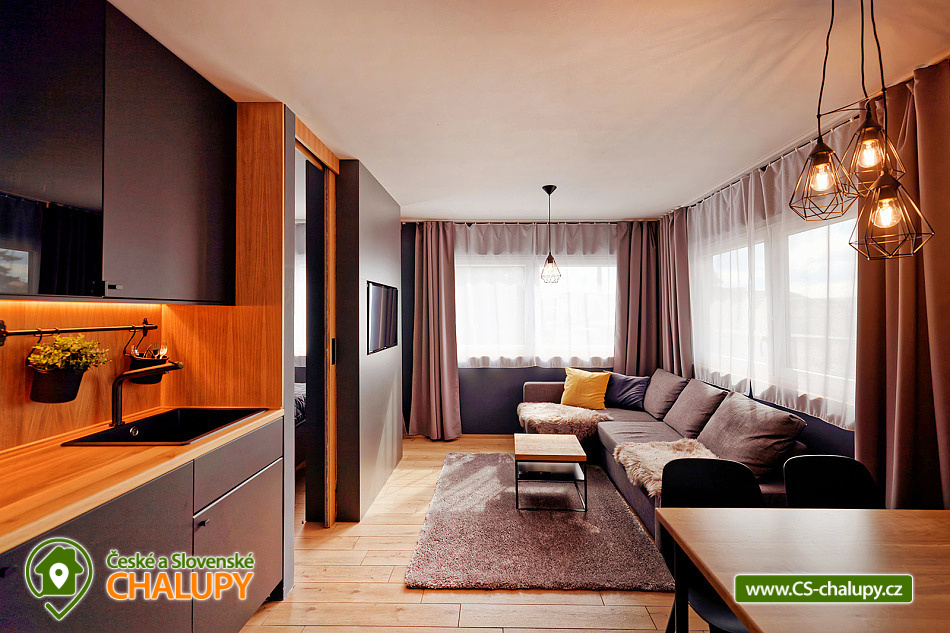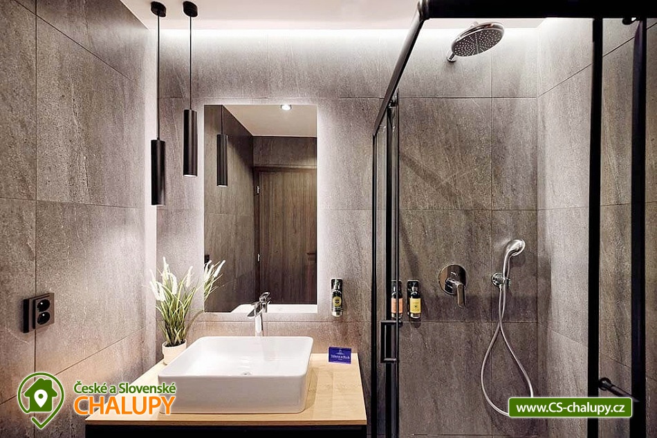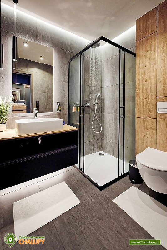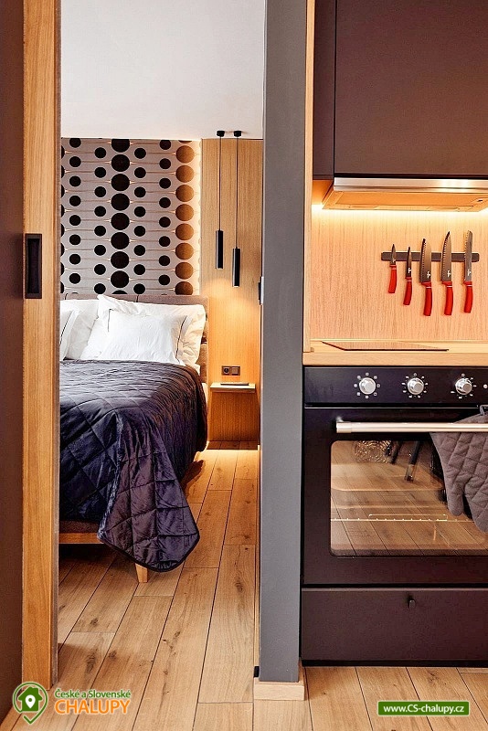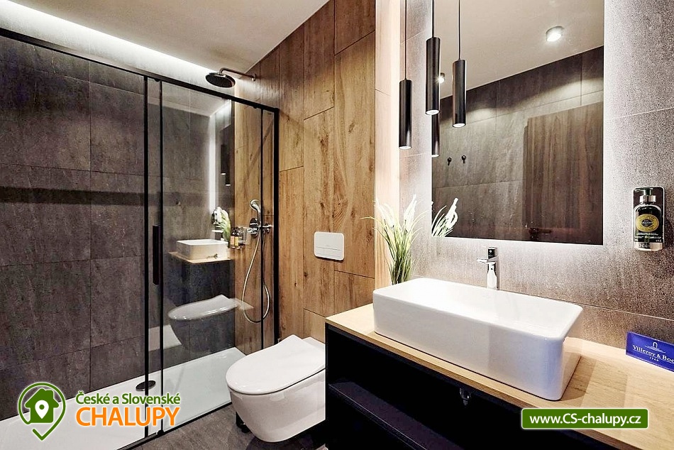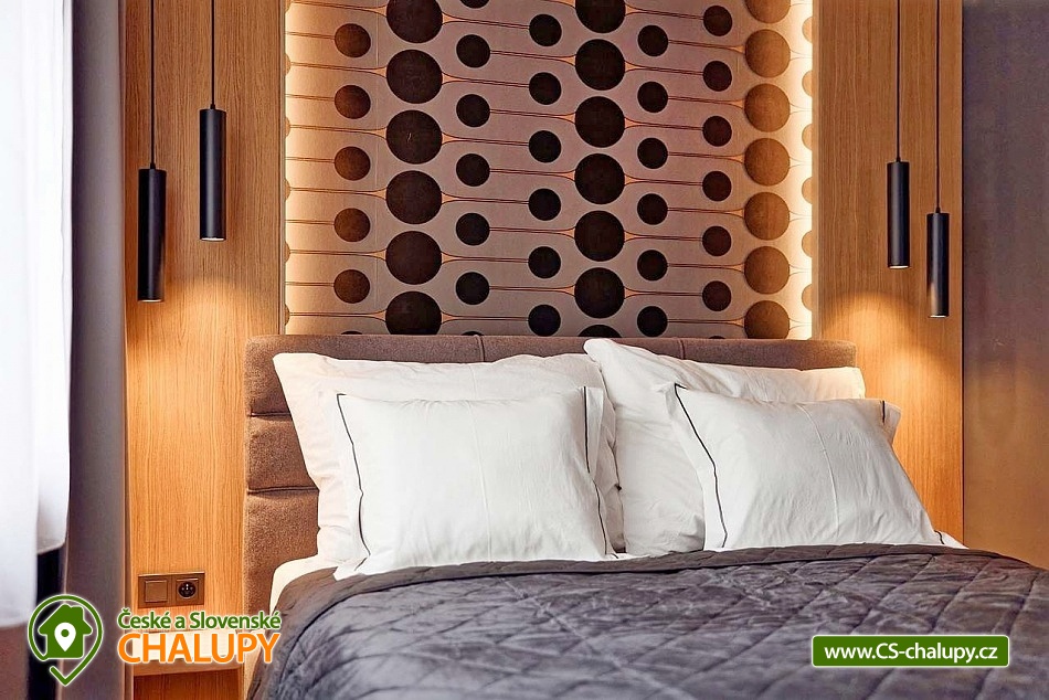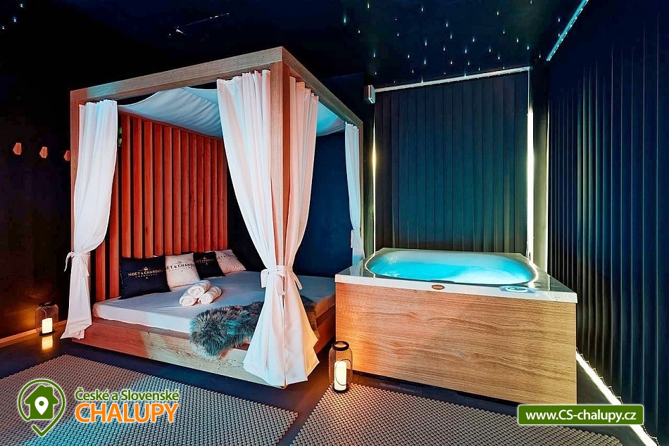 Luxury apartment Volavka with wellness - Hlinsko is located in the heart of Žďárské vrchy, near the center of Hlinsko. A modern apartment with a private wellness area and its own cinema is rented as a whole, always for one family or group of people in two apartment units. The total capacity of the apartment is 8 people. Each unit offers a double bedroom with a TV, a living room with a sofa bed for 2 people and a TV, an equipped kitchen (dishes, fridge, freezer, kettle, dishwasher, hob and oven) and a spacious bathroom with a sink, shower and toilet. Possibility to rent a baby cot. There is a private cinema room with an equipped bar and another bathroom with a shower and toilet, right in the apartment. Comfortable seats, a huge screen, a wide range of films of all genres and professional 7.1 Dolby Atmos sound. Before or after the screening, you can have refreshments in the adjacent equipped bar with a tap, a Nespresso coffee machine and also a professional popcorn machine. A private wellness center right in the apartment, just a few steps from your rooms, will ensure perfect relaxation. You can warm up in the Jacuzzi Sasha Finnish sauna or the steam bath, and then cool down pleasantly under the experience shower with several modes. After the sauna ceremonies, you can relax on a luxurious relaxation bed or perhaps in the Jacuzzi with a glass of something good. The entire building is air-conditioned and heated with underfloor heating. Wi-Fi connection available. Parking possible directly at the building for 2-4 cars. In front of the apartment there is a sitting area with a grill and a fireplace. The town of Hlinsko is the center of the Hlinecko microregion, which lies on the border of two protected landscape areas - Žďárské vrchy and Železná hory. Cycling, hiking, golf, tennis, skiing and swimming are available in the surrounding area. Tips for trips: Peklo Čertovina, open-air museum on Veselé Kopec, Nine Rocks, lookout tower Borůvka u Hluboká, Toulovcovy maštale, Vojtěchovská lookout tower, open-air museum Betlém, Municipal Museum and Hlinsko gallery. Swimming options: Biotope Hlinsko, Hlinsko pool, Srní quarry, Jasné Pole - Rybník Januš. Nearby ski resorts: Hlinsko, Trhová Kamenice, Hluboká and Svratka. We look forward to seeing you here.
