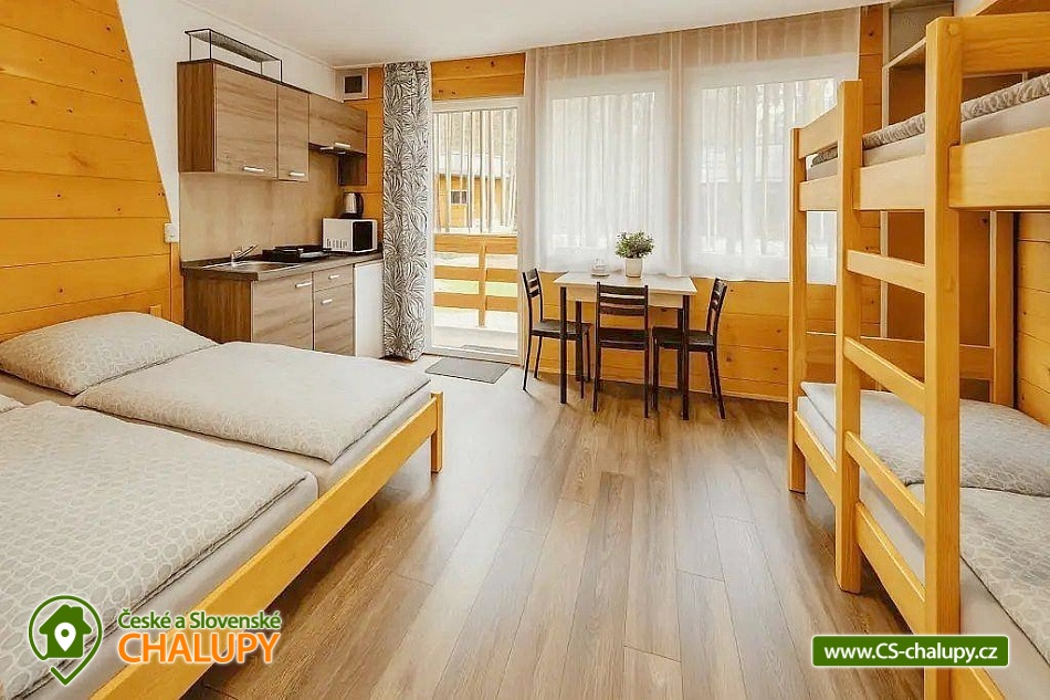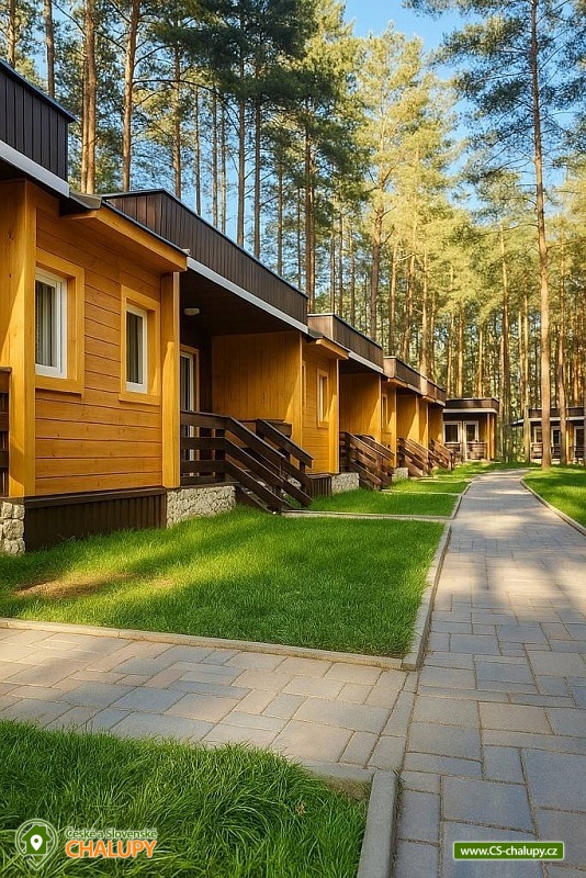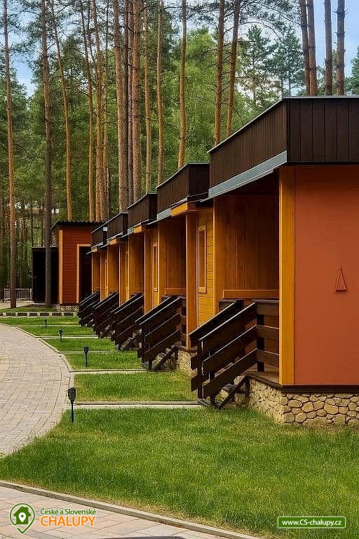 Chaty Máchovo jezero se nachází v krásné přírodě oblasti Kokořínsko a Máchův kraj. Ubytování v chatkách v borovicovém lese je ideální pro páry, rodiny i skupiny přátel. Kemp s 18 chatkami s celkovou kapacitou až 73 osob nabízí dvoulůžkové chaty, třílůžkové, čtyřlůžkové a šestilůžkové chaty. Většina chat (kromě 2-lůžkových) má kuchyňský kout s elektrickým vařičem, mikrovlnnou troubou, rychlovarnou konvicí, lednicí a jídelním sezením, a také vlastní sociální zařízení (sprchový kout, toaleta, umyvadlo). V 2-lůžkových chatách je k dispozici pouze základní vybavení s postelemi, ale hostům slouží společné koupelny a toalety v areálu rozdělené na dámské a pánské sprchy a toalety. Každá chatka je vybavena vlastní terasou se sezením a bezplatným WiFi připojením k internetu. V areálu se nachází dětské hřiště (pískoviště, houpačky, prolézačky, skluzavka, trampolína), což potěší zejména rodiny s malými dětmi. Pro sportovně založené hosty je připraveno basketbalové a volejbalové hřiště. Parkování je zajištěno pro hosty každé chatky. Kemp se nachází jen několik minut chůze od břehů Máchova jezera. Toto oblíbené letovisko nabízí širokou škálu aktivit - od koupání na písečných plážích přes projížďky na šlapadlech a lodích až po vodní sporty, cykloturistiku či pěší túry v okolních borových lesích. Pro milovníky kultury a společenského života je v sezóně připraven bohatý program v podobě koncertů, festivalů, sportovních akcí i zábavy pro děti. Rybáři si svůj oběd mohou ulovit ve vodách Nového rybníka, který je zarybněn kaprovitými a lososovitými rybami. Milovníci přírody mohou navštívit Národní přírodní památku Swamp. V blízkém okolí naleznete tenisové kurty, minigolfové hřiště i Aquapark Staré Splavy. Tipy na výlety: muzeum Čtyřlístek, muzeum Karla Hynka Máchy, městské muzeum Mimoň, zámek Doksy, skalní hrad Jestřebí, hrad Bezděz, zámek Nový Berštejn, hrad Houska, ZOO Ralsko. Krásné výhledy na okolní přírodu se Vám naskytnou z rozhledny Josefská vyhlídka. Těšíme se na Vás u nás.