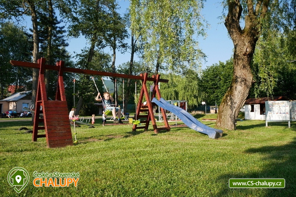 Chaty s bazénem v CHKO Beskydy - přijeďte si užít dovolenou do kempu s bazénem nedaleko Pusteven, na úpatí hory Radhošť. V areálu je k dispozici restaurace s možností celodenního stravování (snídaně, obědy, večeře). Děti potěší minizoo s ovečkami, prasátky a kozlíkem v areálu kempu + lanové centrum Gibon park je 150 metrů od kempu. POPIS: Chaty DELUXE - celkem 8 chat. Chaty se skládají ze samostatné ložnice, obývacího pokoje s kuchyní a toalet. Ubytování je možné od dvou do čtyř osob. Ložnice je vybavena manželskou postelí a patrovou postelí, v obývacím pokoji se nachází sedací souprava, TV a dekorační krb. Sociální zařízení je vybaveno sprchovým koutem, umyvadlem, wc. K chatě náleží také terasa s posezením (vybavena zahradním nábytkem včetně grilu), která je průchozí do obývacího pokoje. Kuchyně je kompletně vybavena (lednice, trouba, nádobí, rychlovarná konvice, sporák atd.). Chaty jsou umístěny v klidné části za bazénem. Chaty COMFORT - celkem 8 chat. Jedná se o čtyřlůžkové luxusní chaty s klimatizací a příslušenstvím. Chata se skládá ze tří pokojů: 2x ložnice, obývací pokoj s kuchyňským koutem a místnost se sociálním zařízením (sprchový kout, toaleta, umyvadlo). Chaty nají také terasu s grilem. Apartmány POOL - celkem 6 apartmánů. Apartmány POOL se nachází v bezprostřední blízkosti bazénu. Jedná se o čtyřlůžkové apartmány s jednou manželskou postelí a jednou patrovou postelí. Apartmán je vybaven kuchyňským koutem, sociálním zařízením (sprchový kout, toaleta, umývadlo). K apartmánu POOL náleží také terasa s posezením. Okolí Rožnova pod Radhoštěm skýtá mnoho tras pro zajímavé výlety. Přímo z kempu vede osmikilometrová trasa na Radhošť, po dalších 4 kilometrech dorazíte na proslulé Pustevny. Pět minut od kempu můžete navštívit skanzen Valašské muzeum v přírodě (bohatý program skanzenu probíhá prakticky po celý rok) a Jurkovičovu rozhlednu. Těšíme se na Vás u nás.