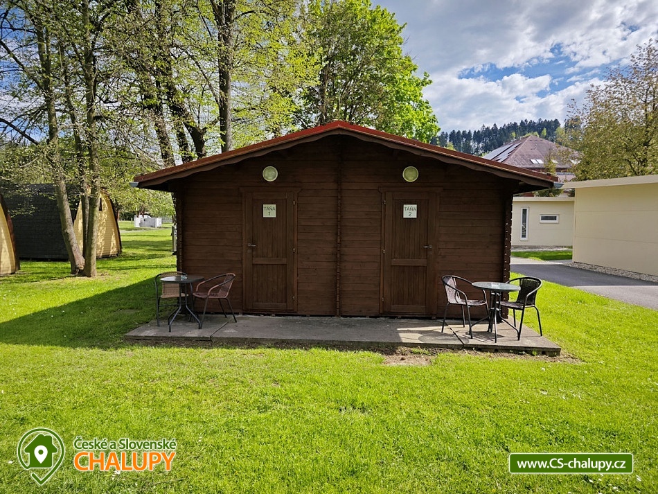 Chaty s bazénem u Rožnovské Bečvy pod Pustevnami - Bungalovy B, C, D a E, Chata Táňa, Chaty Wood, Chaty Hobit a Lesostany - poloha na úpatí hory Radhošť v CHKO Beskydy. V areálu je k dispozici restaurace s možností celodenního stravování (snídaně, obědy, večeře). Děti potěší minizoo s ovečkami, prasátky a kozlíkem v areálu kempu + lanové centrum Gibon park je 150 metrů od kempu. POPIS: Bungalovy B, C, D a E - celkem 4 chaty. V každém bungalovu se nachází jeden dvoulůžkový pokoj a dva pokoje čtyřlůžkové. Celkem tedy 1 bungalov pro až 10 osob. Součástí bungalovu je sociální zařízení a kuchyňka vybavená základním nádobím (hrnky, skleničky, příbory, pánev, talíře), plotýnkovým vařičem, mikrovlnou troubou a umývadlem s teplou a studenou vodou. Chata TÁŇA - 1 chata. Chata má dva dvoulůžkové pokoje. Před chatami je malá verandička sloužící k posezení či grilování. Součástí chatky je lednice. Sociální zařízení je společné. Chatka se nachází v zadní části kempu. Chaty WOOD - celkem 4 chaty. Čtyřlůžkové chaty jsou vybaveny lednicí. Sociální zařízení je společné. V chatce se nachází jedna dvojpostel a dvě postele nad sebou. Chaty jsou umístěny v zadní části kempu. Chaty HOBIT - celkem 2 chaty. Hobit nabízí ubytování pro 2 osoby. V chatce se nachází lednice. Před chatkou je malá verandička sloužící k posezení či grilování. Sociální zařízení je společné. Hobit home se nachází v zadní části kempu. LESOSTANY - celkem 3 glamping chaty. Lesostany nabízí nevšední ubytování v příjemném chládku našeho lesíku. Uvnitř lesostanu je ubytování a posezení pro 2 osoby. Sociální zařízení je společné. K lesostanům vede pouze lesní pěšinka. Okolí Rožnova pod Radhoštěm skýtá mnoho tras pro zajímavé výlety. Přímo z kempu vede osmikilometrová trasa na Radhošť, po dalších 4 kilometrech dorazíte na proslulé Pustevny. Pět minut od kempu můžete navštívit skanzen Valašské muzeum v přírodě (bohatý program skanzenu probíhá prakticky po celý rok) a Jurkovičovu rozhlednu. Těšíme se na Vás u nás.