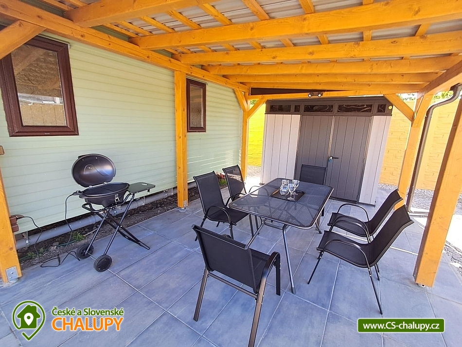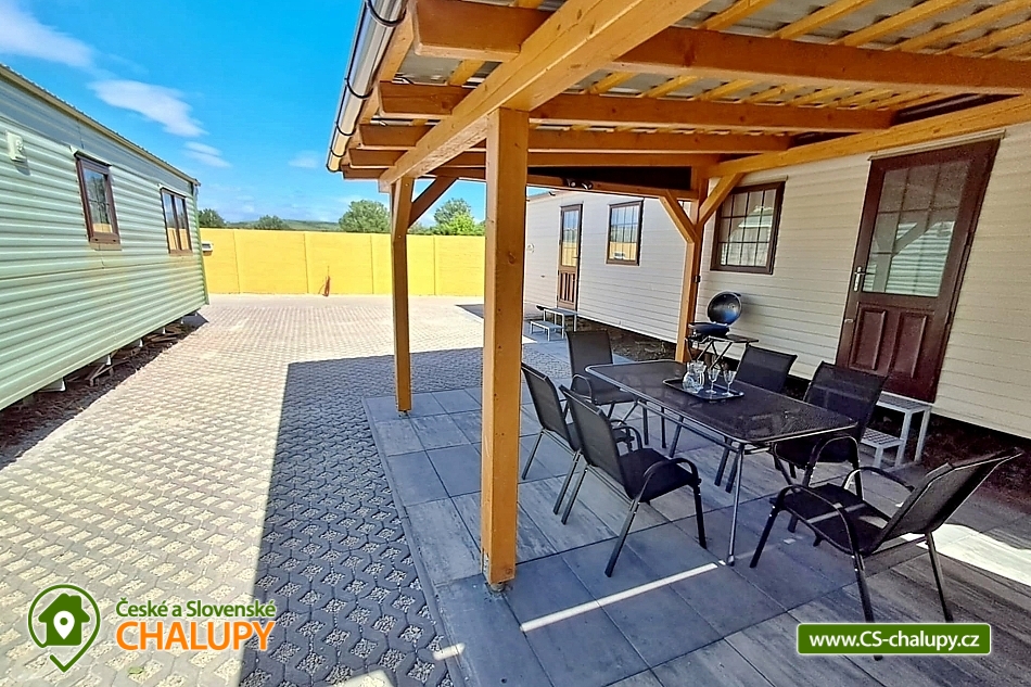 Accommodation Nové Mlýny - cottages Přítluky - Pálava. We offer accommodation near Pálava, in the South Moravian village of Přítluky, in the Nové Mlýny part, near the reservoir of the same name. You can stay in two cottages with a total capacity of 12 people. The cottages can be rented separately or both together. Each cottage offers accommodation for 6 people in two double bedrooms and a sofa bed in the living area. Each cottage has a living area with a fireplace, TV, sofa, armchairs, dining table and a fully equipped kitchen (dishes, refrigerator, freezer, kettle, microwave and hob). The sanitary facilities include a bathroom with a sink, shower and toilet. Towels, bed linen and toiletries are available. The cottages have air conditioning and heating is by fireplaces. Water heating is by electric boiler. Parking is possible directly at the property. Each cottage has a covered terrace with seating and a garden house for storing bicycles and other equipment. There are many options for active recreation in the area. The local landscape offers a rich network of cycle paths that will take you to all the beauties in the area. Tips for trips: Maják lookout tower, balloon flights, Lednice Chateau, Janův Castle, Pavlov Archeopark, Dívčí hrady ruins, Apollon's Temple with a lookout, Děvín, the Mezi vinicemi nature trail and many others. Swimming options: Hustopeče swimming pool, Šutrák pond, Janičův vrch quarry, aqualand Moravia and the Nové Mlýny water reservoir - Pasohlávky beach. We look forward to seeing you there.
