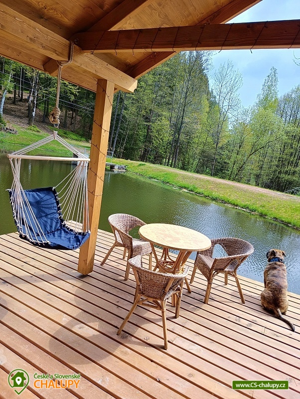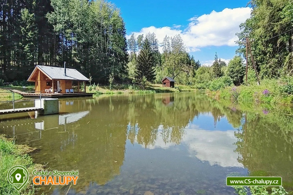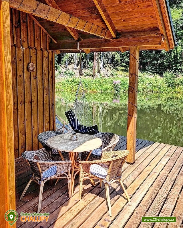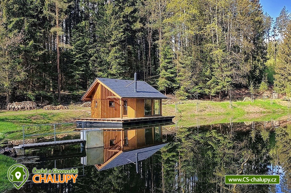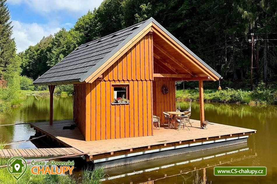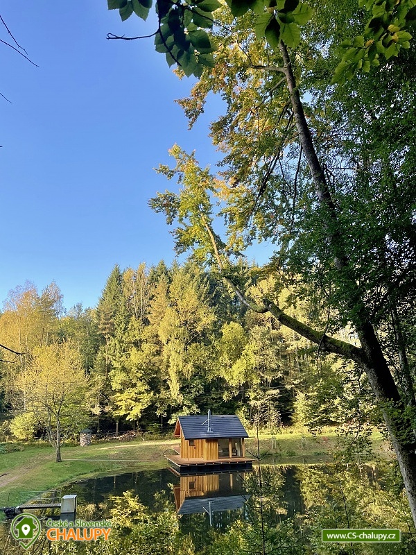 Glamping Cottage on the water surrounded by forest is located on the surface of a small pond in the small village of Štikov near the town of Nová Paka. The cottage is part of the Rybníčky Štikov area, where two other cottages are located - Chata Ztracenka (no. 7C-168) and Chata Pod bukem (no. 7C-170). In the nearby area, you can walk to the Novopacky waterfalls or visit the Pecka Castle. Catch and Release fishing is allowed throughout the stay. Chata Na vode (28 m²) offers comfortable glamping accommodation for 4 people, in total there is 1x double bed and 2x extra beds suitable for children due to their size (approx. up to 160 cm). In the ground floor of the cottage there is a living room with a fireplace, a sofa set, a dining table and a fully equipped kitchen (fridge, electric double cooker, microwave and kettle). Thanks to the panoramic windows, you can enjoy a beautiful view of the water surface and the surrounding nature. Stairs lead from the living room to the attic, where there is a large double bed and two extra beds for children. Bed linen is available. The social facilities include one separate bathroom with toilet. The water brought to the cabin is only useful. It is necessary to have your own towels and bath towels. Heating is provided by fireplace stoves. You can sit outside on the terrace adjoining the cottage. A hanging rocking chair is available for relaxation. The cabin also has its own fireplace. Roasting forks are ready to borrow. You can park directly in the area approx. 50 m from the cottage. In the vicinity of the building, hiking, cycling, swimming, mushroom picking, skiing and cross-country skiing are possible. There are tennis courts and a bowling alley nearby. Swimming options include, for example: Pecka swimming pool, Fařina - Nová Paka pond, Rumchalpa - Nová Paka quarry, Jahodnice water reservoir, Lužany - Marešák pond, Bělohrad Spa - Pardoubek pond, Hlíza pond, Šárovcova Lhota swimming pool, etc. ski resorts: Máchovka, Pecka or Karas - Mezihoří. Kumburk Castle, Jičín - the city of fairy tales, Prachovské skály, Les Králové Reservoir, Trosky Castle Ruins or ZOO Dvur Králové nad Labem are alluring for trips in the area. We look forward to seeing you here.