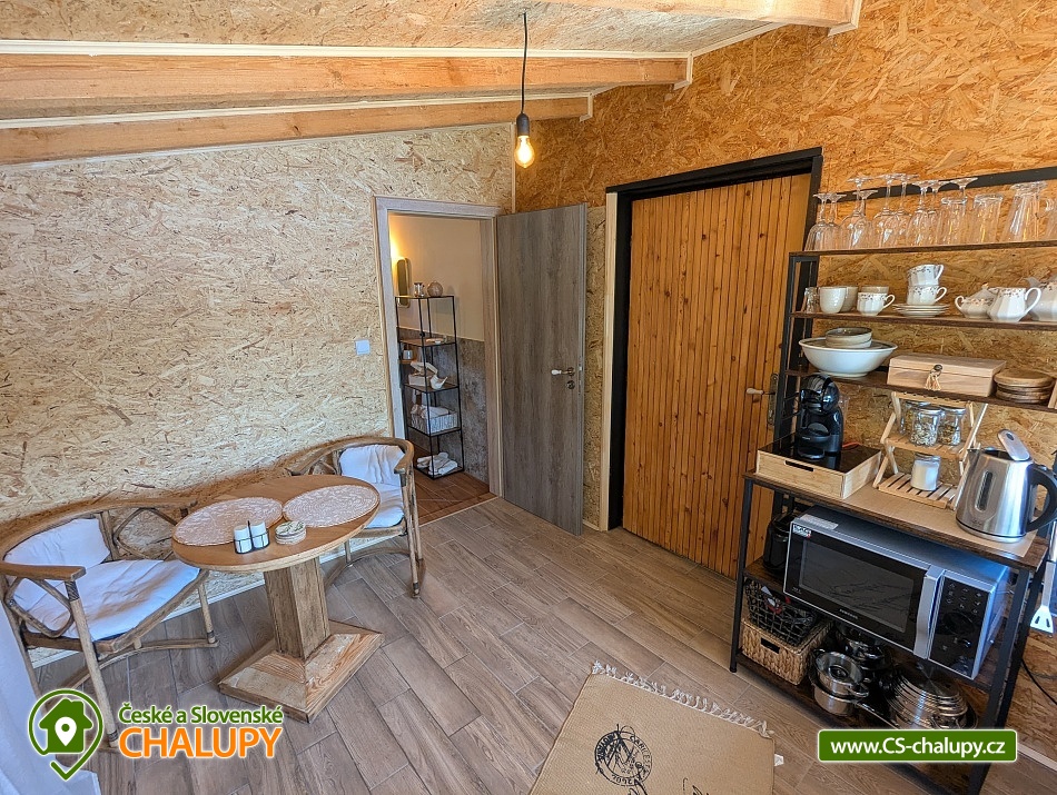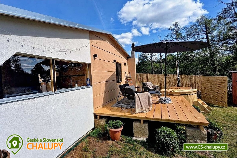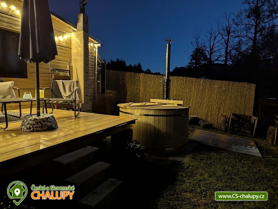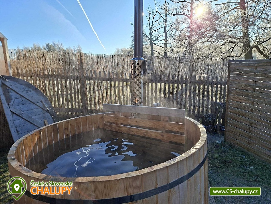 Glampingová chata s vyhřívaným koupacím sudem s výhledem na okouzlující rybník a zámek Lnáře. Poloha přímo u jihočeských cyklostezek a nedalekého skvostu - vodního zámku Blatná. Chata poskytuje ubytování pro až 3 osoby ve 2 pokojích. Chata je součástí 150 let starého statku a díky vlastnímu rozlehlému pozemku a rybníku je zaručeno soukromí a klid. Naší velkou radostí jsou zvířátka, najdete zde pravidelné návštěvnice divoké kachny, dále pak volavky popelavé, které se vznáší nad korunami stromů a největší chloubou je pan čáp s jeho rodinkou, který sídlí nedaleko na komíně. Toho pokud budete klidní můžete vidět i na metr od Vás, jak loví myšky nebo žabky. Na konec máme slepičky, od kterých je možné mít super snídani. POPIS: Chata se skládá z vybavené kuchyně, plnohodnotné koupelny a místnosti, kde je ložnice. Venku u chaty je solární sprcha s dostatkem soukromí a klasické suché WC. Koupací sud na ochlazení nebo naopak prohřátí. Taktéž krásná slunná terasa... Dřevo a koupací sud je v ceně vašeho pobytu. Vytápění chaty je krbem na tuhé paliva. Příjezdová cesta je zpevněná a je tak snadný přístup až k chatě. Parkování je možné na pozemku u chaty. Stravování - Obchod je nedaleko chaty a v létě nedaleká restaurace. Pokud by jste ovšem raději Vaše vlastní jídlo, je možnost ve zcela vybavené kuchyni tvořit. Co se týče snídaně jsme schopni nachystat, snídani do košíku. Terasa u chaty vybízí k odpočinku, je na ní slunce od rána do večera. Okolí: Zábavy je u Nás možné zažít nespočet. V okolí malebné vesnice je nespočet cyklostezek. Výlety na zámky, jako jsou Lnáře, největší krásný vodní zámek Blatná 8 km - u zámku krásné zahrady s daňky, kteří se volně promenádují. Dále město Písek který sám o sobě je skvostem. Naleznete v něm muzeum, nebo různé výstavy a také vodní elektrárnu a nejstarší most v ČR. Těšíme se na Vás u nás.