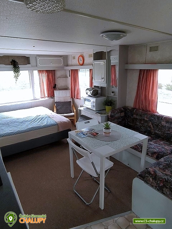 Glamping chata jižní Čechy nedaleko Zvíkovského Podhradí - Mobilheim je vhodný pro pohodu a relax mimo civilizační dění a přitom blízko na výlety v atraktivní lokalitě jižních Čech. Chata k pronajmutí poskytuje ubytování pro až 5 osob ve 2 ložnicích. Lůžka: Manželské dvoulůžko 160 x 200 cm, dále pokoj s 2x jednolůžkem 180 x 80 cm + možnost přistýlky v podobě matrace popř. na sedací soupravě 180 x 60 cm. Plně vybavená kuchyně: lednice, mikrovlnka, varná konvice, varná deska a nádobí. Dále venkovní gril, ohniště, venkovní posezení pod zastřešenou pergolou, společenské hry, houpačka, skluzavka, knihy a výhled do nekonečné krajiny. Parkování bezproblémové přímo u objektu. Možnost i stanovat nebo kempovat s dalšími přáteli za příplatek. Sociální zařízení: WC, sprchový kout, umyvadlo, teplá voda a zahradní sprcha. Vytápění: možnost el. přímotopu. Výlety v okolí lze podnikat buď přímo do okolních měst jako je Písek, Strakonice, Kestřany, Blatná, Zvíkovské Podhradí, Putim, Bechyně, Sudoměř, krokodýlí ZOO Protivín a Tvrz Kestřany. Ani Šumava není tak daleko a zrovna tak Orlická přehrada nebo malebná řeka Otava. Ráj pro rybáře, houbaře a milovníky cyklo a pěší turistiky do přírody. Těšíme se na Vás u nás.