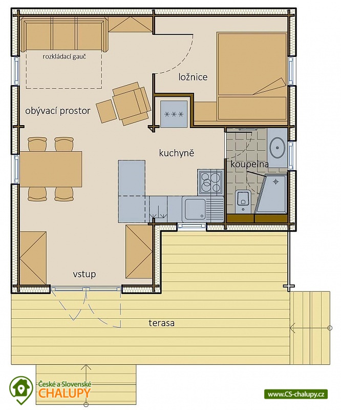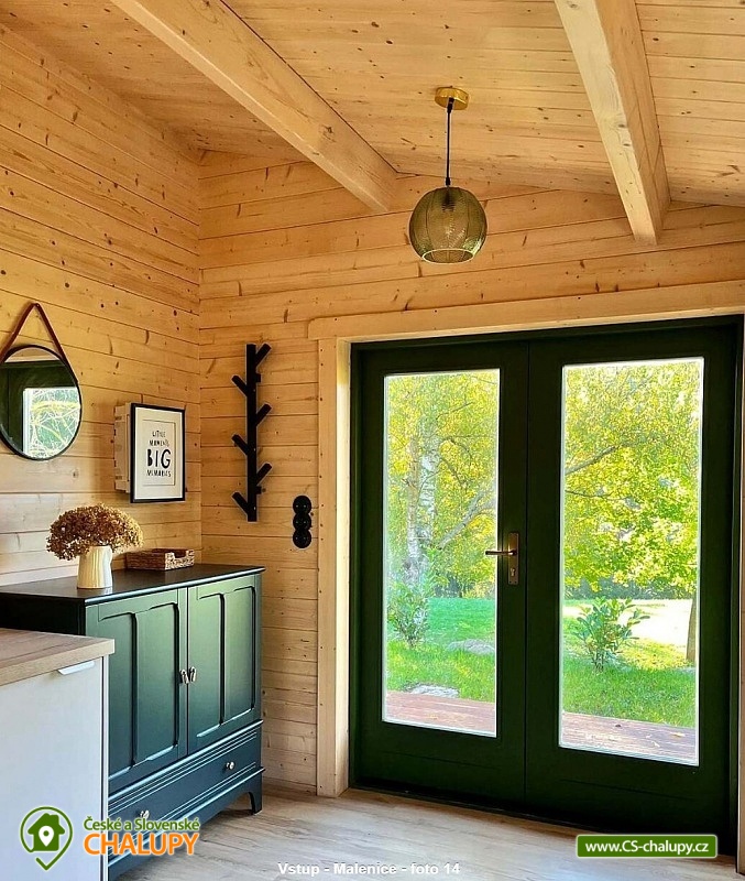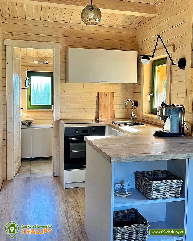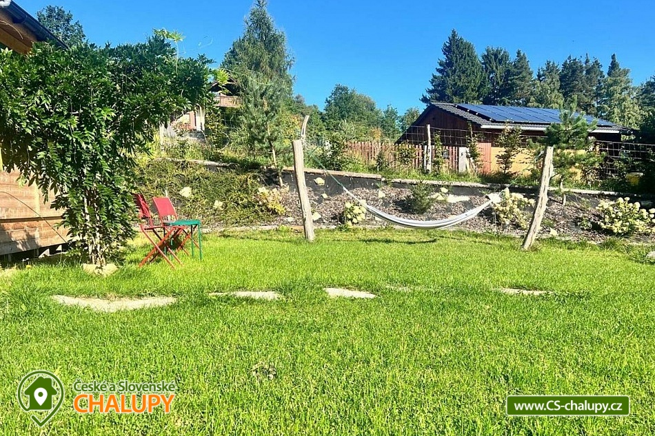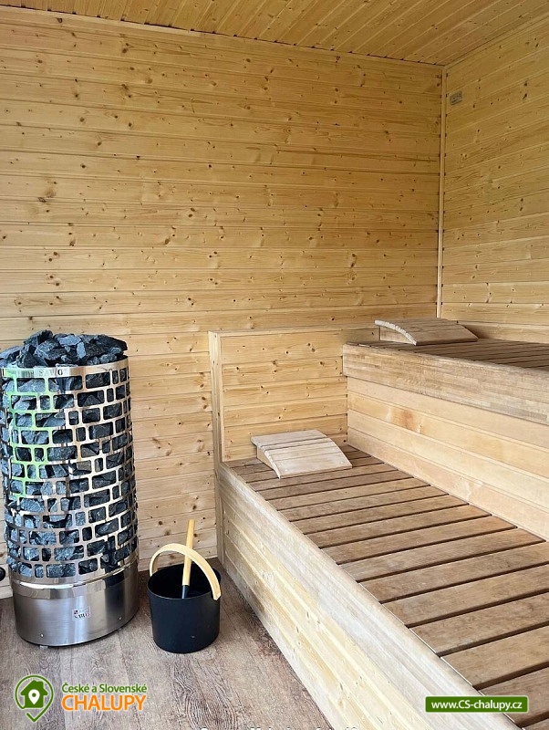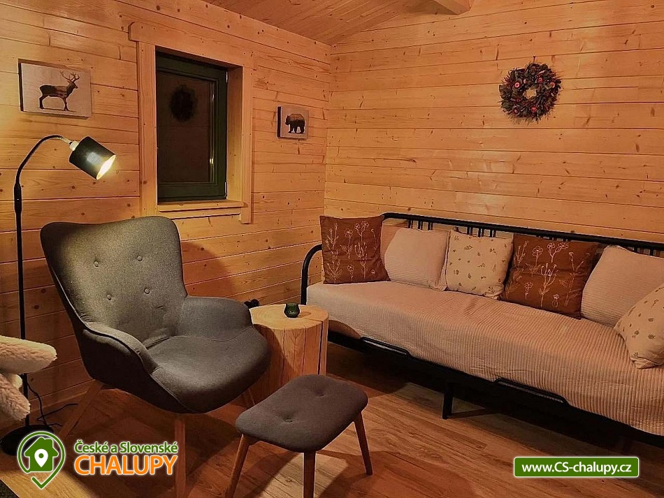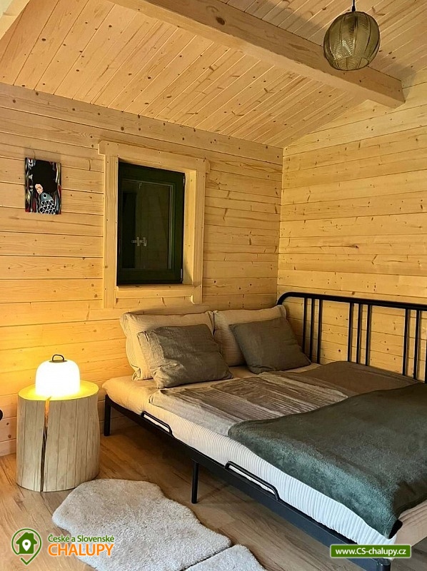 A cozy, fully equipped glamping cottage is located near the towns of Vimperk and Volyně in the village of Malenice, Strakonicko region. Its location makes it an ideal place for hiking, cycling and well-deserved rest. You can look forward to relaxing in the sauna. The cottage provides accommodation for 4 people in one separate bedroom (1 double bed) and in the living room (extra bed in the form of a sofa bed) for 2 people. For shared moments, there is a living room with a dining table, which is connected to a fully equipped kitchenette (ceramic hob, convection oven, fridge with freezer, dishwasher, electric kettle, toaster, coffee maker and dishes). The sanitary facilities include a bathroom with a shower, sink and toilet. The building also includes a sauna. The cottage is heated by electric heating. The building offers free WI-FI internet access. The cottage is surrounded by a fenced garden with parking directly at the property. The garden includes a covered terrace with outdoor seating. In the vicinity of the cottage, there are opportunities for hiking, cycling, swimming, fishing, mushroom picking, cross-country skiing and skiing. Swimming options include: Volyně swimming pool, Svatá Maří swimming pool, Vlachovo Březí swimming pool, Vimperk swimming pool, Skály swimming pool, Rohanov swimming pool, Husinec water reservoir, Strakonice swimming pool, Prachatice aquapark. In winter, nearby ski resorts are an advantage, such as: Javorník ski area, Kouty ski area, Libín ski area and Zadov ski area. Trips in the area include: Boubínský primeval forest, Horská Kvilda, Vltava spring, Schwarzenberg navigation channel, Sudslavická cave, etc.
