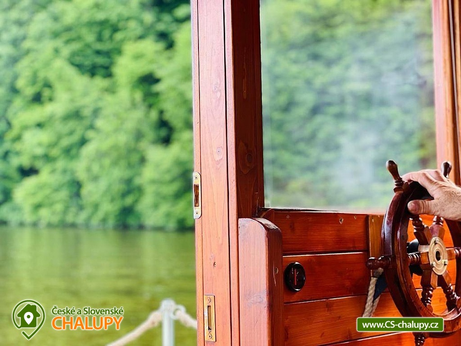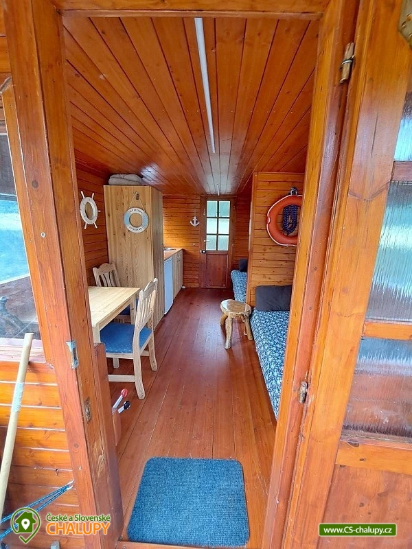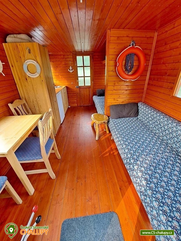 Houseboat Kořensko is located near the village of Újezd - Albrechtice nad Vltavou in the beautiful surroundings of South Bohemia. This is glamping accommodation on a floating houseboat that can be sailed from the Kořenská dam via Zvíkov to Orlík along the Vltava river. You can stop anywhere for swimming, fishing or roasting burritos. You do not need a small craft master's license to drive. The houseboat offers accommodation for 4 people. There is one main room with two sofa beds. Bedding including sheets is available. The Houseboat also includes a fully equipped kitchen, a Tschibo Cafissimo coffee machine for capsules (10 capsules included), a gas stove for a gas bomb, a refrigerator and a dining table with chairs. The social facilities include one chemical toilet including toiletries, a shower must be provided in the adjacent campsites for a fee. Heating is handled by a small thermal fan. The houseboat does not have an electricity connection, but it is equipped with a solar panel for lighting and charging the phone in a 12V socket. There is 20 liters of potable running water connected to the sink for rinsing. The houseboat has a smaller terrace with reclining chairs. You can park near the building. In the vicinity of the building, the possibility of hiking, cycling, swimming, mushroom picking and fishing. Bathing options include, for example: Kořensko reservoir, Nový Dvůr - Vltava swimming pool, Týn nad Vltavou swimming pool, Radětice - Cihelna swimming pool, Bechyně swimming pool, Hněvkovice water reservoir, Olešník swimming pool, Písek swimming pool, etc. Zvíkov Castle and Orlík, the historic center of the town of Písek, the Písecké hory nature park, Hluboká nad Vltavou with its castle and zoo or the town of Tábor. We look forward to seeing you here.