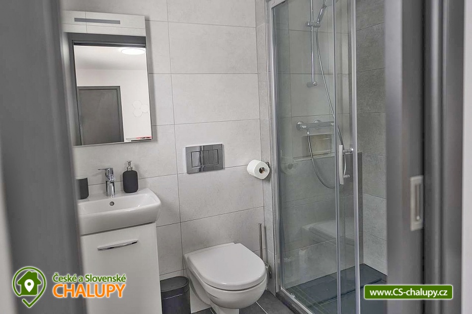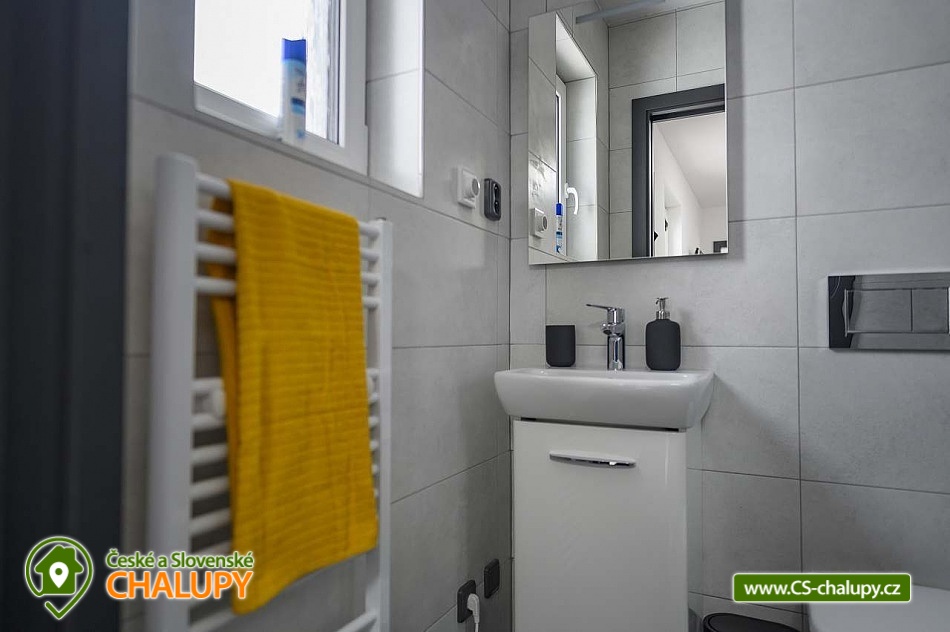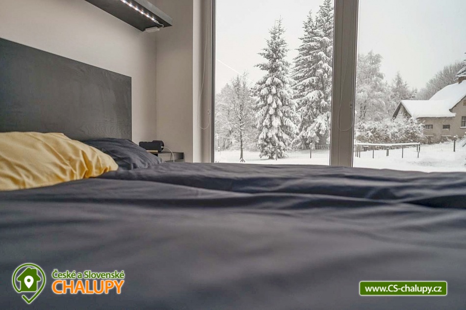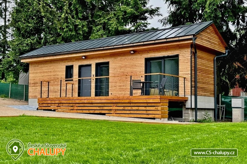 Glamping Black well is located in the village of Horní Černá Studnice under the Černá Studnice lookout tower near the town of Jablonec nad Nisou. This is a modern Tiny house with the possibility of voice control of the household, underfloor heating, its own well with water from the Jizera crystal and an ecological wastewater treatment plant. You can also look forward to relaxing on the spacious terrace with views of the countryside. The surrounding beautiful nature of the Jizera Mountains not only invites you to take a walk, but you can also do sports or go cycling here. In winter, there are running tracks or a natural bobsleigh track nearby. Tiny house Black well offers comfortable glamping accommodation for 3 people, in total there is one double bedroom with a double bed and one extra bed with a sofa bed in the living area. Directly from the bedroom you can enjoy views of nature through the panoramic windows and there is also an entrance to the terrace. Bed linen, towels and bath towels are available. Shared moments can be spent in the common room with a sofa set, TV and O2 programs, a dining area with bar stools and a fully equipped kitchenette (microwave oven, Nespresso coffee machine, kettle, hob, fridge, set of pots, glasses and mugs). Voice control of the home using Siri and WIFI internet connection are available throughout the building. The sanitary facilities include a bathroom with a sink, a toilet and a shower corner with a thermostatic shower head. The heating is provided by underfloor heating and a radiator for drying towels is available in the bathroom. You can sit outside on the terrace. There is also a room for storing sports equipment and with the possibility of charging e-bikes. The entire area is fenced and the building is protected by the Jablotron security system. You can park right next to the building. In the vicinity of the Black well house, cycling, swimming, mushroom picking, cross-country skiing and skiing are possible. Swimming options include, for example: Mšeno dam, Lučany nad Nisou swimming pool, Jílové quarry near Držkova, Tanvald swimming pool, Malá Skála - Žlutá plovárna, Josefův Důl natural swimming pool, Zlatá Olešnice swimming pool, Hodkovice swimming pool, Obří sud - Javorník swimming pool, etc. in winter, nearby ski resorts are available: Filip - Smržovka, Nová Ves nad Nisou, Zásada, Dobrá Voda, Dráček Alšovice, U PILY - Lučany nad Nisou, Rychnov - Zálesí, Plavy, Tanvaldský Špičák and others. The Černá Studnice, Nisanka and Bramberk lookout points, the Mšeno Reservoir in Jablonec nad Nisou, the Smržovka Natural Sled Track, the Museum of Glass and Bijoux Jablonec nad Nisou, the Smržovka Castle or Liberec are all tempting for trips in the area. We look forward to seeing you here.