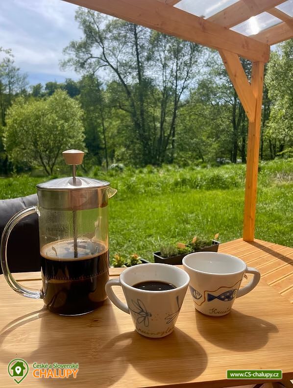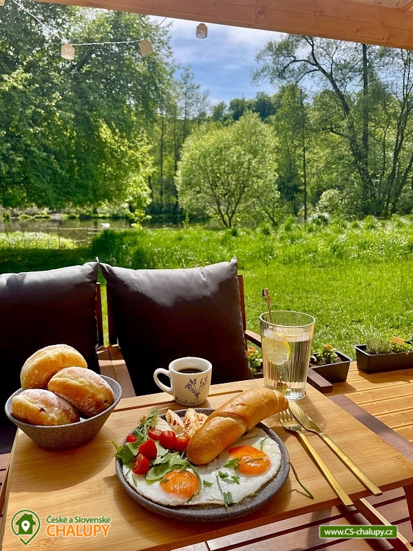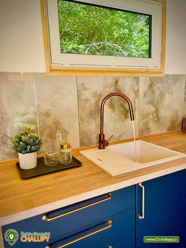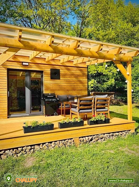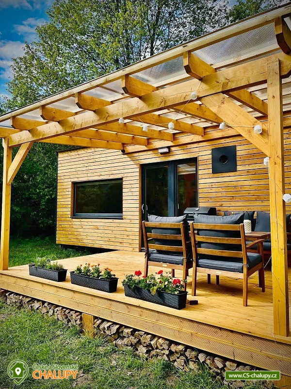 The cozy Tiny house is located at the very end of the cottage settlement, approximately 1 km from the village of Velichov and not far from the popular spa town of Karlovy Vary. The exact GPS location of the object will be specified after booking. The land of the house is surrounded by trees and the Ohře River, where you can refresh yourself. The beautiful nature of the Ore Mountains is nearby. You can look forward to comfortable glamping accommodation with a kitchen, bathroom, hot water and electricity. The Tiny house offers accommodation for 4 people. Sleeping is provided by a double mattress (180 x 200) located on a raised floor near the ceiling of the living room, as well as a sofa bed (180x100) and a sofa bed (80x200). A cot and a high chair can be provided upon request. The house consists of one main living room. There is a living area with a couch, armchair, storage space, and a fully equipped kitchen (stove, sink, refrigerator and basic equipment - coffee, tea, spices, oil and jar). The interior of the house is pleasantly lit thanks to the glass doors and panoramic window, and you can enjoy the views of the beautiful surrounding nature directly from the couch. The Tiny house includes a separate bathroom with an ecological separating compostable toilet, shower and sink. The water is treated rainwater, so it is only for use. There is 500l for use. Drinking water is in a barrel. There is a fireplace stove in the house for heating. Board games and books are available. The Tiny house is surrounded by a spacious, fenced grassy plot (area 4000 m2) with direct access to the river. The house is connected to a spacious roofed terrace with seating and a grill. You can also sit in the garden by the fireplace among the trees. For children, there is a children's corner outside with a drawing table, a small slide and other toys. It is necessary to take into account that a wildlife trail from the forest runs through the property. Parking is available approximately 150m from the property. The house can be reached comfortably along a flat dirt road. In exceptional cases, it is possible to arrange a ride to the accommodation by agreement. In the vicinity of the Tiny House there is the possibility of hiking, cycling, swimming, mushroom picking, fishing, skiing and cross-country skiing. The nearest shop and café are 5 minutes by car from the house. Nearby are tennis courts, a golf course, a skate park, a riding stable, wellness and bowling. The Ore Mountains and the Klínovec cable car are 15 minutes by car. Swimming options include: Jáchymov - Agricola aquacenter, Velký rybník Hroznětín, flooded Podlesí quarry, Děpoltovický rybník, Otovice quarry, Alžbětiny Lázně swimming pool, Perštejn swimming pool, Černé jezírko etc. Nearby ski resorts are available: Plešivec, Jáchymov Novako, Neklid - Boží Dar, KLÍNOVEC, Hranice - Boží Dar, Abertamy and others. For trips in the area, the Popovský kříž viewpoint with a view of the Doupovské mountains, Klínovec Trail parks, Ostrov Piarist monastery with a minizoo, Kyselka Lázně - Bučina lookout tower, Jáchymov Lázně - Mining Museum, Loket Castle, Mariánské Lázně or historical monuments and viewpoints in Karlovy Vary. We look forward to seeing you there.