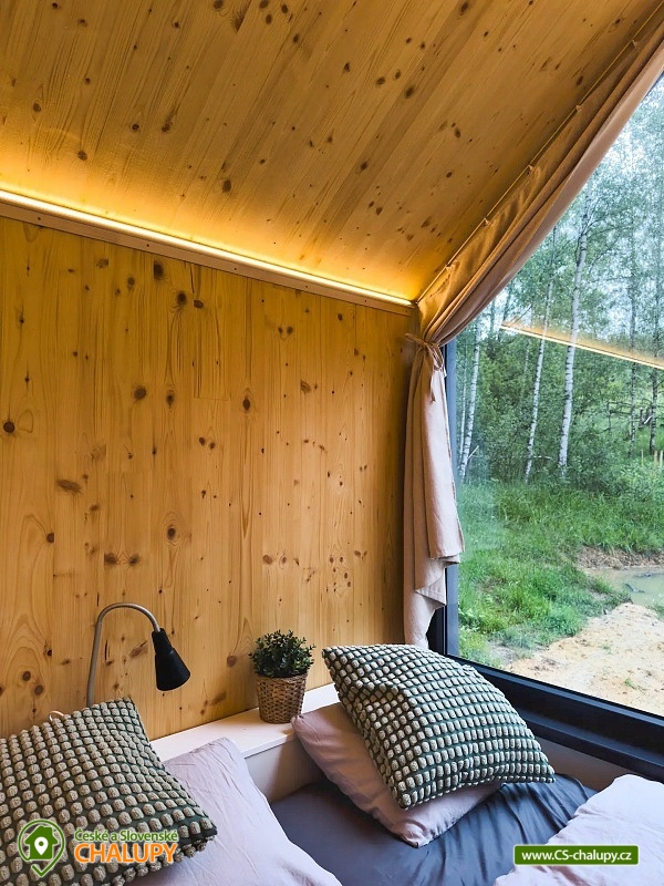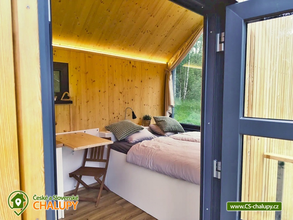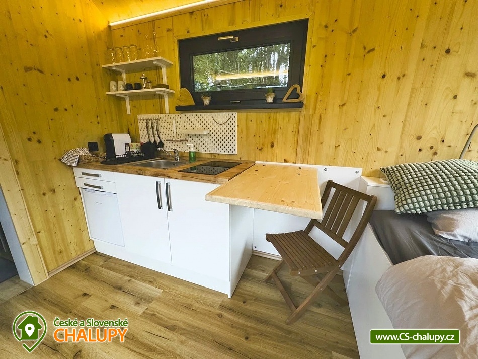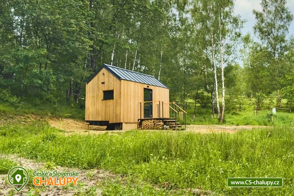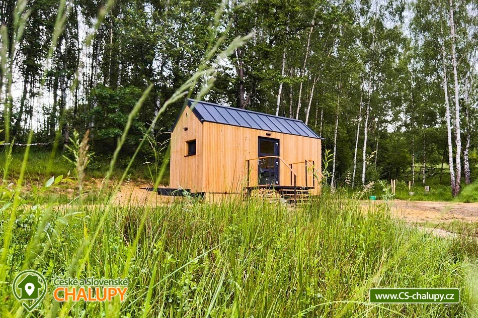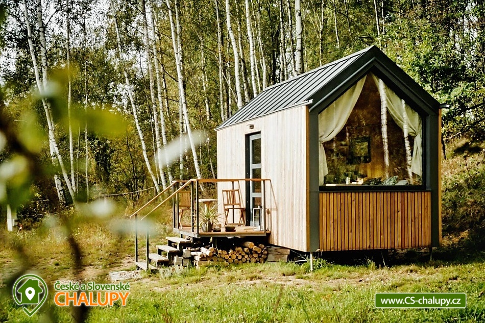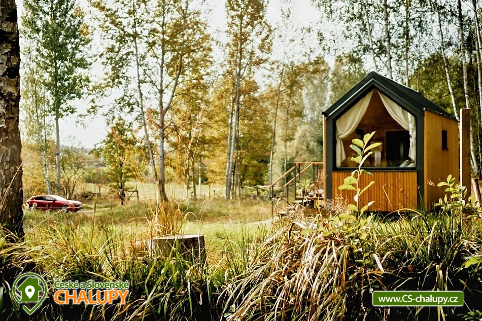 GlamLife Lusatian Mountains - Tiny house is located on the outskirts of the small town of Cvikov in the beautiful nature of the Lusatian Mountains PLA. The exact GPS location of the property is sent to guests after booking. You can look forward to plenty of peace and privacy. The house is surrounded by trees and a plot of land with an area of over 5,000 m2 stretches around it. You will enjoy amazing views of nature, views of romantic sunrises and sunsets, or the proximity of hiking and cycling routes leading through the beautiful countryside. Tiny house Lužické hory offers accommodation for 2 people, one double bed is available. Upon agreement, the possibility of an extra bed for 1 person. Maximum comfort awaits you inside the house. There is a double bed, from which you can enjoy views of the surrounding landscape through the panoramic window. Warm duvets and blankets are available for rent. Curtains can be used for privacy. The house also includes a fully equipped kitchen (electric stove, frying pan, refrigerator, capsule coffee machine, containers for making tea, tableware - plates, bowls, glasses, mugs, cutlery and tea towels, towels and dishwashing detergent). There is a small table and a chair. The social facilities include one comfortably equipped internal bathroom with shower, sink and toilet. Hot water is available. On cold days, you can heat up with an electric direct heater. The glamping house is insulated for better heat retention. The house is surrounded by a spacious plot, which is fenced. Part of the property is a series of four small ponds in which fish swim. You can sit by the fire or on the small terrace near the house. A grill is available. You can park 20 meters from the building, there is a private driveway. Swimming, mushroom picking, cross-country skiing and skiing are possible in the vicinity of the house. There are also tennis courts nearby and a pond suitable for fishing about 200 meters from the house. Glamping is located approx. 10 minutes from the famous Cvikov brewery, where you can not only eat, but also buy pastries in their bakery. Swimming options include, for example: Jezírko u Svoru pond, Radvanecký pond, Naděje dam, Kytlice - Lesní pond, Červený rybník u Pihel, Horní Prysk swimming pool, Lesenská prěhrada dam, Jiřetín pod Jedlovou swimming pool, Tomiškův pond, Großschönau - Trixi Park aquapark, etc. There are nearby ski resorts: Polevsko, Kytlice, Prácheň and others. Pánská Skála, Sloupské skály, Tolštejn Castle, Zákupy Castle are alluring for trips in the area or you can take a walk to Zelený Vrch, which can be seen directly from the window of the glamping house. We look forward to seeing you here.