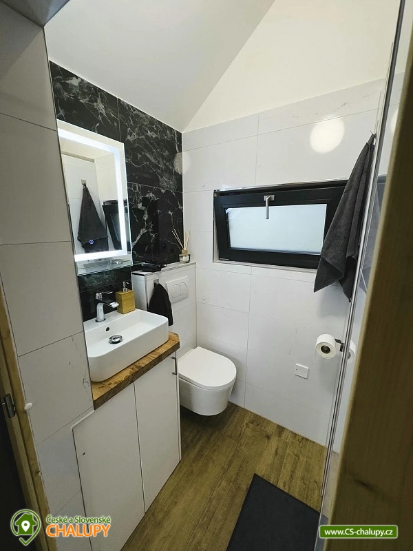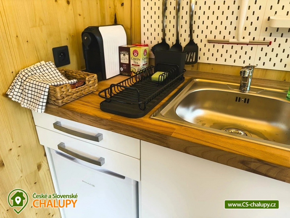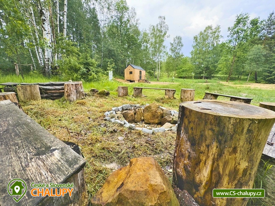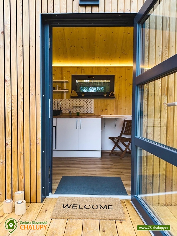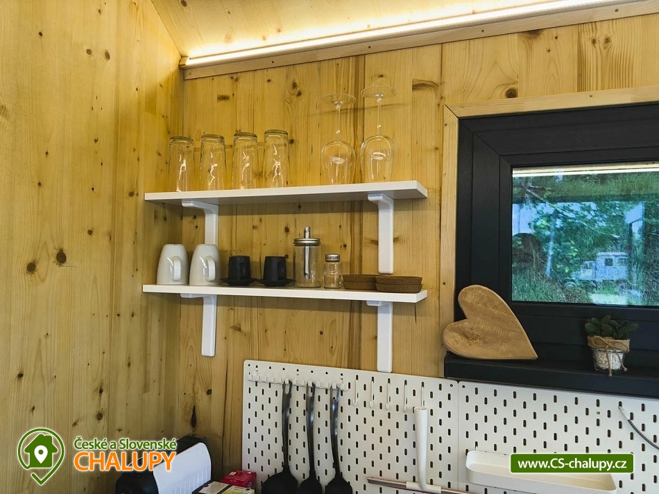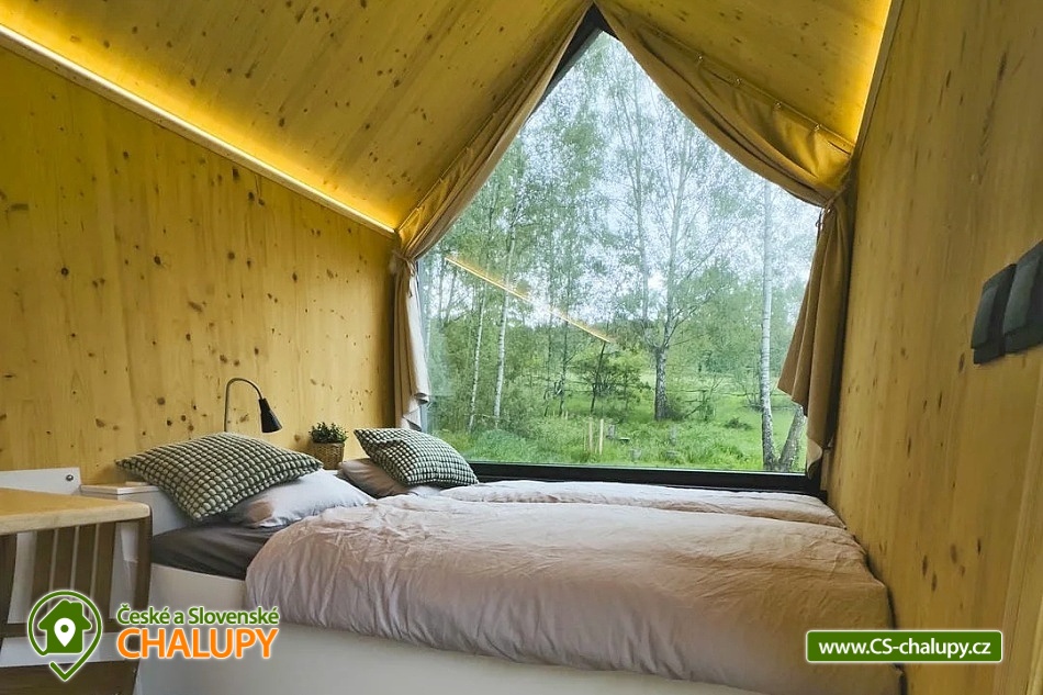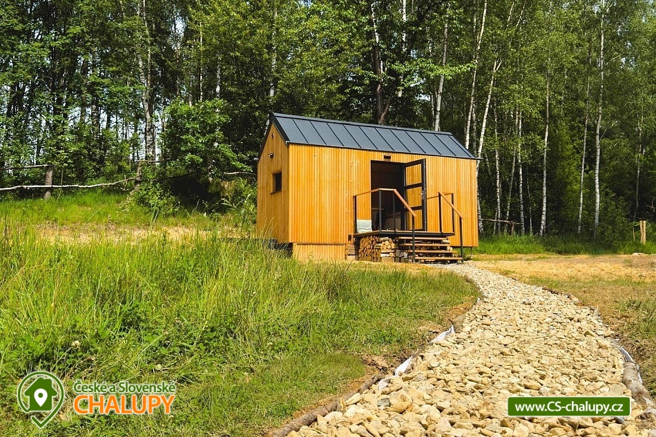 GlamLife Lusatian Mountains - Tiny house is located on the outskirts of the small town of Cvikov in the beautiful nature of the Lusatian Mountains PLA. The exact GPS location of the property is sent to guests after booking. You can look forward to plenty of peace and privacy. The house is surrounded by trees and a plot of land with an area of over 5,000 m2 stretches around it. You will enjoy amazing views of nature, views of romantic sunrises and sunsets, or the proximity of hiking and cycling routes leading through the beautiful countryside. Tiny house Lužické hory offers accommodation for 2 people, one double bed is available. Upon agreement, the possibility of an extra bed for 1 person. Maximum comfort awaits you inside the house. There is a double bed, from which you can enjoy views of the surrounding landscape through the panoramic window. Warm duvets and blankets are available for rent. Curtains can be used for privacy. The house also includes a fully equipped kitchen (electric stove, frying pan, refrigerator, capsule coffee machine, containers for making tea, tableware - plates, bowls, glasses, mugs, cutlery and tea towels, towels and dishwashing detergent). There is a small table and a chair. The social facilities include one comfortably equipped internal bathroom with shower, sink and toilet. Hot water is available. On cold days, you can heat up with an electric direct heater. The glamping house is insulated for better heat retention. The house is surrounded by a spacious plot, which is fenced. Part of the property is a series of four small ponds in which fish swim. You can sit by the fire or on the small terrace near the house. A grill is available. You can park 20 meters from the building, there is a private driveway. Swimming, mushroom picking, cross-country skiing and skiing are possible in the vicinity of the house. There are also tennis courts nearby and a pond suitable for fishing about 200 meters from the house. Glamping is located approx. 10 minutes from the famous Cvikov brewery, where you can not only eat, but also buy pastries in their bakery. Swimming options include, for example: Jezírko u Svoru pond, Radvanecký pond, Naděje dam, Kytlice - Lesní pond, Červený rybník u Pihel, Horní Prysk swimming pool, Lesenská prěhrada dam, Jiřetín pod Jedlovou swimming pool, Tomiškův pond, Großschönau - Trixi Park aquapark, etc. There are nearby ski resorts: Polevsko, Kytlice, Prácheň and others. Pánská Skála, Sloupské skály, Tolštejn Castle, Zákupy Castle are alluring for trips in the area or you can take a walk to Zelený Vrch, which can be seen directly from the window of the glamping house. We look forward to seeing you here.