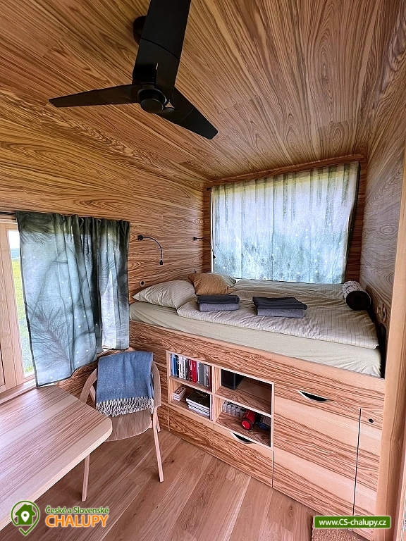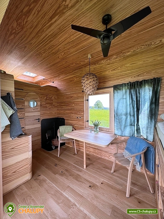 Glamping Malý háj (s finskou saunou) se nachází v lokalitě obce Malý Háj v Krušných horách nedaleko Eduardovy skály. Spát budete v designovém příbytku na kolečkách. Chata Malý háj byla stvořena především pro páry, je ale schopna ubytovat i čtyři nocležníky. Pokud přijede rodina se třemi dětmi, velmi ráda je ubytuje také. Prožijte čas harmonie, klidu a odpočinku v srdci přírody. Chata chce se svými hosty strávit minimálně dvě noci, kratší rezervace nejsou možné. V chatě je základní vybavení a suroviny ke gastronomickým hrátkám jako jsou nepálská sůl, třtinový cukr, arabská káva, sicilský panenský olej, japonský zelený čaj Oolong. V kuchyni je pánev, hrnec, moka konvička, konvička na french press, konvička na čaj, hrníčky, pohárky, sklenky na víno, ostré i tupé nože, talíře, misky, otvírák na víno, škrabka na brambory, cedník na těstoviny nebo salát. V koupelně je pro vás připravena bio kosmetika. Před chatou je terasa a gril. V ledničce najdete vína od Neprašů, Pilsner Urquell a olivy. V koupelně je pro vás připravena bio kosmetika. Nečekané pohodlí - nachystaná je pro vás pohodlná postel, vybavená kuchyň, jídelní část, koupelna se sprchou a toaletou. Při západu slunce rozpálit venkovní gril a přes jazýčky plamenů se dotýkat hvězd, jenž letní nebe zavěsilo jen kousek nad hlavu. Kromě chaty s vyhřátou saunou, ohněm v krbu a nadýchanými peřinami na Vás čekají také správci Jana a Milan. Ti Vám řeknou vše o chatě, ale i kam si můžete zajít na romantickou večeři, odkud se nejlépe pozoruje západ slunce, kde je ke hvězdám nejblíže. Na místo setkání, prosíme, přijeďte včas. Tajné místo - kde přesně chata sídlí, se dozvíte až po vytvoření rezervace, neboť hideandseek = hra na schovávanou :) Těšíme se na Vás u nás.