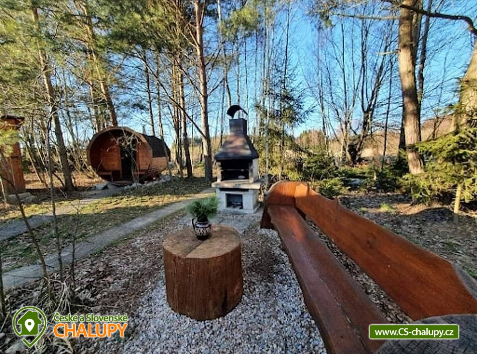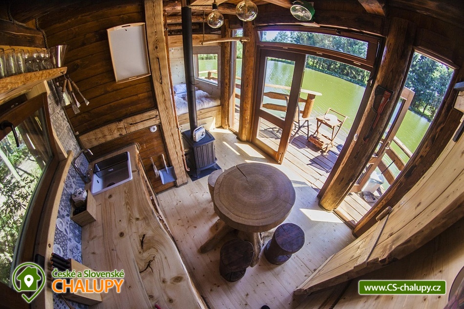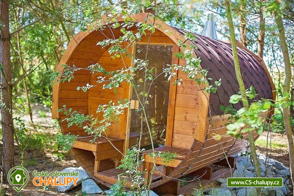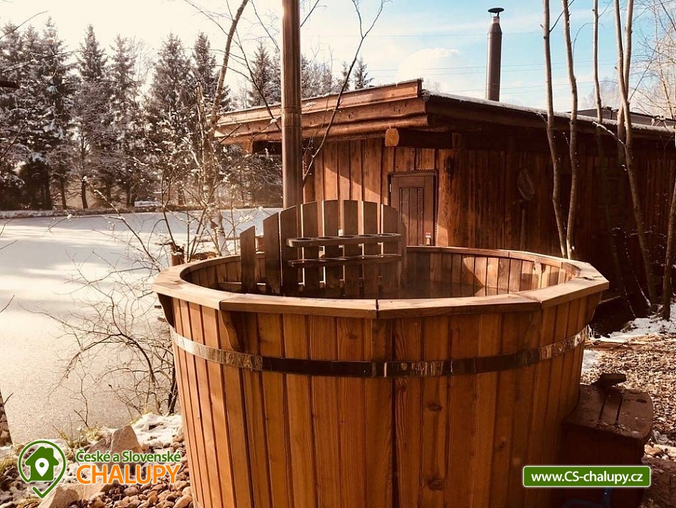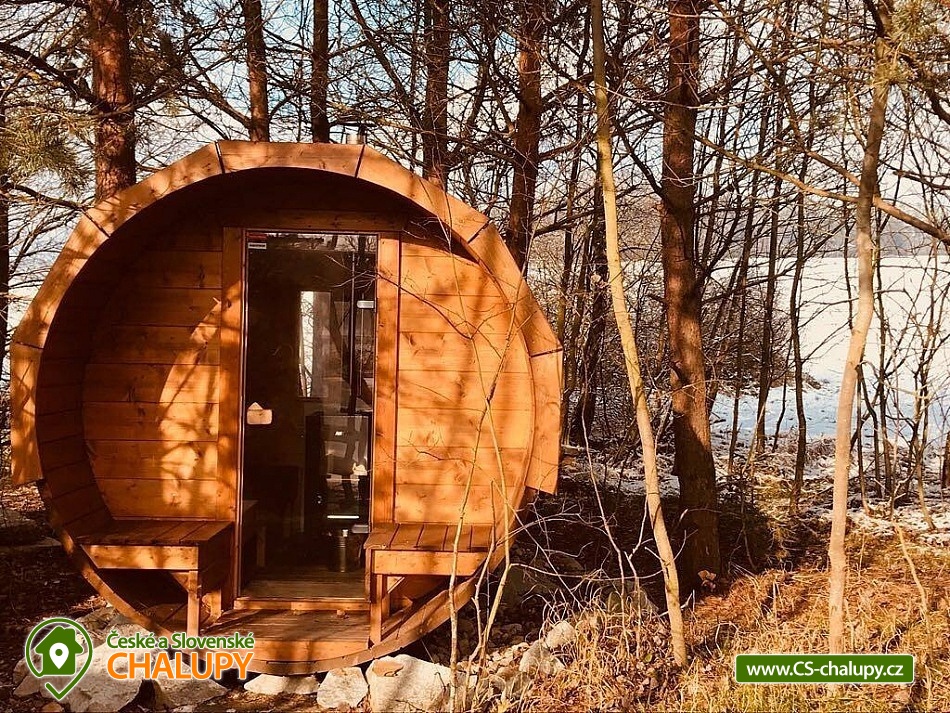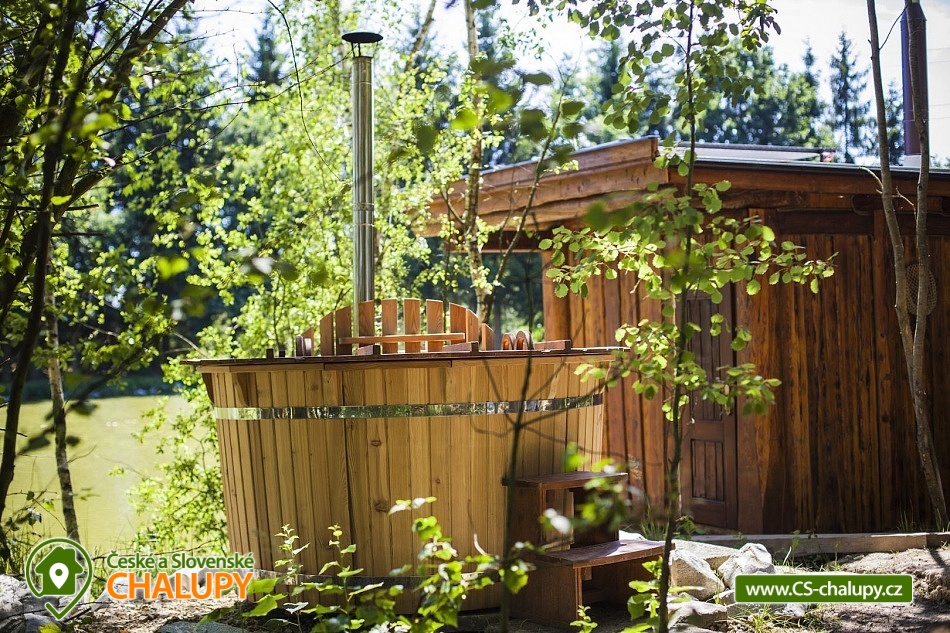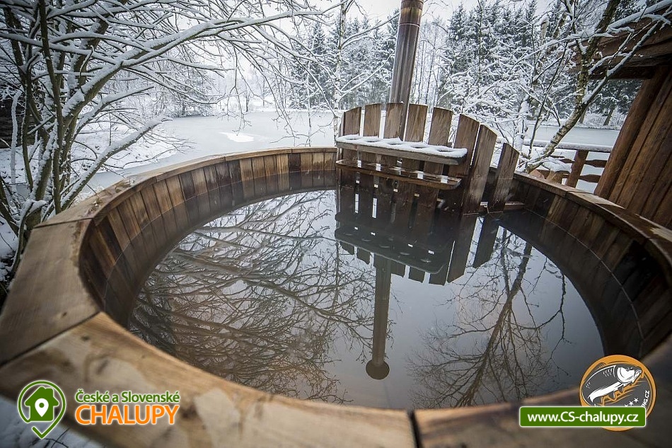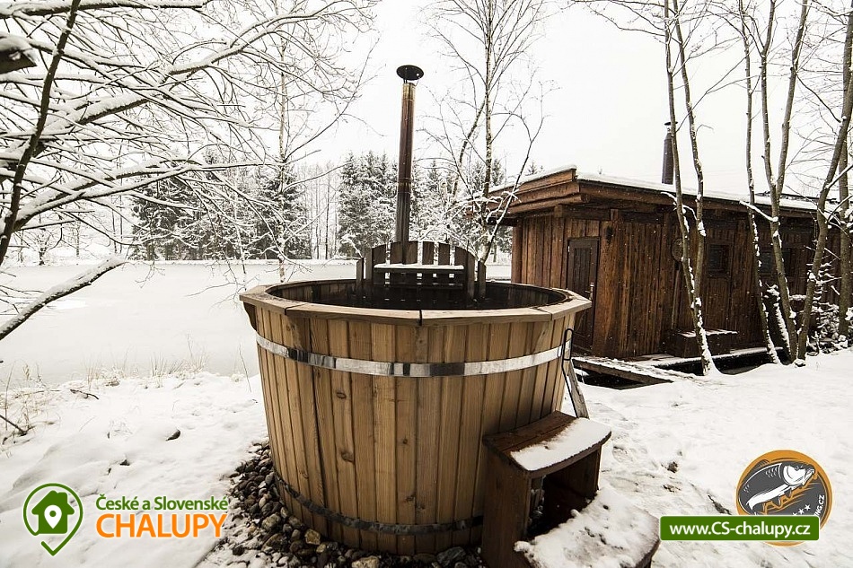 Wellness Fishing - log cabin Velký Ratmírov - bathing barrel, Finnish sauna and pond. Accommodation in a log cabin on the water surface. We offer two double beds, well-equipped kitchen with gas stove, domestic water, refrigerator, toilet and shower. There is also a grill on the shore of the pond, where you can prepare even caught fish. You don't have to be a seasoned fisherman with us, nor do you have to have a fishing license. All you need is a good mood and the desire to fish. But don't forget to take your rod. Pond Wellness fishing is a great place for families or couples who want to relax in complete privacy, untouched nature providing countless opportunities for hiking and biking. A hand-made bathing barrel for the perfect pleasure of an outdoor spa, whether the sun is burning outside or snowflakes are flying. Find the best time for you. Early evening, sunset, black night, or early morning bath. Swimming in a heated barrel is an unforgettable experience. We placed a bathing barrel and sauna on the shore of the pond directly behind the cottage. The Finnish sauna has long been a symbol of health and relaxation. In general, it has a very beneficial effect on the body's organs, blood circulation and water management of the body. Heating is provided by a fireplace, parking is possible at the pond. The location is suitable for active and relaxing holidays (bike paths, hiking trails, a mushroom paradise). Swimming possibilities and water areas in the vicinity: Velký Řečický pond, swimming pool Jindřichův Hradec - Frankův Dvůr, pond Vajgar, aquapark Jindřichův Hradec, Velký Hatínský pond, sand pit Jindřiš, swimming pool Horní Radouň, pond Kozlov or Pěnenský rybník - Dřevo.