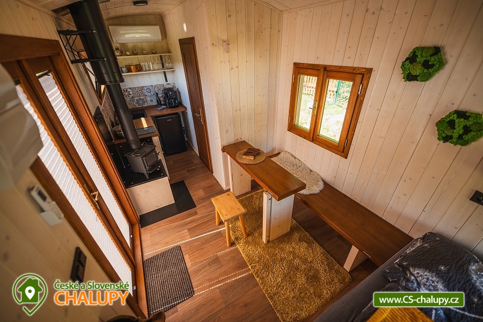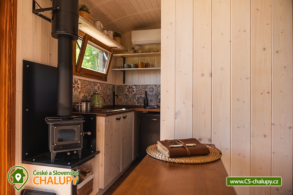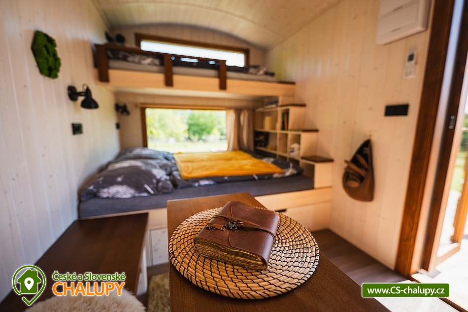 Glamping Podještědí - místo, kde čas plyne pomaleji a každý okamžik je nezapomenutelný. Maringotka na malebném a klidném místě v obci Křižany nedaleko Liberce a vrchu Ještěd. Poloha na trojmezí CHKO Jizerské hory + CHKO Lužické hory + CHKO Kokořínsko - Máchův kraj. Nacházíme se v ideální lokalitě pro klidný a ničím nerušený relax v přírodě a zároveň jste v samotném srdci výletních tras. Maringotka je obyvatelná celoročně. Přímo od maringotky vede pěšina k hojně navštěvované přírodní památce Krkavčí skály tvořené z pískovcových útvarů, odkud si můžete vychutnat dechberoucí výhledy na Ještědský hřeben. Maringotka je vybavena elektřinou (z fotovoltaické elektrárny), pitnou vodou a po celý rok Vás bude hýčkat: v zimě vás zahřeje praskající oheň v kamnech, zatímco v létě si můžete užít osvěžení díky klimatizaci. K spánku a odpočinku je k dispozici velká postel pro dva dospělé a menší postel pro jednu vaši ratolest. Okna v ložnici zajistí dostatek přirozeného světla a krásný výhled na dominantu Liberecka - Ještěd. Kuchyňka je vybavena indukční varnou deskou s dvěma plotýnkami, lednicí, kvalitním kávovarem a veškerým potřebným nádobím. Čas v maringotce si můžete zpříjemnit například lahví vína z vinařství Bílkovi, kávou z místní rodinné pražírny nebo sypaným čajem z Křižanských bylinek. K dispozici je také wifi internet, dále malá, ale útulná koupelna, která zahrnuje sprchový kout, WC, umyvadlo, BIO kosmetiku, bavlněné ručníky a poskytne vše, co potřebujete pro své pohodlí. Před maringotkou je prostorná dřevěná terasa s pohodlným posezením, houpačka, lehátka a ohniště včetně připraveného dřeva. Parkování je možné přímo u maringotky. Domácí zvíře není povoleno. V okolí: inline brusle - trasa z Osečné do Stráže pod Ralskem vede po uzavřené asfaltové cyklostezce s občerstvením - krásné lesní prostředí. Koupání: vodní nádrž Fojtka, Lesní koupaliště Liberec, jezero Hrádek nad Nisou Kristýna, Jizerské hory - koupaliště Dolina a přehrada Bedřichov. Liberec: Aquapark Babylon, ZOO, iQLANDIA, Botanická zahrada, Dinopark Liberec a Plavecký bazén. Hory: Skiareál Ještěd a Skiareál Bedřichov. Letní turistika (naučné stezky, terénní koloběžky, bikepark). Východisko Jizerské magistrály pro příznivce běžkování a velké množství cyklotras. Těšíme se na Vás u nás.